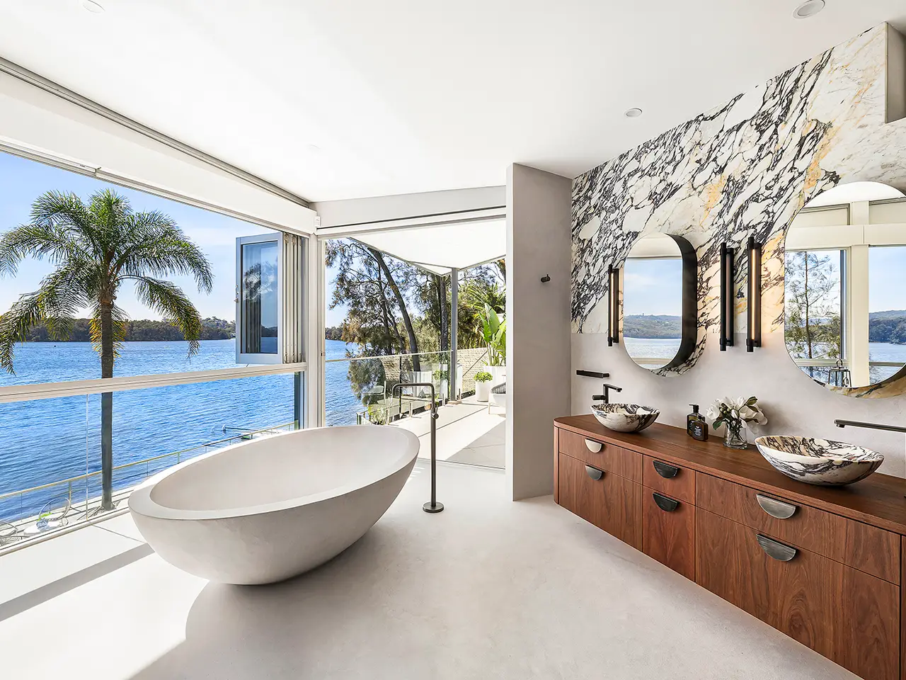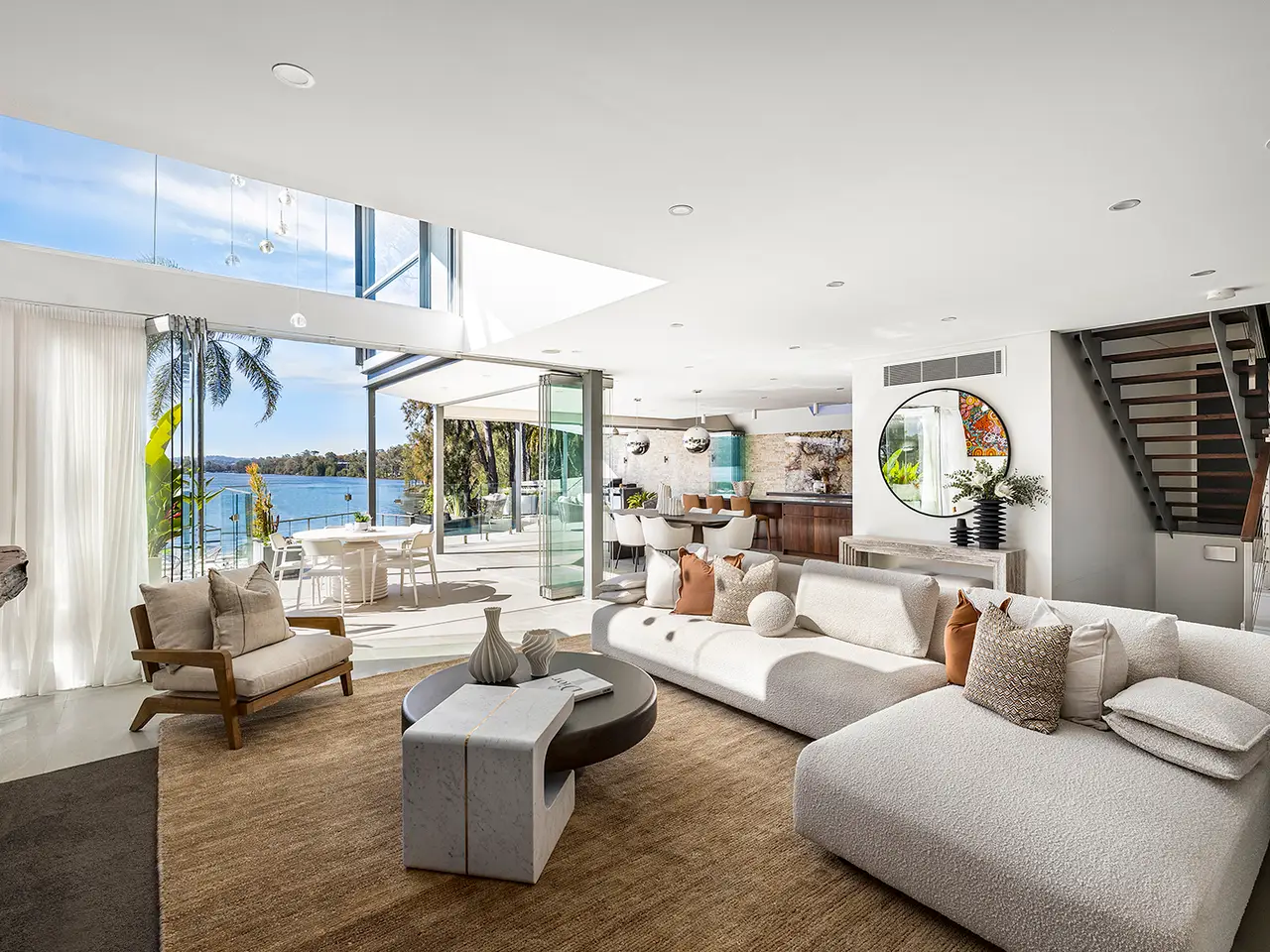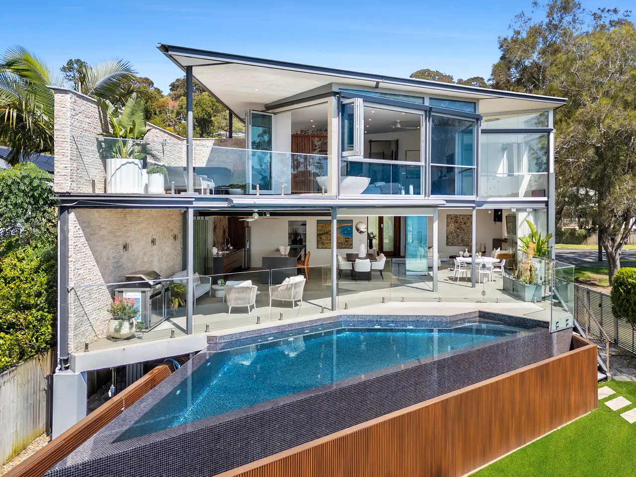 Step inside and be instantly captivated by the tranquillity of lakefront living, where an exclusively north-facing orientation ensures all-day sunlight and uninterrupted water views. This five-bedroom residence of rare distinction has been architecturally designed and flawlessly executed, blending bold lines with vast glass panels that dissolve the boundary between indoors and out. Expansive open-plan interiors are elevated by statement marble, bespoke cabinetry and a sleek gas fireplace, each detail reflecting precision and intent. A balcony gazes across the infinity-edge pool to the adjoining reserve, with thoughtful design shielding the only neighbouring property to create unmatched privacy, while level lawns meet the water, offering effortless access to the shimmering lake beyond. Meticulously crafted and supremely private, this is a lakehouse of enduring calibre. Moments from the beach, shops, schools, cafes, walking trails and express city transport. - Five-bedroom modern masterpiece with true waterfront position - Set privately on the lake in Narrabeen with a neighbouring reserve - Vast glass panels dissolve the boundaries between indoors and out - Expansive living space with custom glass chandelier, Lopi gas fireplace - Bespoke cabinetry throughout, custom-designed and crafted from solid ironbark timber - Statement kitchen with South American patagonian quartz back lit backsplash - Engineered stone corian benchtops, zip tap, insinkerator and butler's pantry - Including dual Vintec wine fridges and integrated Asko appliances - Five stylish bedrooms each with ensuites, fans and pure wool carpet - Master suite with stone bath, Calcutta marble ensuite and lake views - Five luxurious bathrooms with heated floors & towel racks throughout, a heated towel wall in the master ensuite and indulgent waterfall shower - Dedicated laundry room with volakas marble and ceramic tiles, ample cupboards and storage spaces - Terrazzo stone finishes across exterior verandahs, kitchen and fireplace - Micro-cement flooring on the ground level, with matching floors and walls in the master and front bedroom ensuite - Additional media room with custom joinery and serene water views - Alfresco balcony with fans, heaters overlooking the infinity-edge pool - Heated saltwater pool, fully restored and resurfaced with recycled Turkish mosaic and mirror tiles, complete with new synthetic timber fencing - Landscaped limestone gardens including water feature and cobblestone driveway, irrigation, hot and cold brass outdoor beach shower - Three-phase power, EV charging, 3 phase charger outlet in garage, 46 solar panels generating 15.18KW and rainwater tanks - Double automatic garage, workbench, secure gate and extra parking - Back-to-base alarm system, security cameras, and reverse cycle air-conditioning with fans across living, dining, bedrooms and media room - Electric blinds both indoor and outdoor, electric awning over the pool - Moments to beaches, shops, schools, cafes and express city transport