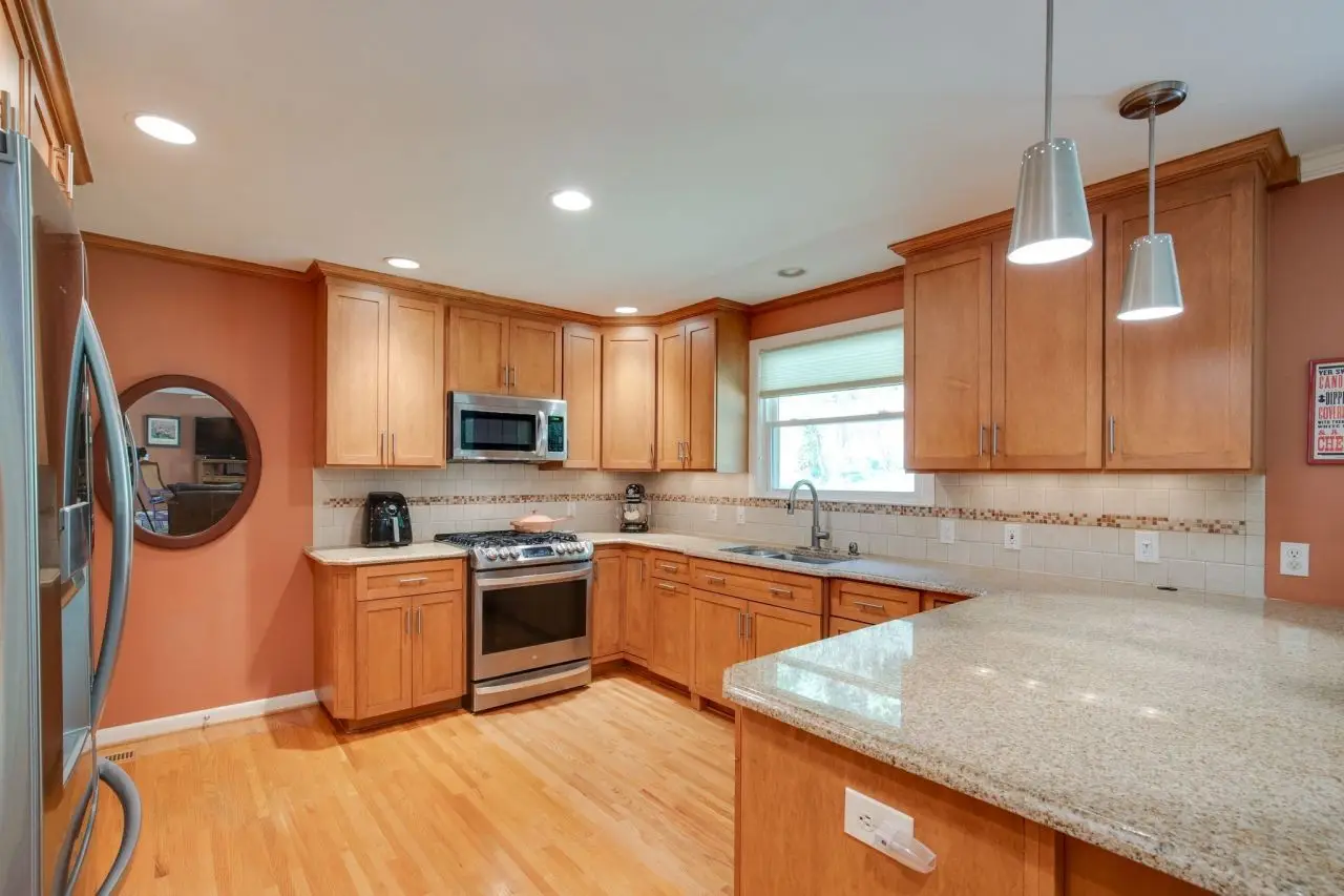 This beautifully updated ranch home sits on a 1.35 acre lovingly landscape lot. Newer double-pane insulated windows, several plantation shutters and solid wood front door with windows that offer a welcoming, light entrance. The main level has 1.5 red oak hardwood floors, cozy wood-burning brick fireplace and triple glass doors to the backyard patio. The renovated kitchen features solid maple cabinets, granite counters, tile backsplash, gas stove with electric oven and a breakfast bar. For added convenience, washer / dryer hookups are tucked away in a closet in the kitchen and basement. The bathrooms are nicely updated. A full finished basement offers extra living space with laminated wood flooring, a bar complete with a sink, fridge, and tumbled marble tile, as well as several storage closets and a full bathroom. Other upgrades include a tankless gas water heater, a sump pump, and a two-car garage with door openers and a dedicated Level 1 EV charger. The backyard is fenced and offers privacy and natural beauty. Seller does not want to move until the end of December.