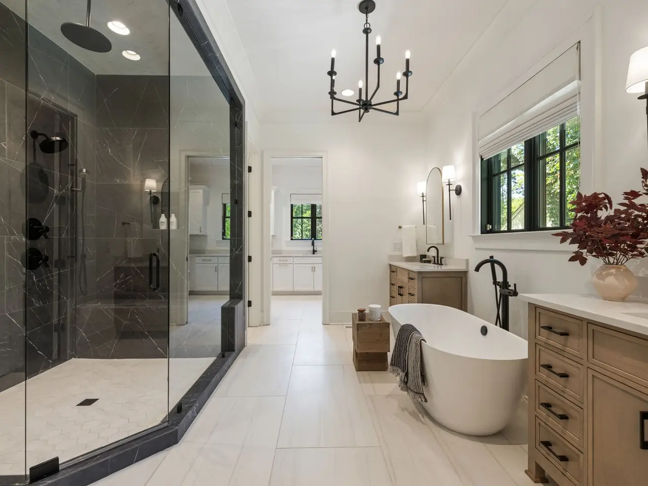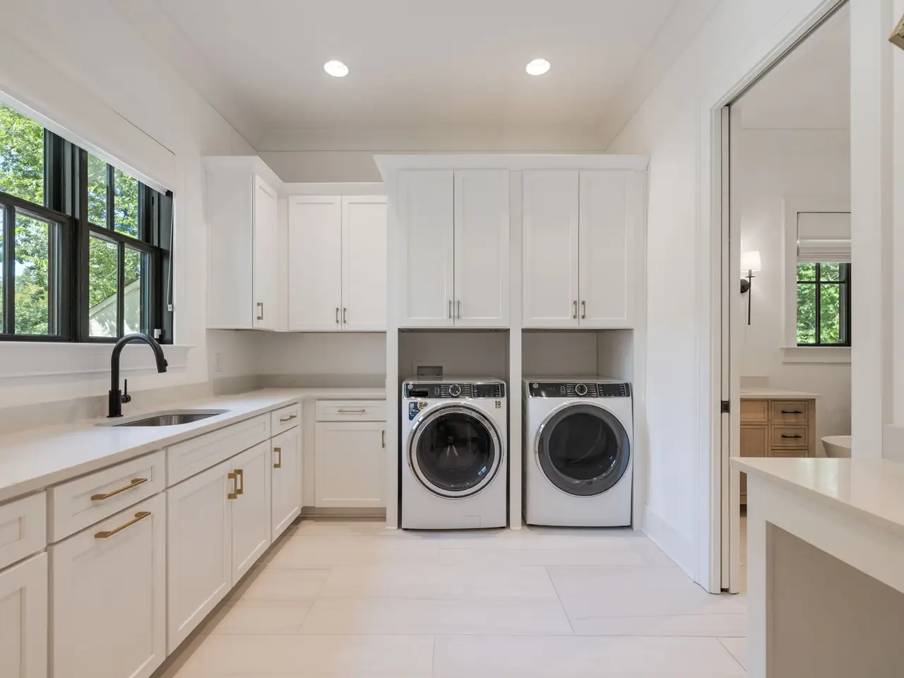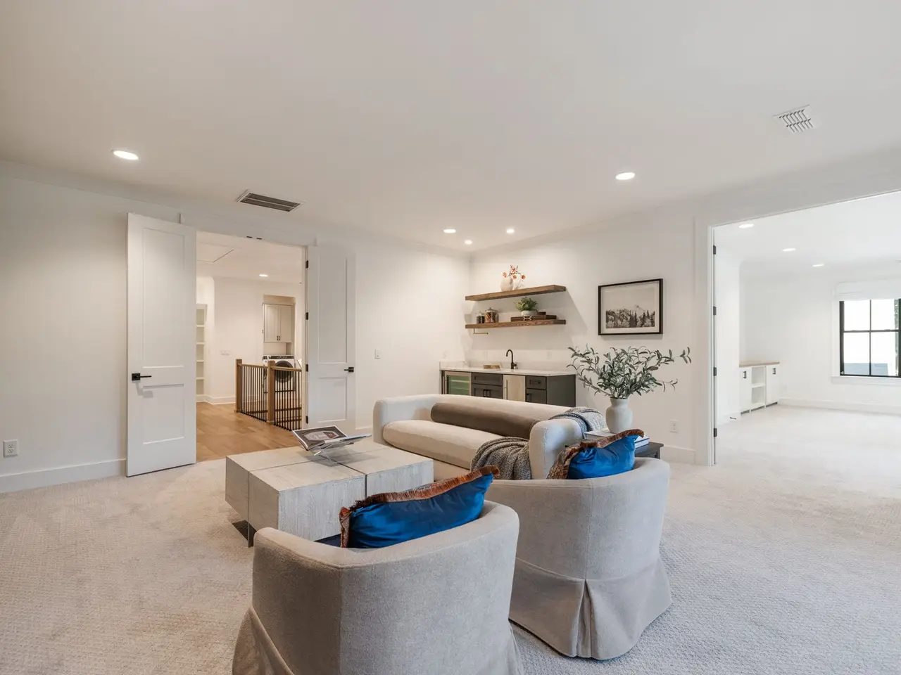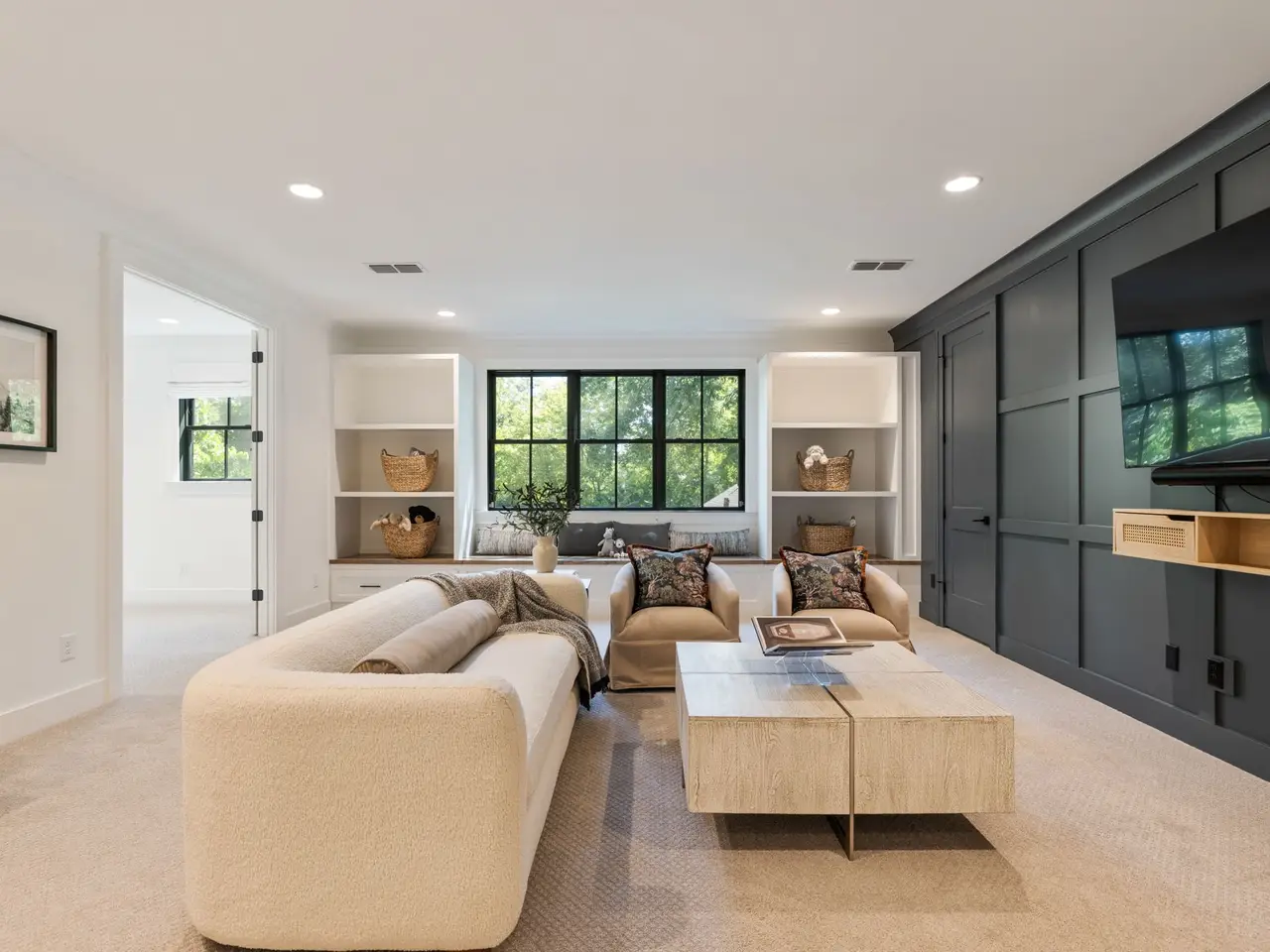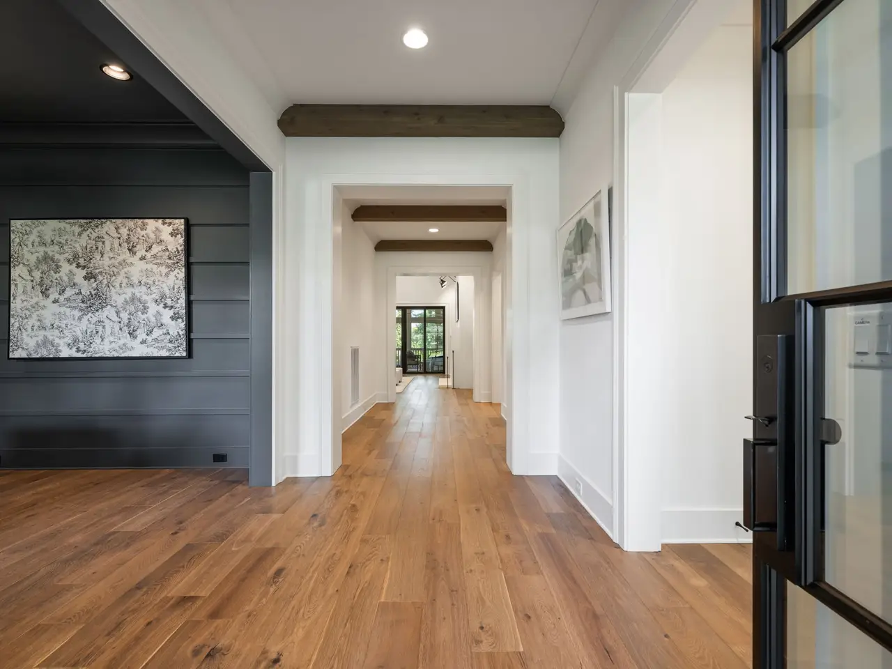 Luxury living meets unbeatable location in this stunning home, just a short drive from the heart of downtown Nashville. Beyond the double glass-paneled front doors, you're welcomed into an elegant entry foyer that flows seamlessly into the formal dining room, complete with accent walls and a show-stopping chandelier. A private vaulted office with custom cabinetry provides the perfect work-from-home retreat, while the open-concept floor plan centers around a soaring two-story great room. Here, custom built-in cabinets, open shelving, and a gas fireplace create a warm yet sophisticated gathering space. The gourmet kitchen is a chef's dream, showcasing a waterfall-edge island, wooden ceiling beams, Wolf appliances, a wet bar, beverage center, and an oversized pantry with abundant shelving and room for a second refrigerator. A light-filled breakfast room connects the living and dining areas, making entertaining effortless. The main-level primary suite is a true retreat with high ceilings, designer accent walls, double vanities, a soaking tub, a floor-to-ceiling tile shower with rain head and built-in bench, and a spacious walk-in closet with custom shelving that conveniently connects to the laundry room. Two additional bedrooms and a full bath complete the main level. Upstairs, you'll find a second laundry room, a generous bonus room with its own wet bar and beverage center, three well appointed bedrooms with en suite baths and walk-in-closets, plus an additional entertaining space that could serve as a media room, playroom, second office, or even an extra bedroom--offering endless possibilities to suit your needs. Step outside to the screened back porch overlooking a private, fenced yard with concrete paver patio--ideal for both relaxation and entertaining. A gated driveway and three-car garage complete this incredible property.