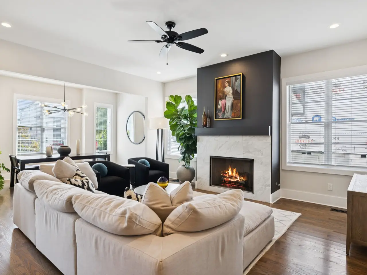 Experience exceptional quality and thoughtful design at every turn in this stunning brick beauty. Sunlight pours through expansive Pella windows and doors, illuminating the gorgeous hardwood floors throughout. The open living area features a gas-burning fireplace and a chef's kitchen with quartz countertops, and stainless steel appliances --perfect for everyday living or entertaining. Enjoy the convenience of spacious custom closets, a tankless water heater, and three HVAC units for year-round comfort. The incredible bonus room and rooftop terrace provide plenty of space to relax or host guests while taking in panoramic downtown views and features a built-in beverage center. Ideally located within walking distance to Belmont University, 12 South, and The Gulch, you'll be surrounded by some of Nashville's best boutique shopping, coffee shops, and acclaimed dining. This home truly stands apart--don't miss your chance to experience unmatched craftsmanship and an unbeatable location in the heart of Nashville.