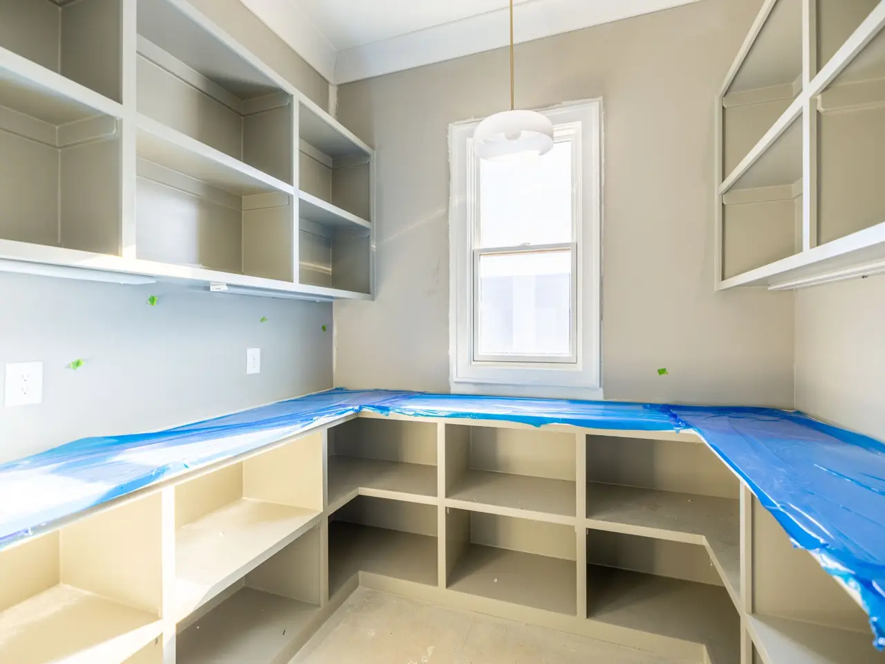 The heart of the home is the gourmet eat-in kitchen, boasting custom ceiling-height cabinetry, under-cabinet lighting, striking Calacatta quartz countertops, an oversized island, and an expansive walk-in pantry with custom shelving and cabinetry. The living room impresses with a vaulted ceiling, wood beam accents, a gas fireplace, and custom built-ins--anchored by large sliding glass doors that fill the space with natural light and open to a beautifully landscaped backyard.