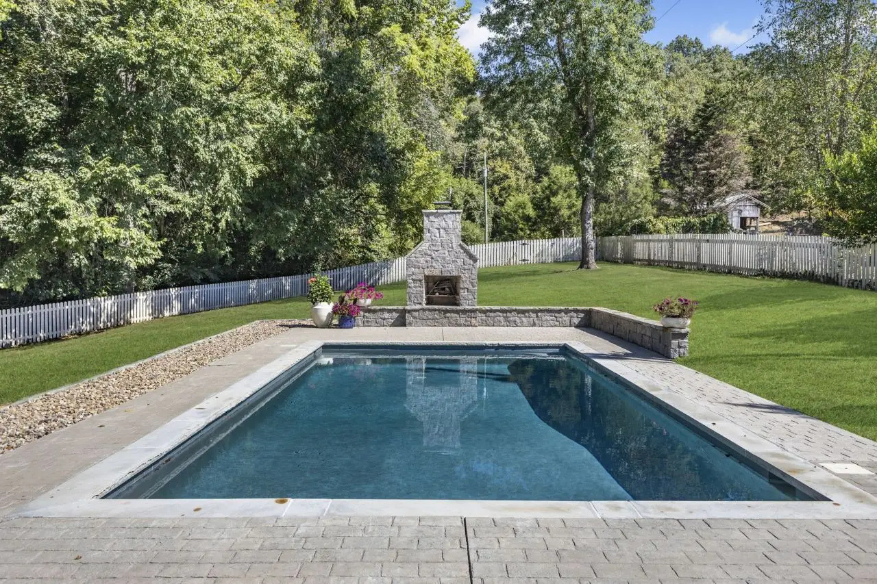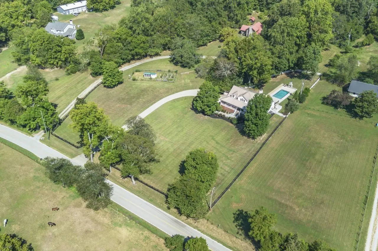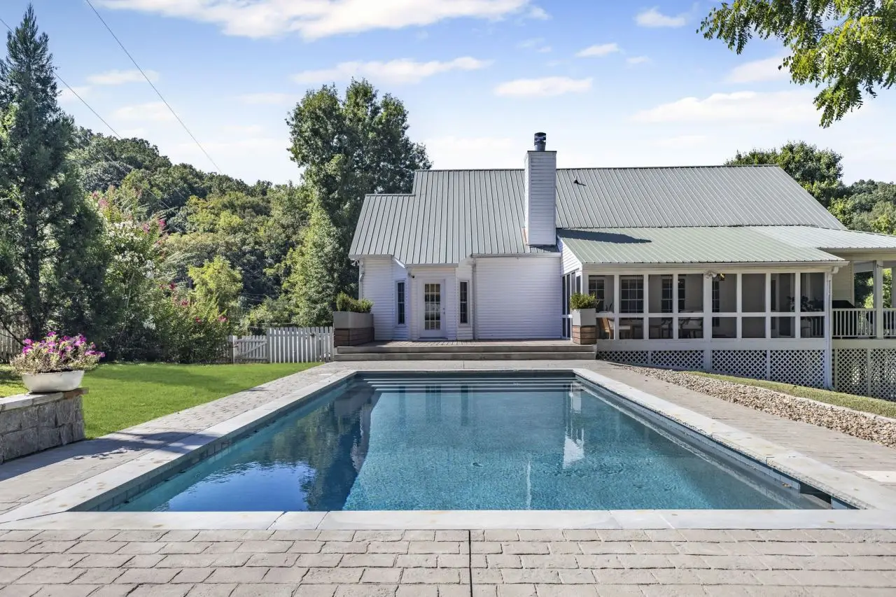 Welcome to 8756 Poplar Creek Road â?? a serene retreat just 25 minutes from downtown Nashville and moments from Harpeth Village. Set behind stone columns and surrounded by nature, this elevated home offers sweeping views of pastures and wooded hillsides from its wrap-around porch. Inside, the foyer opens to a dining room and a soaring double-height living room with custom built-ins and a floor-to-ceiling stone gas fireplace. The kitchen features wood cabinetry, granite countertops, and newer stainless appliances including a gas range, hood vent, refrigerator, dishwasher, and updated lighting. A screened porch off the living room overlooks the fully fenced backyard and 15â?? x 30â?? Gunite saltwater pool, framed by a wood-burning stone fireplaceâ??ideal for both cozy evenings and vibrant summer gatherings. The spacious first-floor primary suite boasts an 11-ft tray ceiling, walk-in closet, two additional closets, and a large bath with jetted tub, shower, and granite double vanity. Step directly from the suite to the pool deck through a private door. Upstairs are two bedrooms with charming viewsâ??one with vaulted ceiling and walk-in closetâ??and a beautifully renovated bath featuring Carrera marble, a custom vanity, and clawfoot tub. A large attic provides bonus storage. The ground floor includes a private-entry recording studio with soundproofed Live Room, Control Room, and Machine Roomâ??all with individual AC units. This level could also serve as a home theater, gym, office, or guest suite, complete with a full bath and storage. Outside, enjoy a fenced raised-bed garden with chicken coop, compost system, trellises, and stone/gravel paths. Adjacent lawn offers room for expansionâ??guest cottage, sunflower field, or more. Recent updates: New HVAC & water heater (2025), whole-house water filtration + RO (2024), and updated lighting throughout.