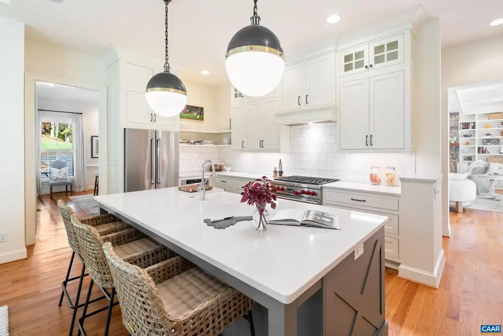 ** Open House - Sat 11/8 & Sun 11/9, 1C/B?B=4 PM ** Absolutely gorgeous! Beautifully renovated Stoney Creek farmhouse with a first-floor primary suite on a private, park-like 1.3-acre lot with stunning mountain and golf course views. Designed for seamless indoor/outdoor living, the home opens to a wide wraparound porch perfect for relaxing or dining al fresco. Inside, enjoy gleaming hardwood floors, 10-ft ceilings, and custom built-ins. Main level features a serene primary suite with bay window & luxurious bathroom, a chef's kitchen with 6-burner Wolf range, quartz counters, and 9-ft island, a keeping room, "cookbook nook," dining room, home office, mudroom, laundry, powder room, and a large family room with stone fireplace, coffered ceiling, and wall of windows overlooking the mountains. French doors open to a screened porch and adjoining deck with propane hookup for entertaining. Upstairs offers three bedrooms (one with spectacular views), two baths, pajama lounge, and ample storage. Wintergreen's Stoney Creek community offers golf, skiing, pools, lake access, trout fishing, hiking, a spa, and moreC/B?B=a true four-season lifestyle! Whole-house Generac generator included for peace of mind.