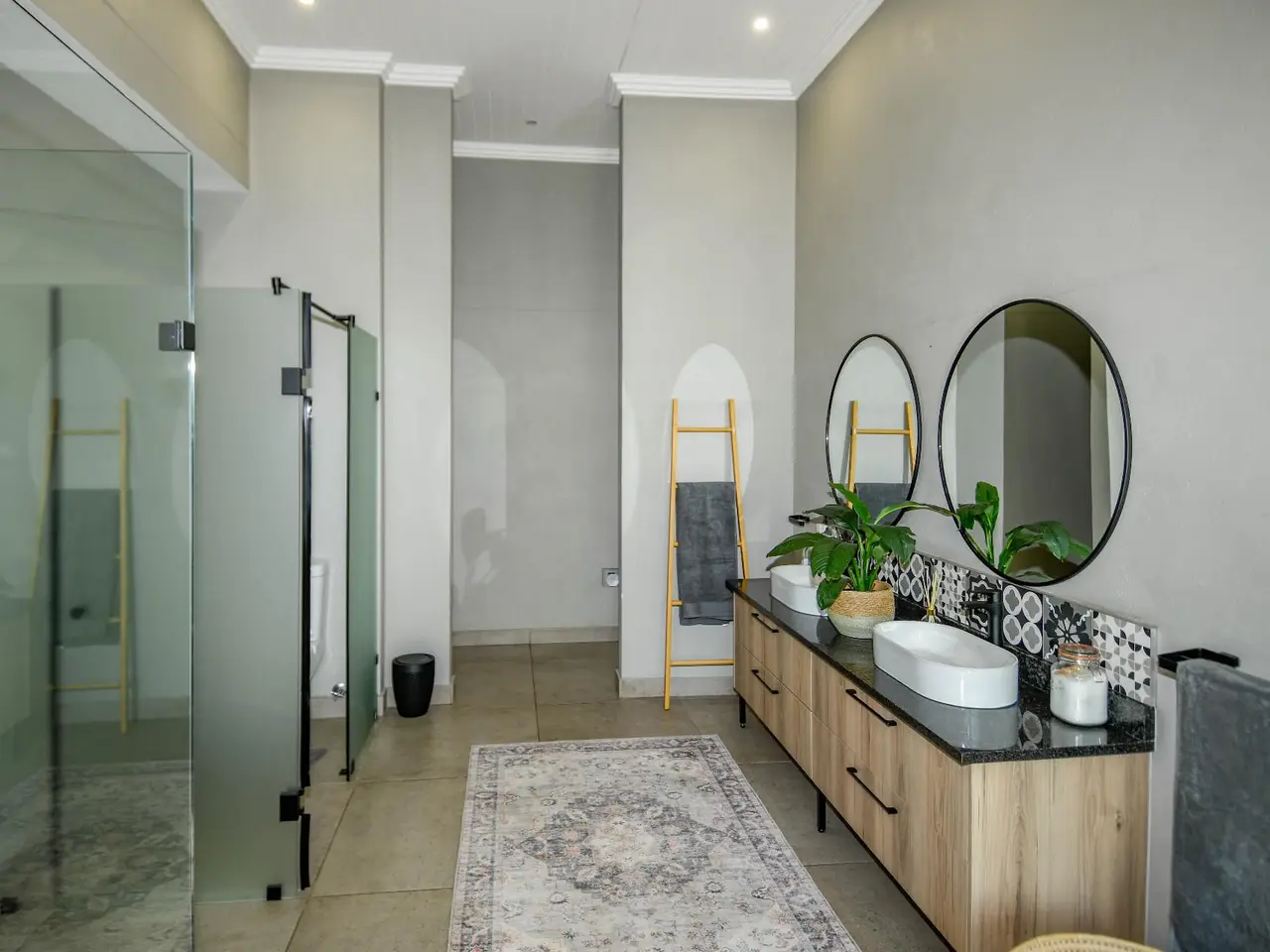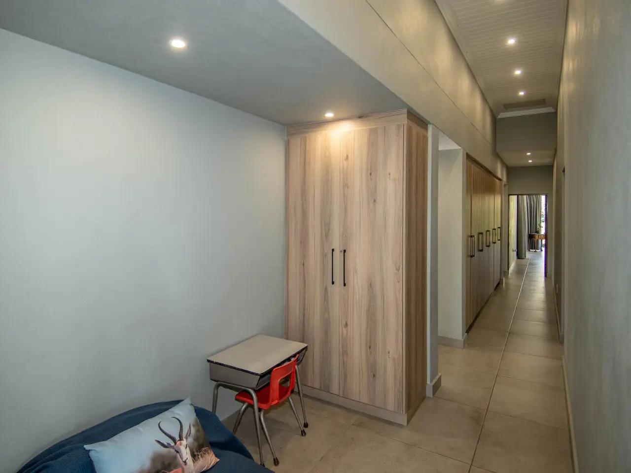 Discover this stunning 12310m stand with a spacious 890m home in the heart of The Rest Eco Estate. This modern 4-bedroom residence boasts ensuite bathrooms, a private study, and guest toilet. The open-plan living area flows seamlessly into a beautifully designed kitchen with a scullery and pantry. Enjoy the ultimate in outdoor living with a built-in braai, stylish bar, expansive lounge, deck, putting green, boma, and a sparkling overflow pool. Designed for comfort and sustainability, the home features 20 solar panels, an inverter, and 30,000 litres of backup water storage. With 4 automated garages and 2 under-roof parking bays, this home offers both luxury and convenience. Nestled in a secure estate with breathtaking views, this property is perfect for families seeking space, style, and peace of mind. Don't miss out - your dream home awaits!