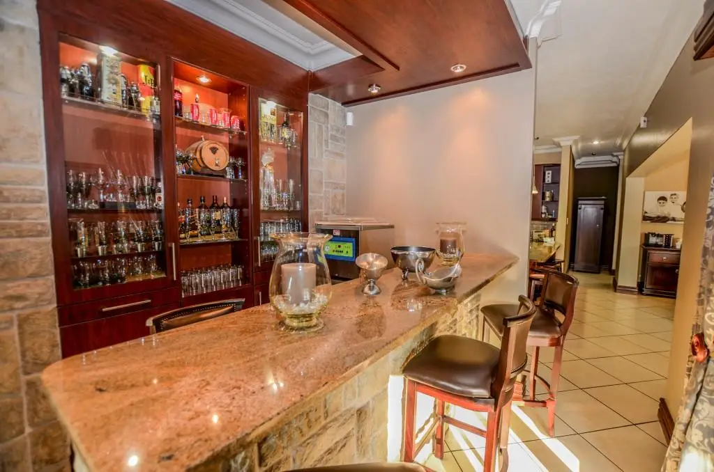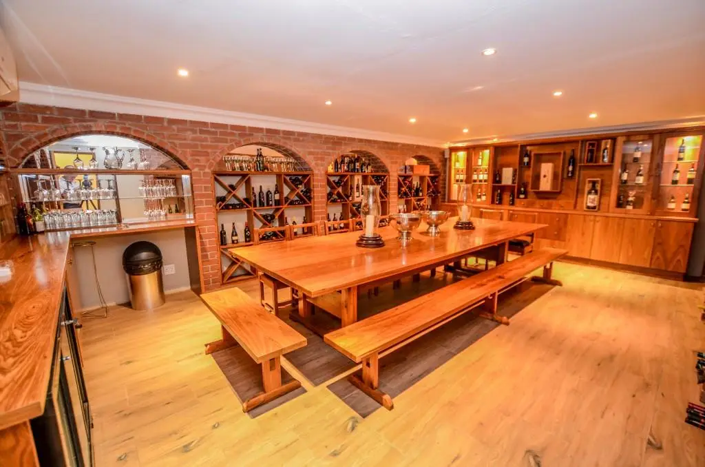 Nestled in the heart of the La Roi Estate on 4,1ha of virgin bush with panoramic views and roaming game, this stately mansion is designed with luxury, comfort and entertainment in mind. Graced with modern finishes throughout extra spacious living areas, 6 sunny bedrooms, air conditioned wine room and home gym. The gourmet kitchen boasts walk in refrigerator / freezer and custom granite tops allows for culinary pleasure. A magnificent 8 seater cinema room, feature pub, garaging for 10 cars and domestic facilities are beautifully complimented by a secure tiled inner courtyard with second swimming pool, large covered patio and built in braai/boma.