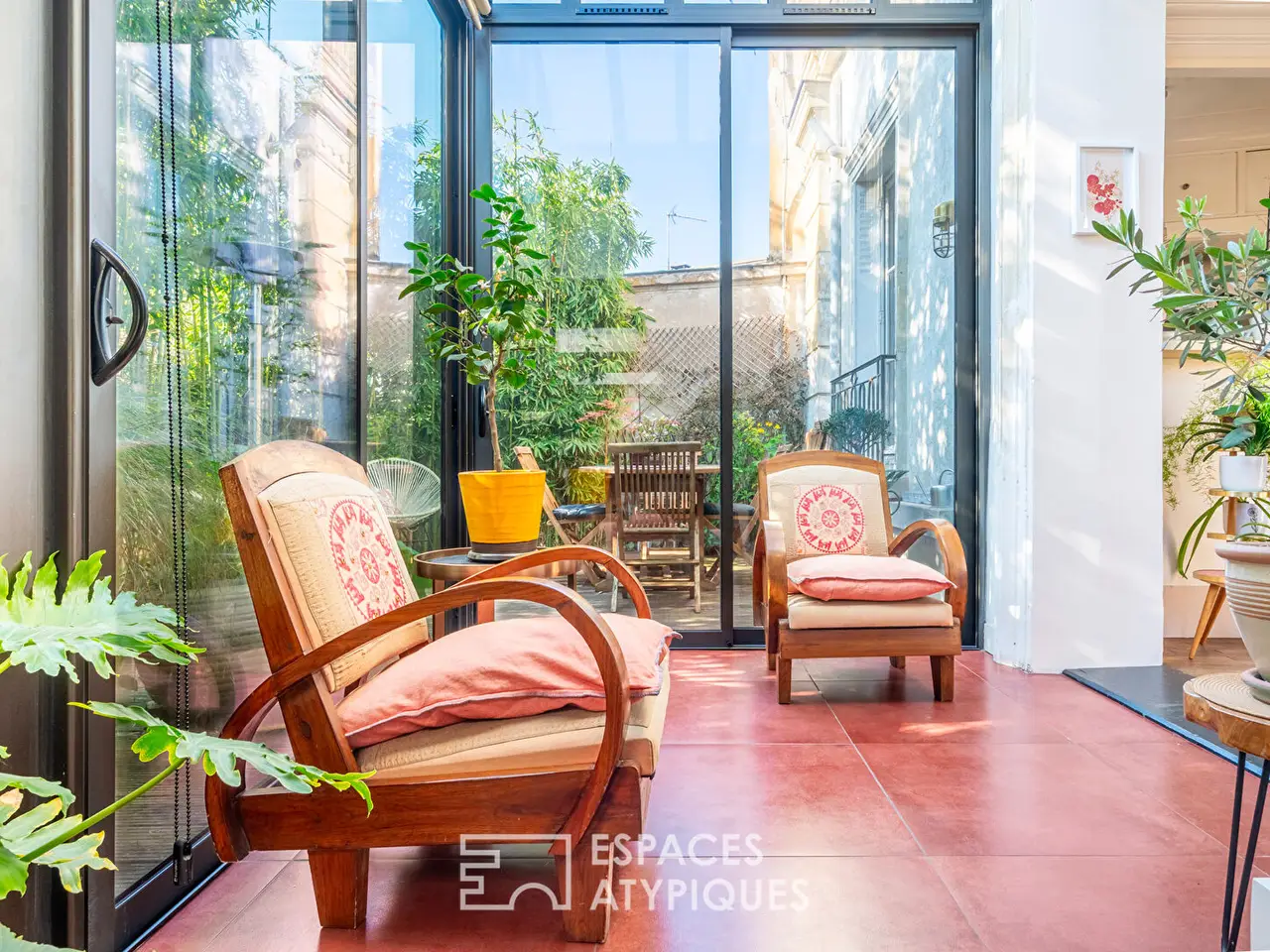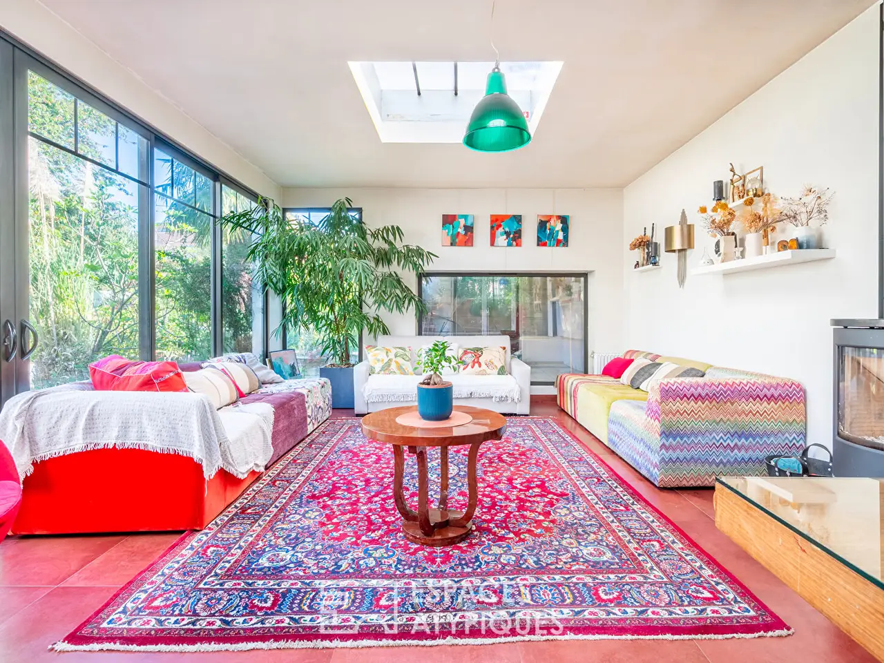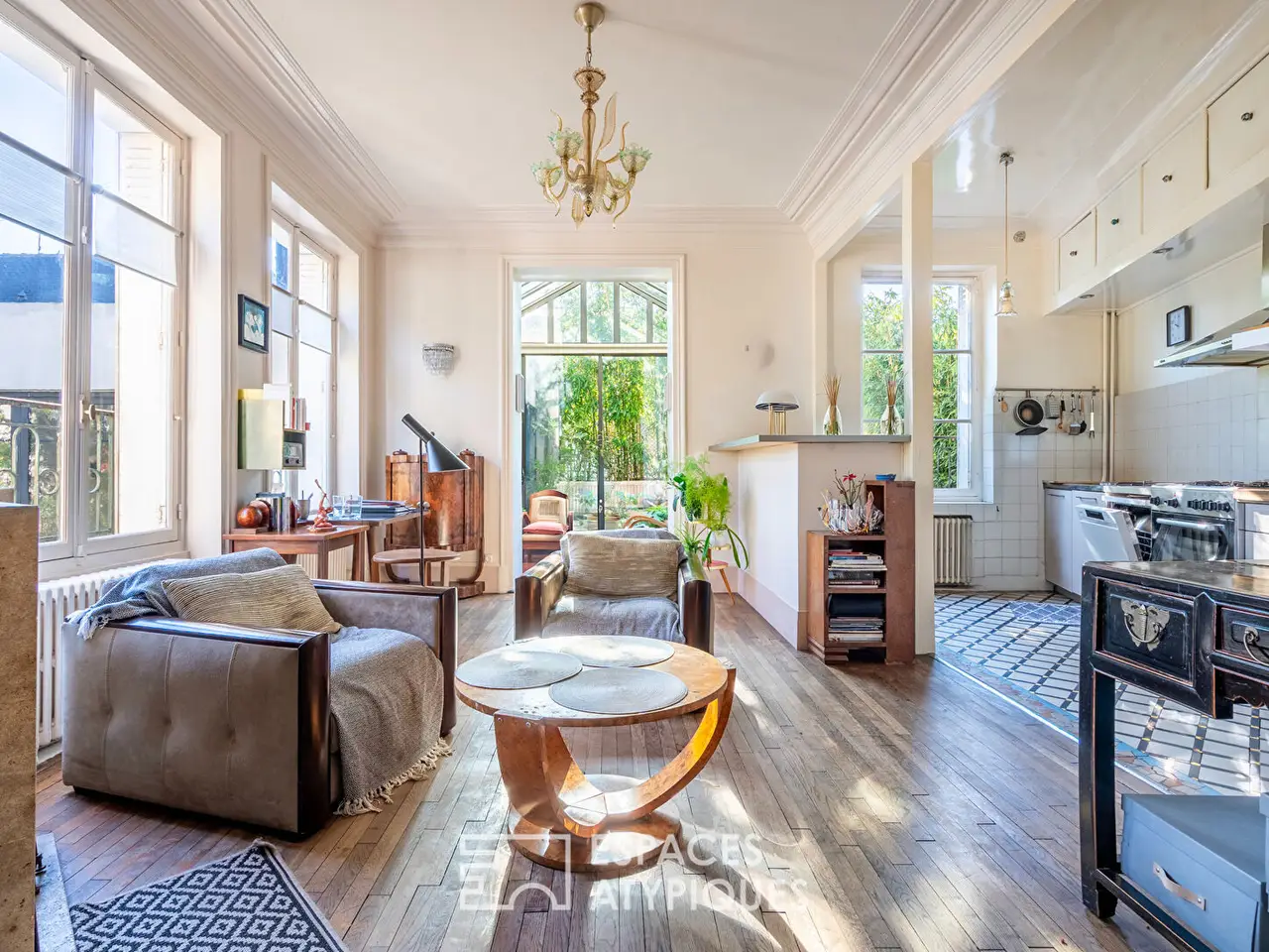 In the sought-after Église district of Neuilly-Plaisance, this former orangery dating from 1880, subtly renovated, offers 160 m2 of bright and harmonious spaces, set in the heart of a 541 m2 wooded garden with no overlooked views. A testament to its time, the original building has retained all its charm, while its recent extensions, including a vast living room and a glass roof, enhance the property with elegance and modernity. These living spaces, facing the garden, offer remarkable volume, enhanced by a ceiling height of over 3 meters. Numerous windows, ideally oriented, allow natural light to flood the spaces at all hours of the day. The open kitchen, directly connected to the living room, creates a welcoming and pleasant space, ideal for entertaining or sharing everyday moments. A bathroom with a toilet completes this level. Upstairs, the sleeping area consists of a library landing, three generous bedrooms designed for comfort and tranquility, and a bathroom with WC. On the mezzanine floor, a 65 m2 space gives free rein to the imagination: an office, recreation room, home theater, or workshop. Outside, an intimate patio extends the living spaces in a soothing atmosphere, while the garden, meticulously maintained and completely private, invites relaxation. A unique and inspiring property, combining period charm, modern comfort, and a prime location in the heart of Neuilly-Plaisance. A lock-up garage completes the property's features, as does a 45 m2 expansion potential, to be developed as needed. RER A: Neuilly-Plaisance 800 meters City center: 350 meters REF. 10695 Additional information * 8 rooms * 3 bedrooms * 2 bathrooms * 2 floors in the building * Outdoor space : 541 SQM * Parking : 1 parking space * Property tax : 3 632 € Energy Performance Certificate Primary energy consumption f : 406 kWh/m2.an High performance housing