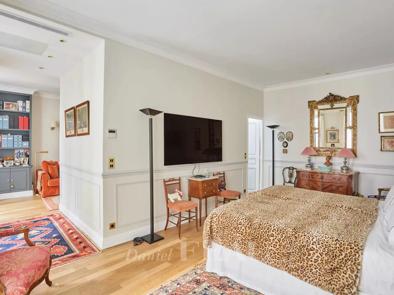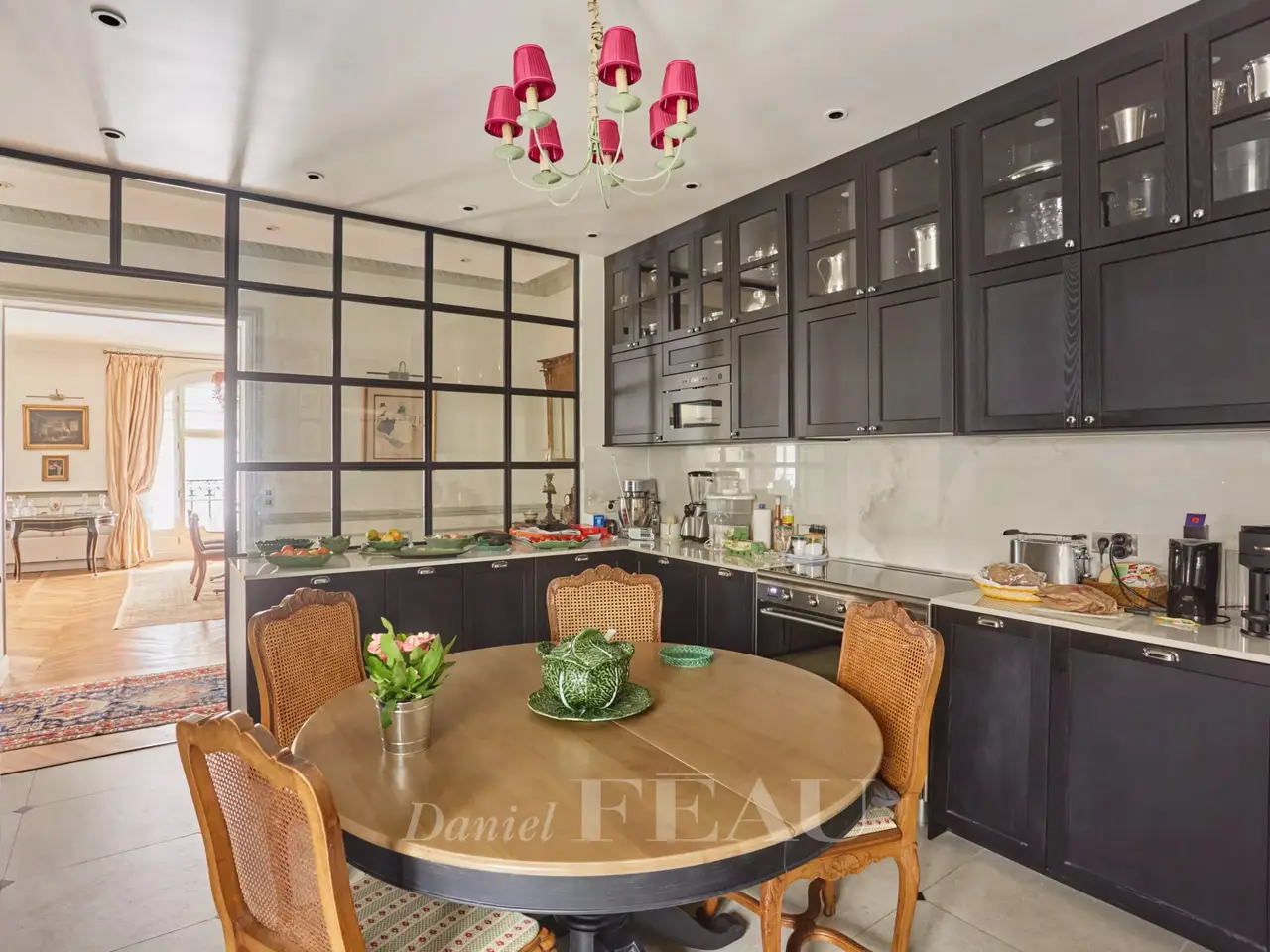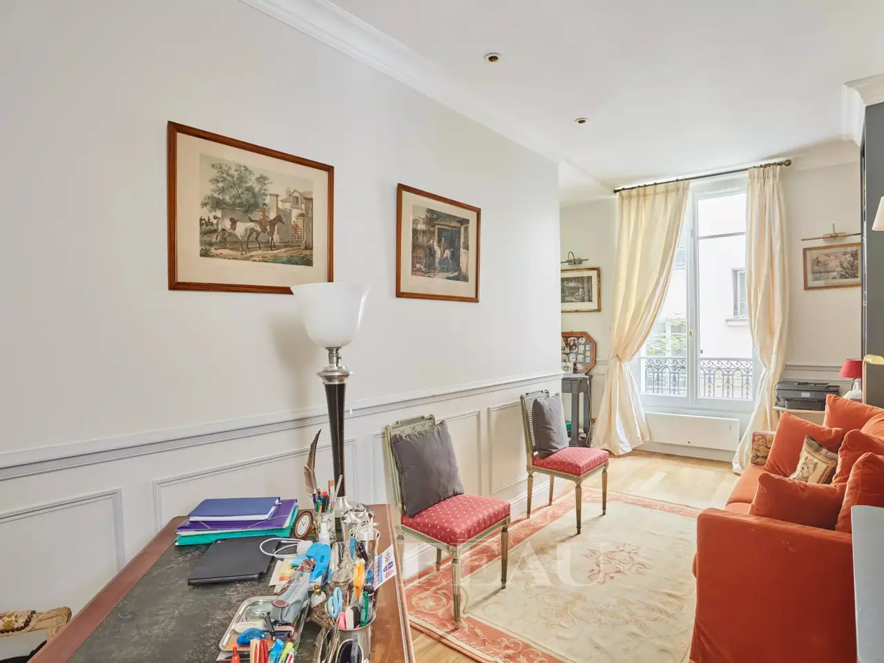 This superb apartment on the 1st floor of a fine Haussmannian building offers 181 sqm of living space which has been renovated throughout by an interior decorator. Featuring parquet flooring, mouldings and a fireplace, it includes an entrance hall, a 70 sqm triple living/reception room, a spacious kitchen with dining facilities, a suite with a study, a bathroom and a dressing room, a guest bedroom with a bathroom, and two wc. With two maid’s bedrooms (13.01 and 8.51 sqm of living space as defined by the Carrez Law) and two cellars. Air conditioning.