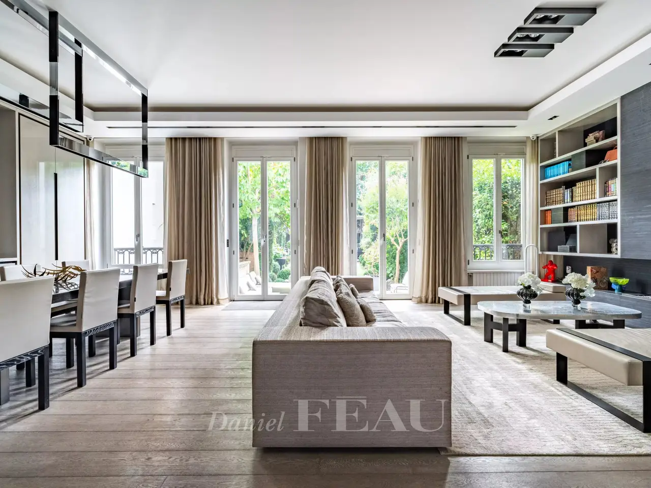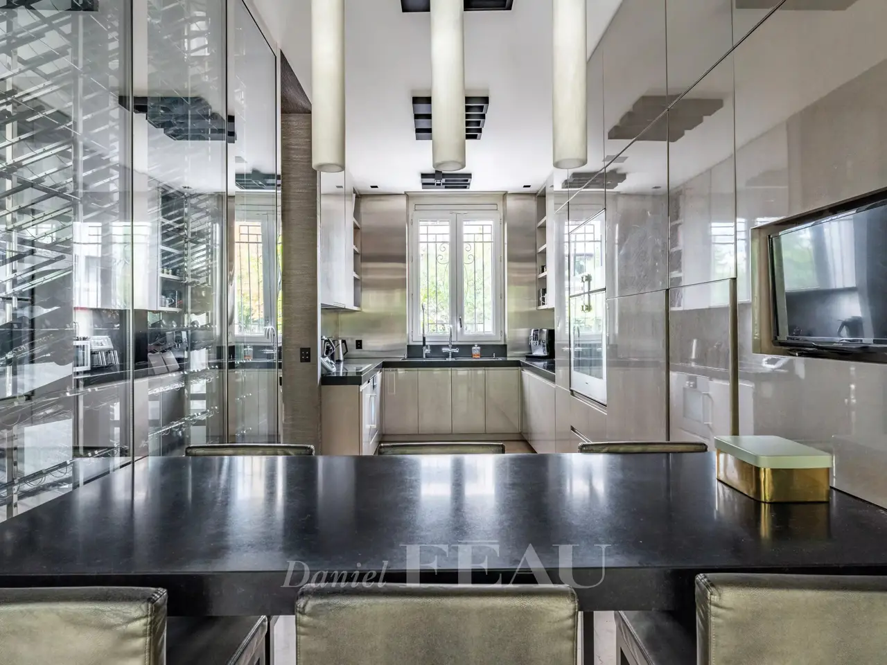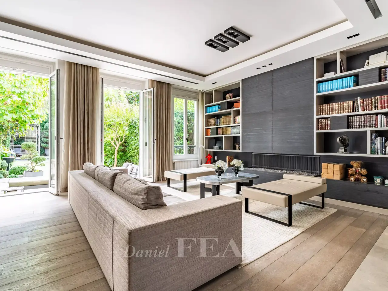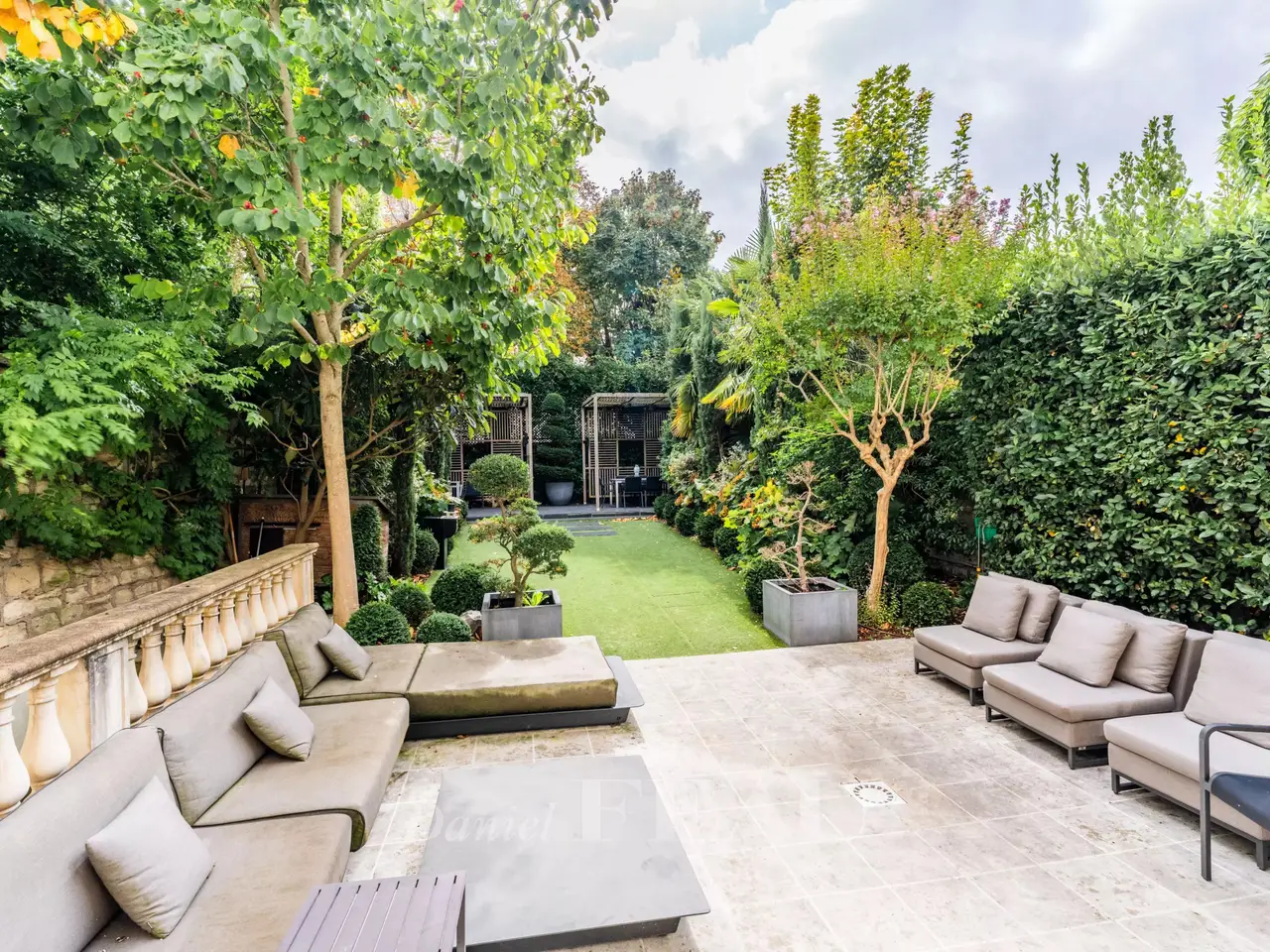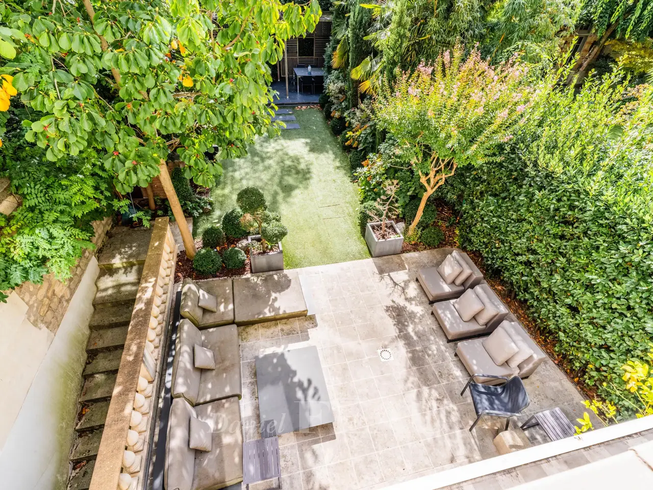 This superb late 19th century offering 460 sqm of beautifully decorated living space is located a stone’s throw from the Bois de Boulogne, the town centre and the shops. It includes a spacious living/reception room and a spacious kitchen opening onto a terrace and a peaceful south-facing garden, with three bedrooms (two with shower rooms) and a bathroom upstairs. The top floor comprises a spacious suite, a dressing room and a fifth bedroom. On a half-basement with a recreation room, a study accessing the garden, and a large utility room. With two lock-up garages in the opposite building.