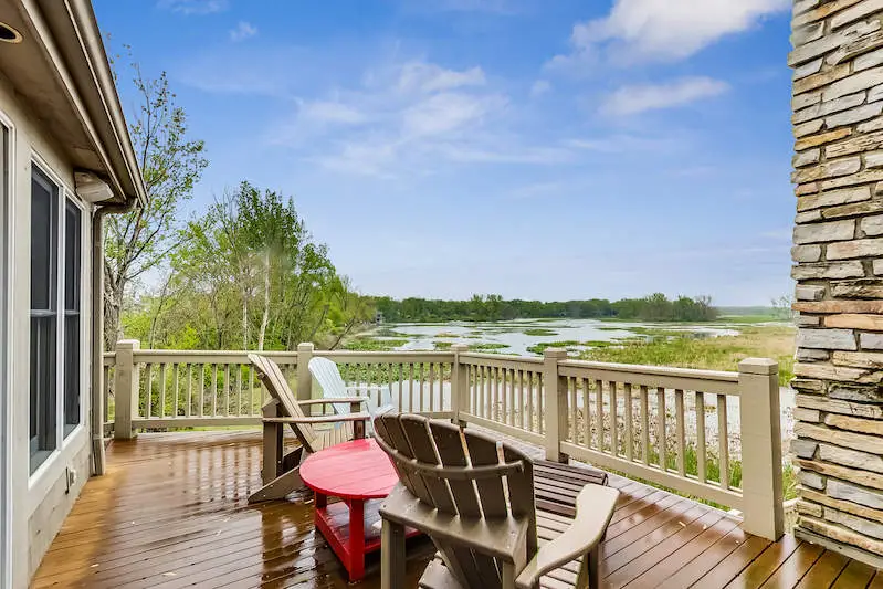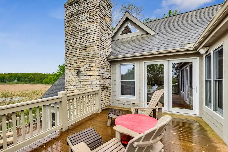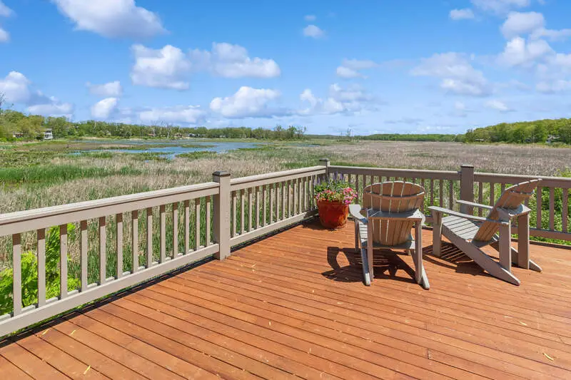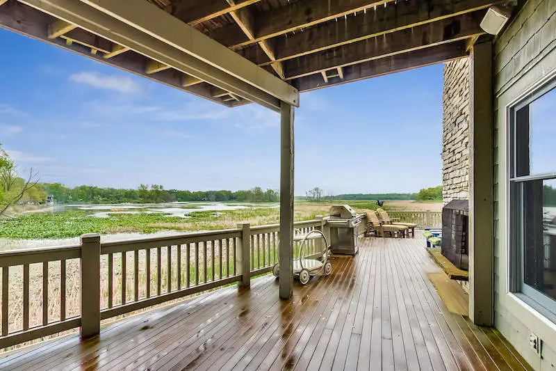 ''Harbor House'' a custom built home with sweeping views of the 1,000 acre Galien River Nature Preserve & the New Buffalo marina. Enjoy nature from the multiple mahogany decks & screened porch or watch sunsets over the harbor in front of the outdoor fireplace. This home offers breathtaking views from every room. Vaulted Great Room with stone fireplace, gourmet kitchen with granite counters & S/S appliances. Primary bedroom suite has Jacuzzi tub, walk-in shower & large walk-in closet. 3 additional bedrooms with ensuite baths. Mahogany floors throughout the main level. New tankless hot water heater, surround sound, security system and 2 car heated garage. Steps to your own private 45' boat slip. Just a four minute walk to the beautiful Lake Michigan beach. Great rental history with permit.