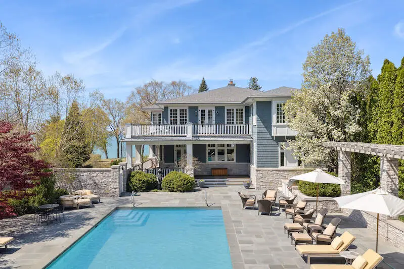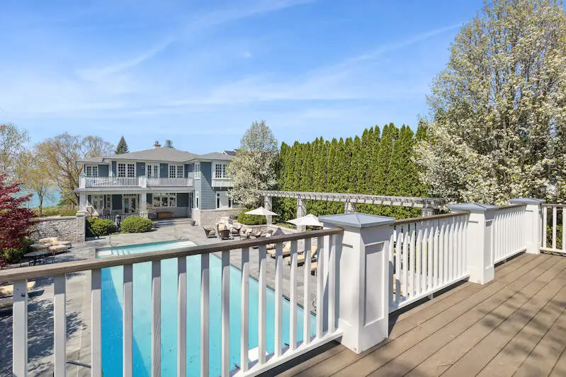 Combining luxurious living with breathtaking natural beauty nestled on the shores of Lake Michigan, this stunning estate boasts a custom built four bedroom main house and a separate three bedroom guest house, offering unparalleled comfort and privacy for you and your guests. Every inch of this immaculately appointed estate has been thoughtfully curated, expertly designed and constructed to the highest standards of luxury and sophistication. This world-class home spans more than 10,000 square feet. The custom design and attention to detail are evident throughout; high ceilings, elegant finishes, and an abundance of natural light that pours in through large windows, providing dramatic views of the lake. The custom Boilini pool, gardens, and guest house add to the charm of this elegant Grand Beach estate. The main house boasts four generous bedrooms, each offering a private sanctuary for rest and rejuvenation, a full private gym, a lakeside office, and two gorgeously appointed laundry rooms. The master suite is a true oasis, complete with a luxurious en suite bathroom, and walk-in closet. Each room of this special home shines in unparalleled Lake Michigan sunsets. The heart of the home is a chef's dream kitchen, featuring top-of-the-line appliances, a spacious center island, and ample counter and storage space. Whether you're preparing a casual meal or hosting a lavish dinner party, this kitchen will exceed your expectations. Adjacent to the kitchen is a sophisticated dining area, perfect for enjoying intimate meals with family and friends. The adjoining living room offers a cozy fireplace and comfortable seating, creating an inviting space to relax and unwind. The spacious office looks out to the lake, and is beautifully appointed with built-ins throughout. The outdoor space is equally impressive, with custom-designed Boilini pool that serves as the centerpiece of the meticulously landscaped grounds. Dive into the refreshing waters or simply lounge poolside, enjoying the warm sun and gentle breezes. Entertain guests with ease hosting unforgettable gatherings against the backdrop of the tranquil lake. The guest house is a true gem, offering three well-appointed bedrooms, two wet bars, two full baths, gaming area, and private laundry facilities. Your guests will relish in the privacy and comfort provided by this separate dwelling, creating a memorable and enjoyable experience for all. Sun Valley Falls offers more than just a home; it offers a lifestyle. Situated in the friendly Lake Michigan community of Grand Beach, just an hour outside of Chicago, this property provides an idyllic setting to embrace all that Lake Michigan living has to offer. Don't miss the opportunity to own this extraordinary estate, where luxury, comfort, and natural beauty converge. Contact us today to schedule a private viewing and experience the magic of Sun Valley Falls for yourself.