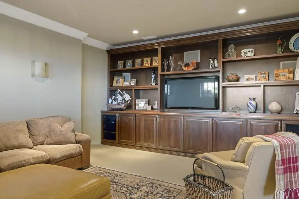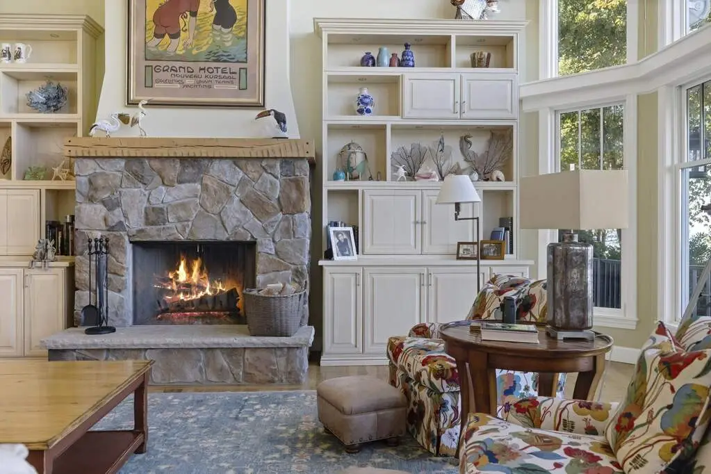 Stone fireplace with custom millwork