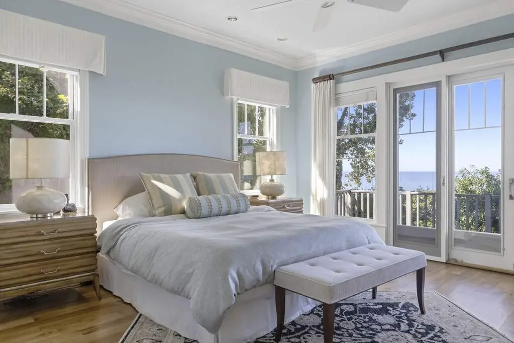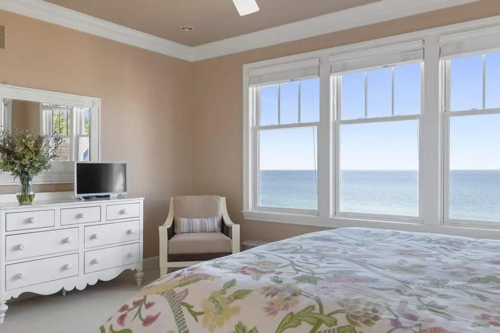 Along the shores of Lake Michigan within the beautiful Riviera Association, experience Harbor Country at its most refined in this Cape Cod-inspired lakefront residence with 100 feet of pristine sandy beach frontage. Designed with an eye toward timeless architecture and effortless living, the home offers 5 bedrooms and 5.1 baths across generous, light-filled interiors. A soaring great room showcases a stone fireplace framed by custom millwork, while wide-plank wood floors flow seamlessly throughout. The chef's kitchen is a study in sophistication with Viking & Bosch professional appliances and panoramic lake views. Outdoor living is equally compelling, with an expansive lakefront terrace, manicured gardens, and a private beach cabana. Every element-inside and out-reflects impeccable craftsmanship and a rare opportunity to embrace the very best of Harbor Country living, just 70 miles from Chicago.