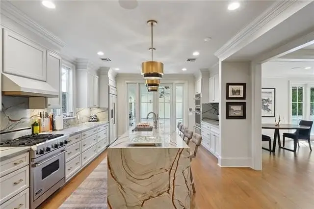 Experience the pinnacle of New Orleans living at this stunningly renovated 4 Bed, 4.5 Bath residence on Octavia Street. Built in 1975 and completely reimagined in 2024, this home seamlessly blends classic charm with high-end contemporary finishes. The property features a private, beautifully landscaped backyard with a spectacular swimming pool, creating a true oasis for relaxation and entertaining. Inside, enjoy spacious rooms and many custom details, including the luxurious primary bath with a glass steam shower and marble-topped double vanity. Downstairs, an ensuite bedroom is currently used as an office. Gated, covered parking for 2, and additionally, 2 off-street spaces: one entering from Octavia and the other entering from Loyola. A convenient detached storage room completes this perfect package. This is a rare opportunity for a move-in-ready, luxury home with a pool in a prime Uptown location, a block from Newman and blocks to Willow, De La Salle, Tulane and Loyola. It's a comfortable stroll to Danneel Park, Audubon Park and the Freret Street Corridor.