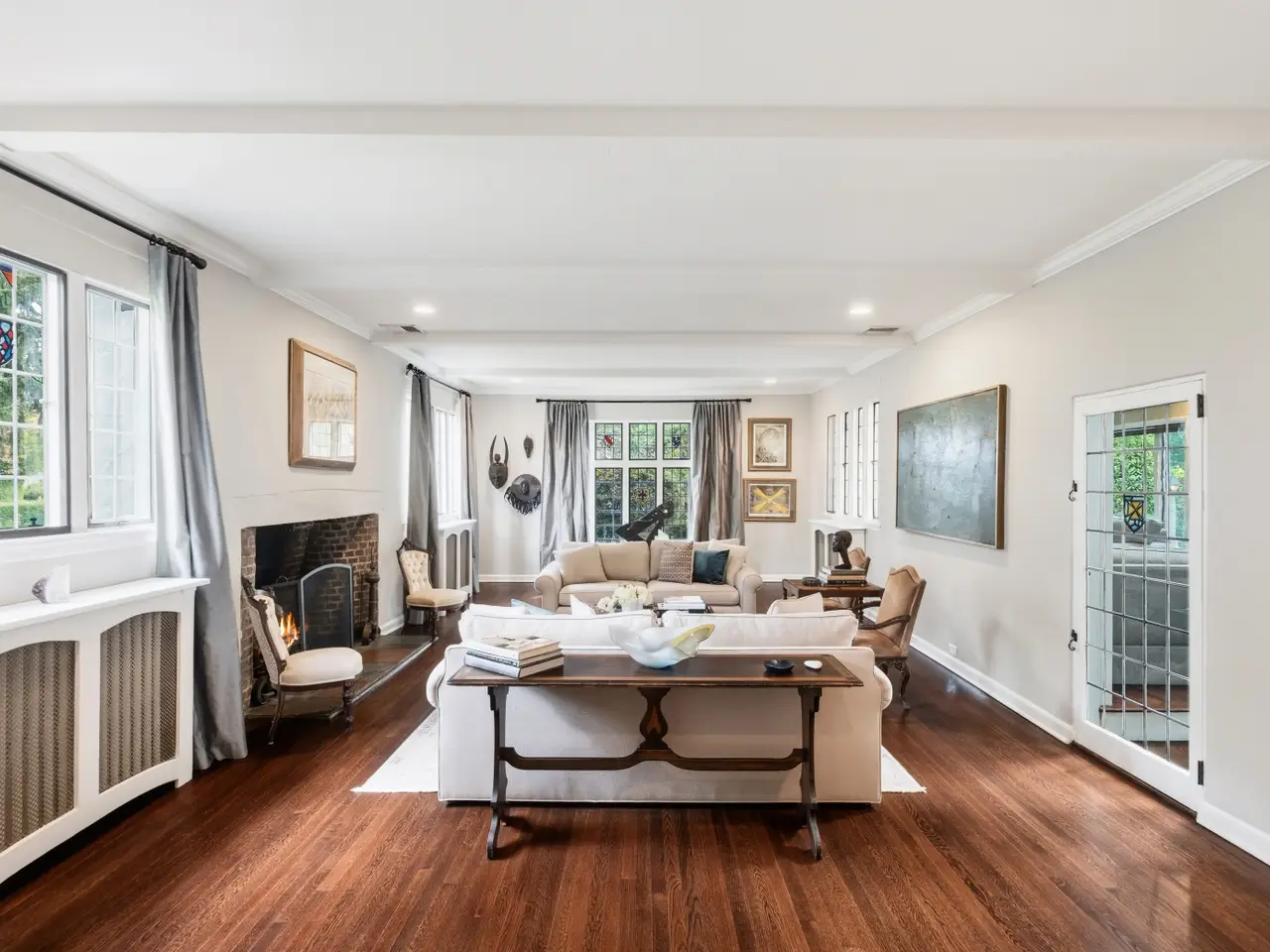 Modern vibe meets classic charm in this spectacular updated English Tudor, gracing over a third of an acre in one of New Rochelle's most sought-after locations. With magnificent curb appeal and stunning original architectural details perfectly paired with tasteful updates, it's easy to fall for this beauty. The gracious entry foyer opens to a breathtaking sunken living room with 12-foot ceilings, fireplace and remarkable original stained glass windows which have been artfully restored. The fabulous family room features skylights and wall to wall windows overlooking the gorgeous gardens, porch and patios. A formal dining room opens to the captivating grounds, seamlessly blending the indoor and outdoor entertaining space. Recently updated, the eat-in kitchen presents extensive cabinets, granite counters and new stainless steel appliances. The first floor is complete with a powder room as well as a coveted first floor bedroom with a beautiful ensuite bathroom. All bedrooms feature deep closets and all five bathrooms have been redone with designer touches. The spectacular primary bedroom features a sitting area, double closets and an ensuite bath with double sinks and a walk-in shower. There are striking original details at every turn, and this haven is as pristine as can be. Enjoy recessed lighting, handsome hardwood floors and three-zones of central air conditioning and heating. Home is wired for portable generator, a wireless ADT security system and boasts a two car garage with high ceilings, epoxy flooring and storage. Plus, the basement provides over 1000 sq ft of inviting bonus space. Nestled amongst mature trees and specimen plantings, the backyard is a private, tranquil oasis. All this, in a convenient location near shopping, restaurants, schools and worship. Just a 30 minute train ride to NYC.