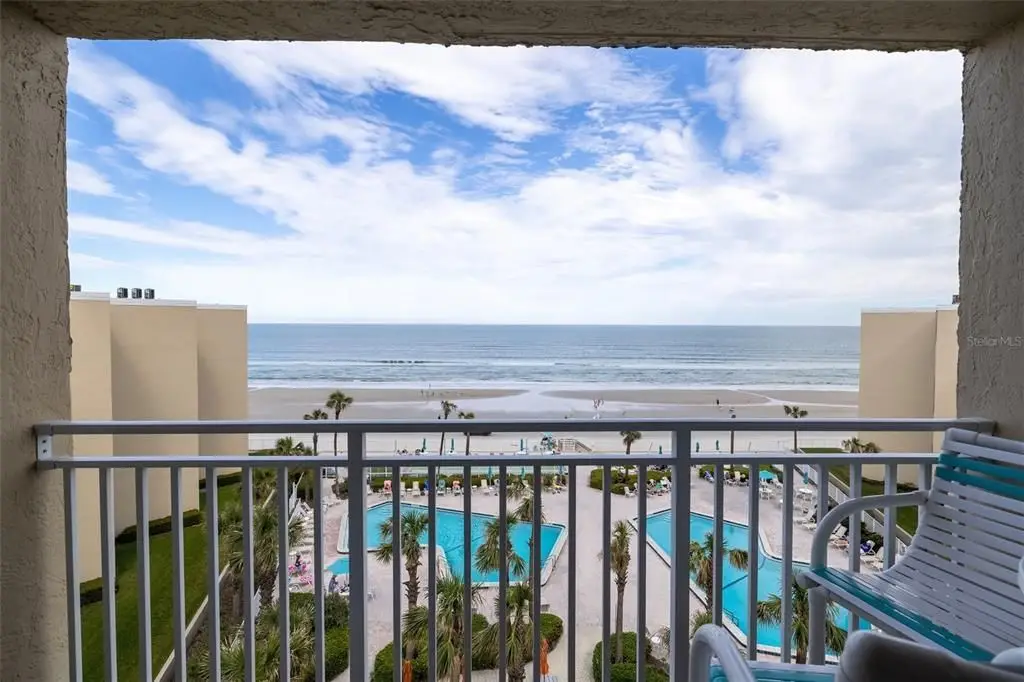 Spectacular oceanfront condo at the very popular Pelican condo situated on the top 6th floor. Beautifully remodeled & tastefully furnished in 2022, this move-in ready beach retreat features 2 bedrooms, 2 baths plus a bonus den or 3rd bedroom. Direct oceanfront balcony provides gorgeous views overlooking two pavered pools, courtyard & the sparkling Atlantic ocean! Entertaining is easy in this gourmet kitchen with breakfast bar, quartz counters, new appliances, plumbing & lighting. This light & bright condo has an open floorplan & was completely remodeled in 2022, including new hurricane rated windows & doors, new plumbing, new electrical panel & wiring, new HVAC, new washer/dryer & new tiled floors. Decorator finishes include new custom milled white washed nickel gap shiplap siding on all ceilings & accent walls, plantation shutters. Both bathrooms feature quartz countertops with vessel sinks & tiled step-in showers. The bonus room, den, 3rd BR has a pocket door & attractive trundle bed. The Pelican had major building renovations in 2022, which included concrete restoration, new balconies & railings, new windows, new roof, new deck coatings, new waterproofing and paint, and new pool furniture & seawall. This tropical paradise resort includes two oceanfront pools surrounded by beautiful pavered decks, lots of tables & chairs, 2 shuffleboard cts, 2 gas grills & a private gated walkway to the beach. Well maintained & managed, this condo can be your forever home or rental investment since they do allow weekly rentals! They are pet friendly, allowing 2 pets ups to 80 lbs total. Conveniently located close to a grocery store, The Bakers Table & Touch of Italy, Restaurants, Nautilus Fitness, salon & a short walk or bike ride to Publix, Bealls, BBQ & Off the Hook. Only a couple of miles to historic Flagler Ave. Bistros & Shops, where you can enjoy wine tastings, art shows & good music too! Watch spectacular sunrises, sunsets & space launches from this immaculate furnished condo! Just bring your bathing suit & your toothbrush & enjoy the Florida lifestyle you deserve!