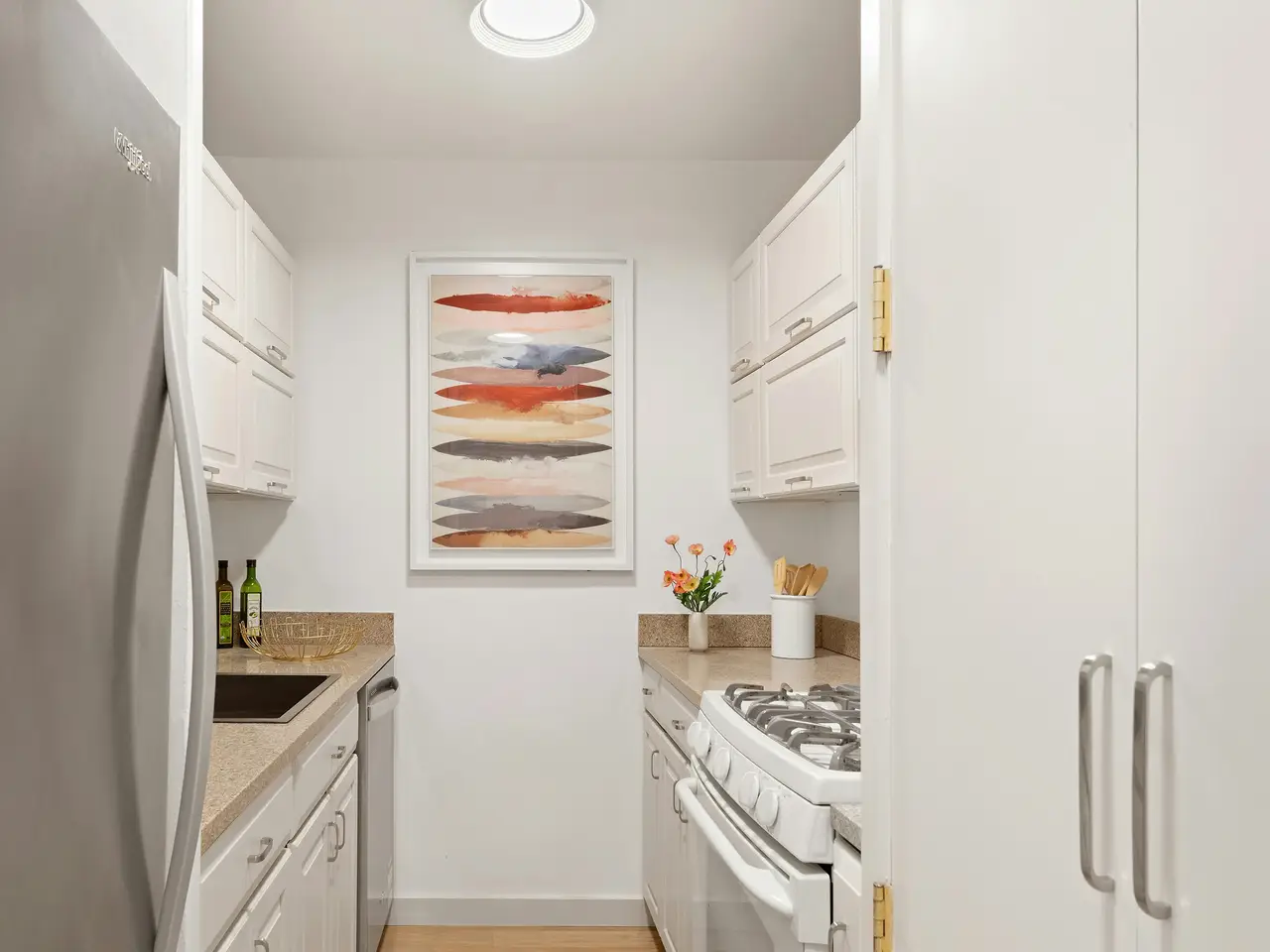 NEW TO MARKET! Move right into this grand, sundrenched rarely available oversized 2-bedroom 2-bathroom home in the iconic Kips Bay Towers Condominium, a full-service luxury building designed by world renowned architect I.M. Pei. As you enter this home, you are greeted by a wall of massive picture windows showcasing open views to the North, capturing a glimpse of the East River. The entire home is bathed in glorious sunlight, and brand new floors which run throughout the entire apartment. The sprawling living/dining room easily accommodates full-sized furniture and a traditional dining table, perfect for those who like to entertain or simply enjoy extra living space. There is a wall of deep walk-in closets which can alternatively be converted into a home office setup or remain as they are for expanded storage space. Just off of the dining room, there is a beautifully appointed kitchen with stone countertops and full-depth counters on either side with overhead cabinetry to supplement an exceptionally large pantry. Appliances include a gas range with oven, a brand new stainless steel refrigerator with an ice maker and a brand new full-sized stainless steel dishwasher. Nestled in a separate wing of the home, there are two large bedrooms off of a dedicated corridor. The king-sized primary bedroom is complete with two large closets and an en-suite bathroom with a tub/shower. The second bedroom rivals the primary in size and is serviced by a second full bathroom ideally situated off of the bedroom corridor. Built in 1962, Kips Bay Towers was designed by world renowned architect, I.M. Pei. Defined by its striking facade and large circular private driveway, Kips Bay Towers is amount the most distinguished residential enclaves in Manhattan with a full-time dedicated staff and an on-site management office. The best kept secret at Kips Bay Towers is the private 3.5-acre garden with a basketball court, a pickle ball court and a playground though many residents just enjoy lounging or dining in the garden. Other amenities include a modern gym, a community room with a full kitchen and two bathrooms, an extra-large laundry room, and a secure package room with attendant. There is a garage in the building, and outdoor parking spaces and private storage are available with wait list. There is currently an assessment in place of $373.60 per month for capital. No pets.