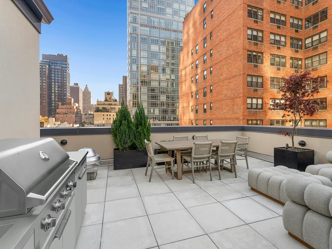 IMMEDIATE OCCUPANCY Residence 3C is a beautifully appointed south facing two-bedroom, two-bath residence spanning over 1,000 square feet. The residence includes a private balcony for outdoor enjoyment. The open plan living/dining room features abundant natural light and views of the landscaped garden below and the city skyline beyond. The impressively outfitted kitchen features custom cabinetry by BOTTEGA, polished Taj Mahal Quartzite countertops and backsplash, fully integrated Miele Appliances, and Hansgrohe chrome fixtures. A spacious peninsula seamlessly extends into the great room, offering an ideal area for both dining and working. A coat closet completes this area of the home. The bedroom wing is tucked away from the main living areas and includes a laundry closet with a full-size Miele washer and dryer. The spacious second bedroom features a large closet and offers garden views to the south, with the second bathroom conveniently located across the hall. The oversized primary bedroom boasts a private south-facing balcony and a walk-in closet. The elegantly appointed primary bathroom features heated floors, North Pearl marble, a custom BOTTEGA vanity, and Hansgrohe chrome fixtures. Additional highlights include 9'-7" ceilings, 8" wide plank Croatian Sandstone white oak floors throughout, and split multi-zone heating and cooling system. In addition, this residence is pre-wired for smart home automation. Find Your New Melody at Minuet Minuet is an emblem of tranquility in the heart of Manhattan. Imagined by Minrav Development and Issac and Stern Architects, Minuet offers an exclusive collection of just fifteen residences at a prestigious address between the leafy streets of Sutton Place and Turtle Bay. Each elegant home is impeccably finished, leaving no detail overlooked. Residents at Minuet will enjoy an enviable suite of essential amenities and services. The bespoke travertine and oak paneled attended lobby, evokes the feel of a private club. The sunlit fitness center includes a separate movement studio and is outfitted with top-of-the-line equipment from Peloton, Aviron, and Precor. A beautifully landscaped rooftop crowns the building, complete with multiple lounge and dining areas and a built-in outdoor kitchen. While all residences are equipped with in unit washers and dryers, an additional laundry room with high-capacity washer and dryer is located at the cellar level. Bike storage is available, and additional private storage is available for purchase. Just a stone's throw away from the heart of buzzing Midtown, discover this haven of tranquility characterized by blocks of stately townhomes and lush tree-lined streets. In this cozy enclave, filled with small artisanal shops, boutique grocers, green parks, and fine dining establishments, you will find all of the conveniences of city living coupled with neighborly charm. The complete offering terms are in an offering plan available from Sponsor. File No. CD 20-0034. Sponsor: 244 E 52 OWNER LLC c/o Minrav Development, 540 Madison Avenue Suite 16N, New York, NY 10022. Equal Housing Opportunity.