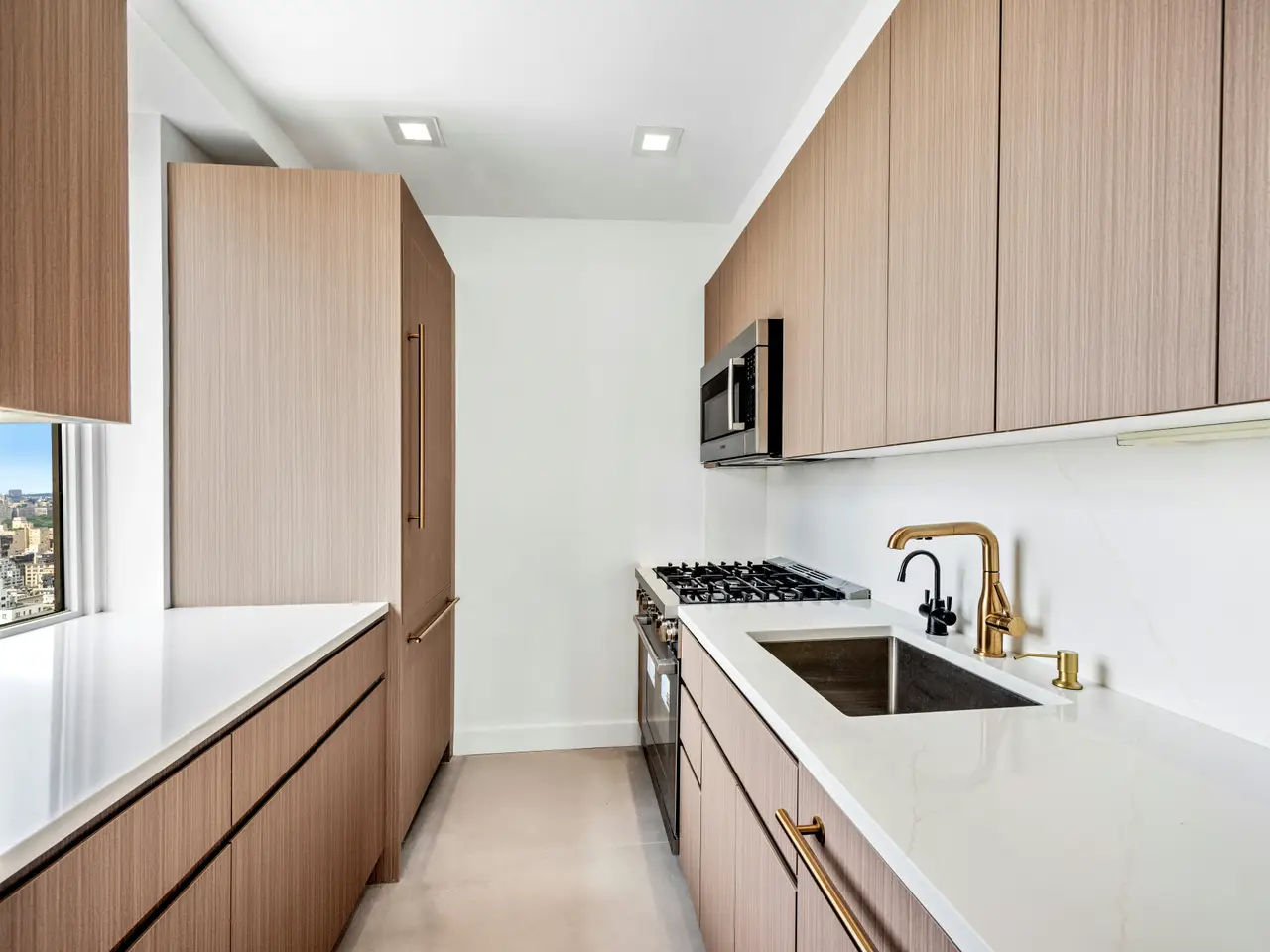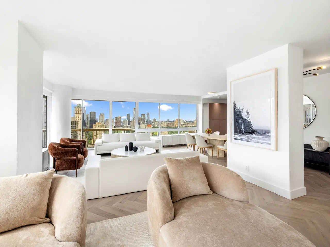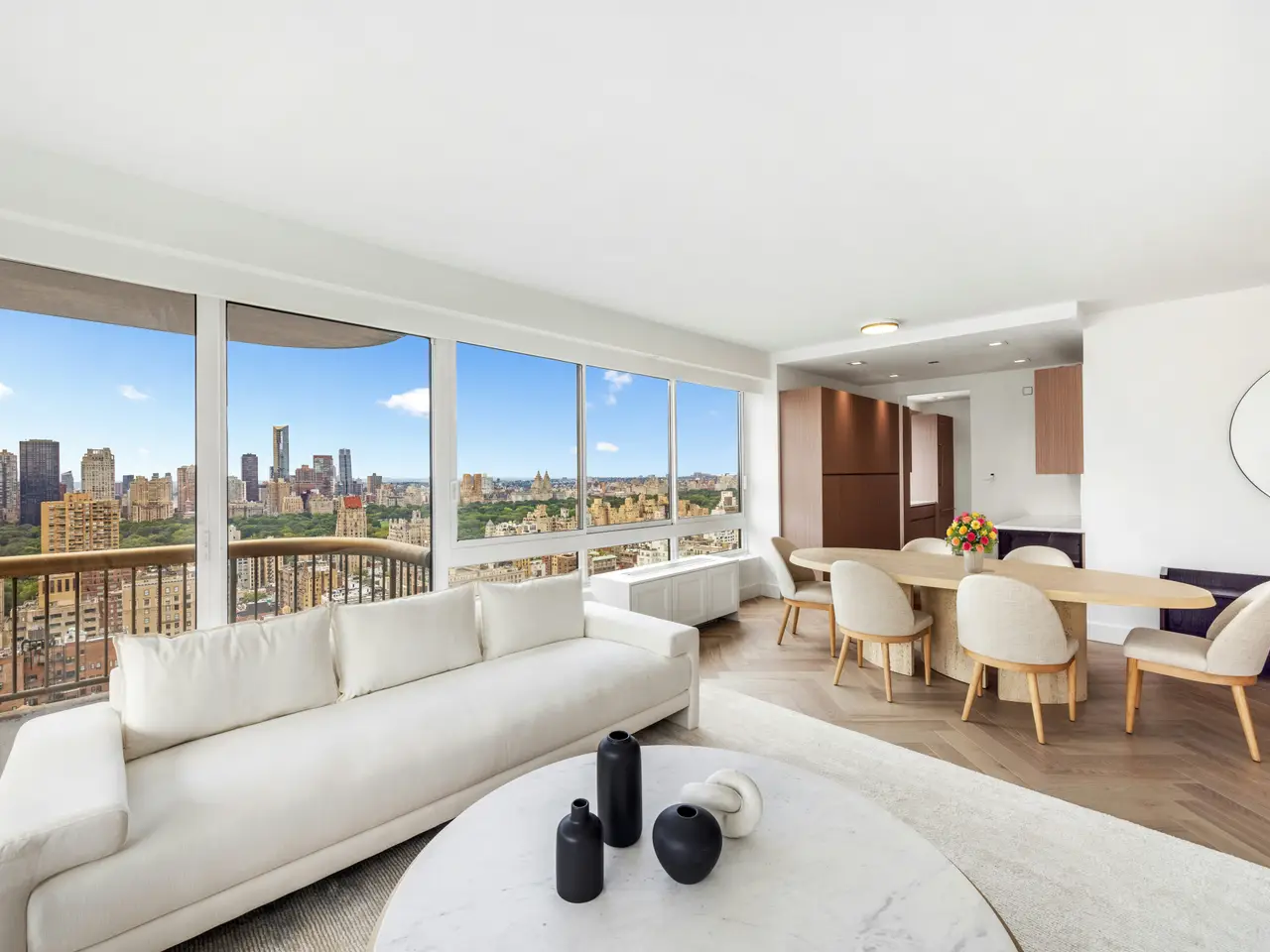 High in the sky with some of the best views on the entire Upper East Side, Residence 37C at 167 East 61st Street is a newly renovated, light-filled two-bedroom (convertible three), two-and-a-half-bathroom home with a wraparound private balcony overlooking Central Park. Enter through a gracious foyer flanked by a powder room and coat closet, and be immediately drawn to the dramatic vistas framed by floor-to-ceiling windows, all of which is complimented by an abundance of natural light all day long that shines on the beautiful herringbone floors. The open living and dining areas soak in south and west exposures, and there is a large wraparound balcony with two access points off of the living area, providing front row seats to sunsets over the city. A versatile media alcove off the living space can easily be enclosed to create a third bedroom. The adjacent dining area sits beside a sleek dry bar with a wine cooler and refrigerated drawers. Just a step away is the windowed kitchen which is complete with a brand-new Bosch stainless steel appliance suite with brass hardware. There is rich yet subtle light-colored wood handleless cabinetry all throughout, providing warm tones. The impressive views from this apartment stretch from Midtown East to the Upper West Side, Central Park to the George Washington Bridge, and the Palisades to the mountain ranges deep in New Jersey. A corridor thoughtfully separates the bedrooms from the living area, and contains an in-unit full-size washer and dryer tucked away in a dedicated closet as well as a full bathroom with a stall-shower. The king-sized primary bedroom has corner windows facing west and north, a walk-in closet, two secondary closets, and a stunning ensuite bathroom with a double vanity, discreet storage, and a tub. The second bedroom features open north views and has a large walk-in closet. Whopping views, endless storage, and high-end finishes define Apartment 37C. There are remote-controlled shades all throughout, and every closet is fully finished. 167 East 61st Street is a glamorous co-op building in an appealing yet central location. A soaring waterfall and open plaza greets you as you enter into the chic double-height lobby. This truly full-service building features full-time doorman, concierge, live-in resident manager, fitness center, private garden, storage, central laundry, playroom, and an on-site parking garage. The building allows pets, pied-a-terre ownership, subletting, co-purchasing, and gifting. 80% financing is permitted and there is a 2% flip tax payable by the purchaser.