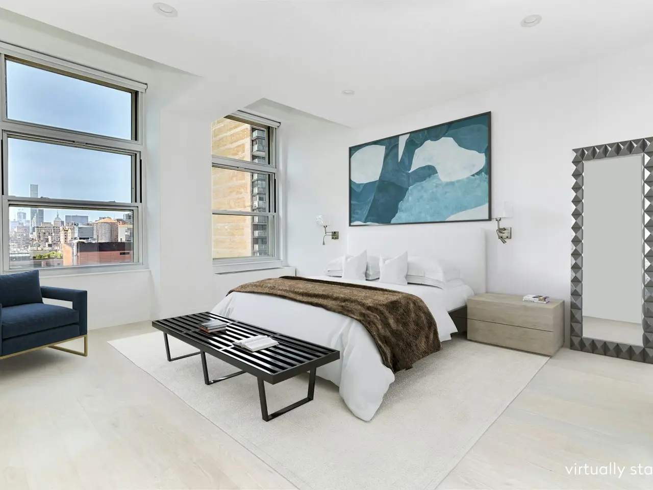 Enjoy living in this beautifully renovated 2 bedroom, 2 bath home with a great bonus loft and sunny southern views! This meticulously renovated apartment is located right off of Park Avenue and a few short blocks from Central Park. Park Avenue Court is an impressive white glove, fully staffed condominium with fabulous amenities. The apartment features soaring 14 foot ceilings throughout, beautiful white oak floors, recessed lighting, washer/dryer, endless storage space and soundproof windows with electric shades. The kitchen features all Bosch appliances including stainless steel refrigerator, 5 burner stove, dishwasher, microwave and a stainless steel Kraus deep sink. In addition, there are floor to ceiling white cabinets with Caesarstone counter-tops. The amazing back-splash is a handcrafted beautiful blue agate quartz with LED lighting. The serene primary suite has a generous walk-in closet and spa-style bathroom equipped with a Toto toilet, large shower/tub with beautiful tile and fixtures throughout. The 2nd bedroom has substantial built-ins and large closet with a renovated bathroom in hallway. A modern inspired glass enclosed oak staircase leads to the large loft space with great storage and multi-use potential. Please note that the total square footage does not include the loft space of approximately 400 sq. feet of bonus space. Residents will enjoy the convenience of a fitness room, indoor swimming pool, playroom, yoga studio, resident superintendent, courtyard, adjacent parking garage, full staff and concierge service adding a touch of luxury to everyday living. Located in the vibrant Upper East Side and in close proximity to the subway, bus, great shopping including Whole Foods and Fairway, Central Park, The Met and Guggenheim along with world class dining. Experience Upper East Side living at its finest.