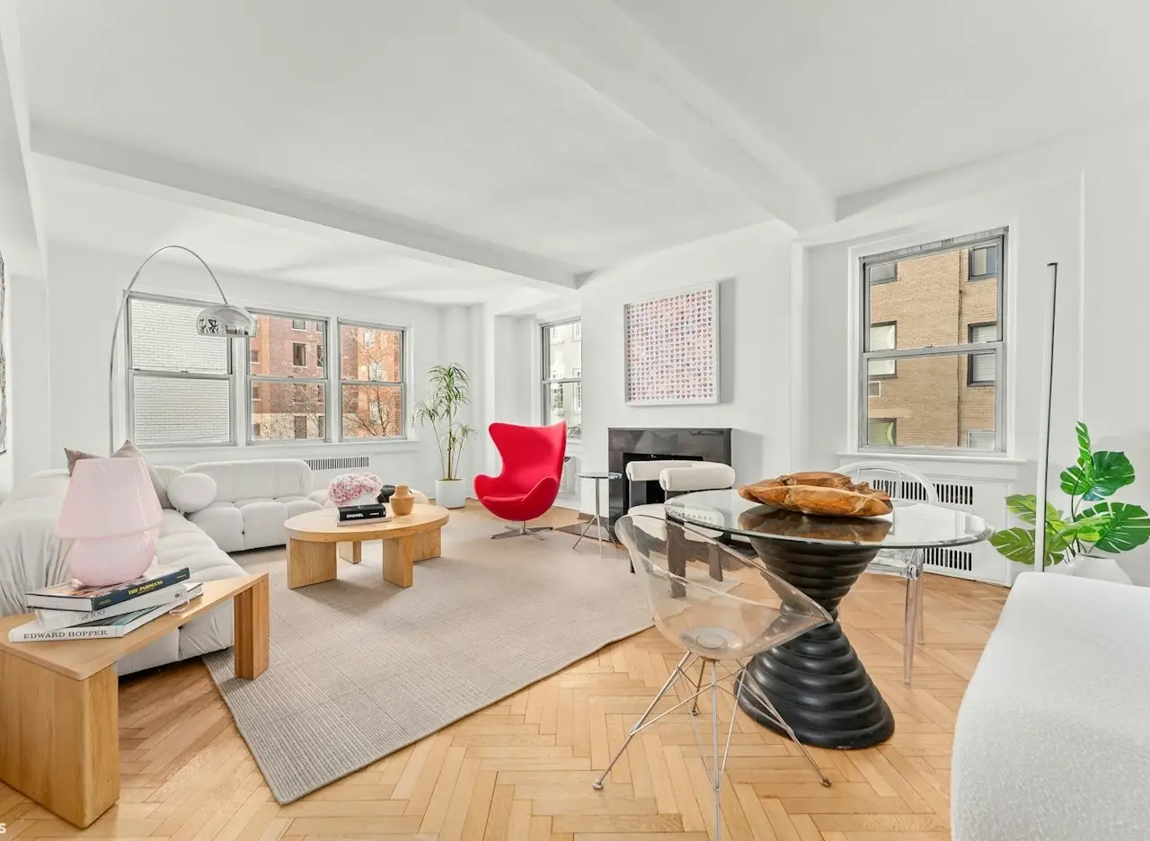 Just off Fifth Avenue, this distinguished Pre-War corner residence combines timeless elegance with modern luxury. A rare offering, the expansive one-bedroom home with a beautifully renovated bath is a showcase of refined living. The windowed kitchen is designed for both style and function, featuring Miele refrigeration and dishwasher, complemented by a sleek Smeg oven-ideal for the discerning home chef. A gracious entry foyer opens to interiors highlighted by classic herringbone hardwood floors, freshly refinished for a flawless finish. With nine oversized windows, the apartment is bathed in natural light while facing the rear of the building, ensuring the ultimate in peace and quiet. The wood-burning fireplace creates a sophisticated focal point, while thru-the-wall AC units provide modern comfort. This meticulously maintained cooperative has recently refreshed its hallways, elevating the building's overall appeal and reinforcing its commitment to excellence. For those seeking a residence that blends Pre-War character with contemporary updates, this home offers not just an apartment, but a lifestyle of enduring quality.  4 East 70th Street is an exquisite boutique art-deco cooperative, located close to Fifth Avenue, Central Park, and the iconic Frick Museum. Residents enjoy white-glove service, including doorman-controlled elevator access, a resident manager, and a level of care and attention that defines the best of New York living. This premier neighborhood offers world-class shopping on Madison Avenue, art galleries, and gourmet dining at your doorstep. Pied-a-terre ownership is welcomed, and small pets are allowed with board approval, making this an ideal place to call home for those seeking the perfect balance of style, comfort, and location.
