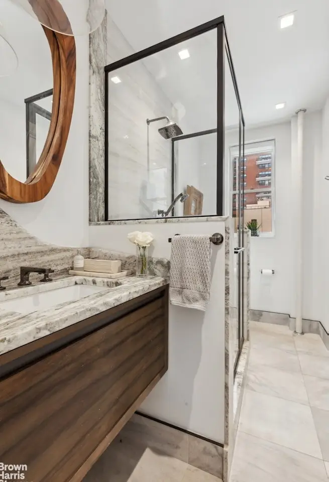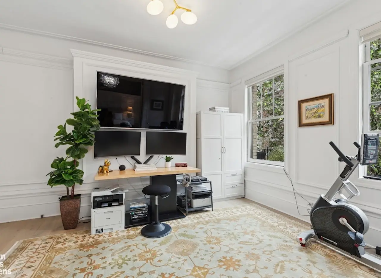 A truly exceptional opportunity awaits in this elegantly renovated 4-bedroom + home office, 3-bathroom duplex co-op, just half a block from Central Park. Blending pre-war charm with modern luxury, this stunning 10-room residence spans the 4th and 5th floors, offering an exquisite Parisian-style layout. Upon entering the top-floor foyer, you're greeted by double coat closets and a striking stained-glass window above the staircase, setting the stage for elegance. The gallery hall leads to an exceptional double-wide living room, bathed in natural light from oversized south-facing windows. Flowing seamlessly into the oak-paneled dining room-complete with a charming bay window-this space is perfect for both grand entertaining and intimate gatherings. The heart of this home is the beautifully renovated, windowed eat-in kitchen. Thoughtfully designed, it features custom floor-to-ceiling cabinetry, Bosch suite of appliances, and exquisite quartz countertops. A center island and banquette seating provide ample workspace and dining options, while a rare floor-to-ceiling pantry-spanning nearly ten feet-offers unmatched storage for every kitchen necessity. Every detail of this chef's kitchen has been custom-crafted for style and efficiency. One the same floor, a classic library boasts floor-to-ceiling built-in shelving and additional closet space. High ceilings, tree-lined street views, recessed lighting, and luminous chandeliers add to the home's refined atmosphere. Brand-new wide-plank oak hardwood floors further enhance its sophistication. Downstairs, the private bedroom wing serves as a serene retreat. The south-facing primary suite includes a spacious sitting room and a beautifully appointed bedroom, cleverly separated by bi-fold French doors to allow for flexible use. Oversized windows, a Juliet balcony, and a charming bay window bathe the space in natural light. The primary bath is a work of art, featuring a custom-designed black-and-white origami-inspired glass mosaic, dolomite and emperador marble, satin brass fixtures by Brizo, a porcelain double-wide sink by Lacava, a custom wood vanity, a rain shower fixture, and a privacy glass-enclosed Toto toilet.  Two more bedrooms add comfort to this level, while a third flexible bedroom or office provides further versatility. A full windowed guest bath boasts decorative tiling, polished high-gloss onyx fixtures by Brizo, swooping marble countertops, a custom wood vanity, a Toto toilet, and an oversized shower, exuding understated luxury. A third windowed full bath features black-and-white pebble tiles, Nero Marquina marble, Rubinit fixtures, and another oversized shower, ensuring every detail of this residence is designed for comfort and style. This masterfully gut-renovated home was designed by Suzanne Cook, one of the Upper West Side's premier interior designers. Built in 1909 by Norman Tishman, The Norman is a well-maintained, pet-friendly building offering the convenience of a live-in superintendent and financing options up to 80%. Nestled among some of the city's most sought-after amenities-including Symphony Space, Whole Foods, Trader Joe's, the Children's Museum, and multiple subway lines (1/2/3 and B/C)-this historic gem is moments from Central Park's tennis courts, playgrounds, and the Jackie Kennedy Onassis Reservoir. Additional storage is included.