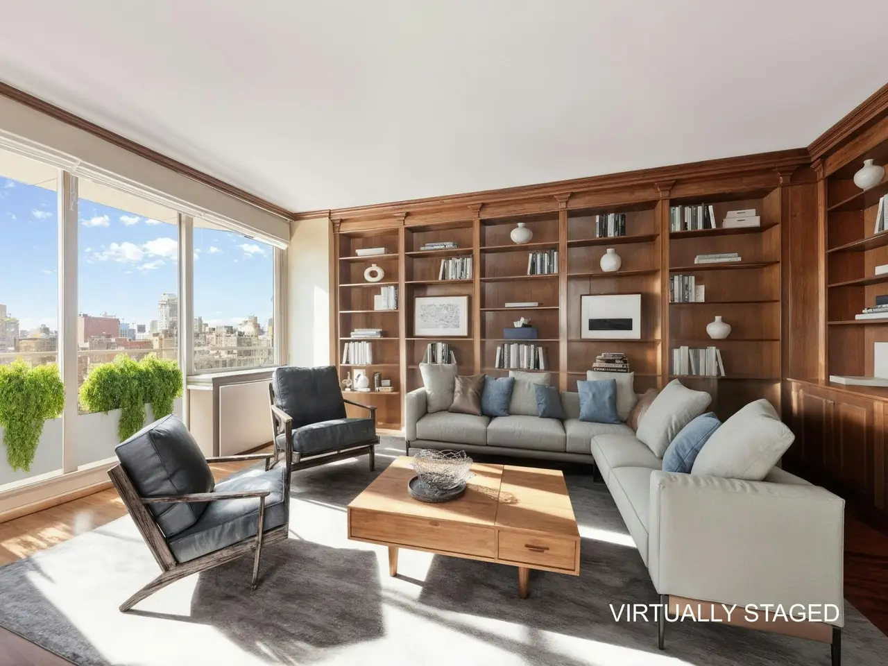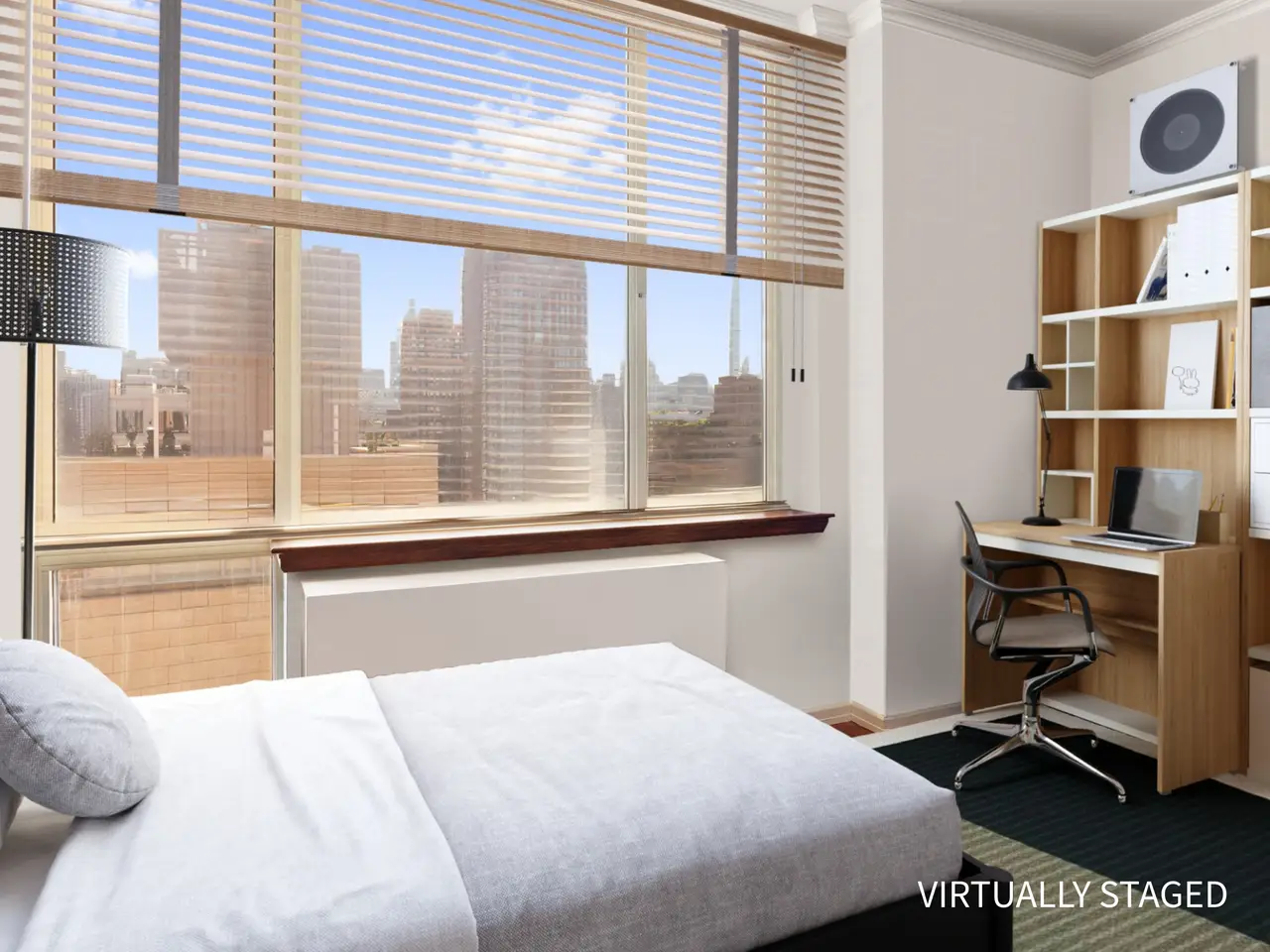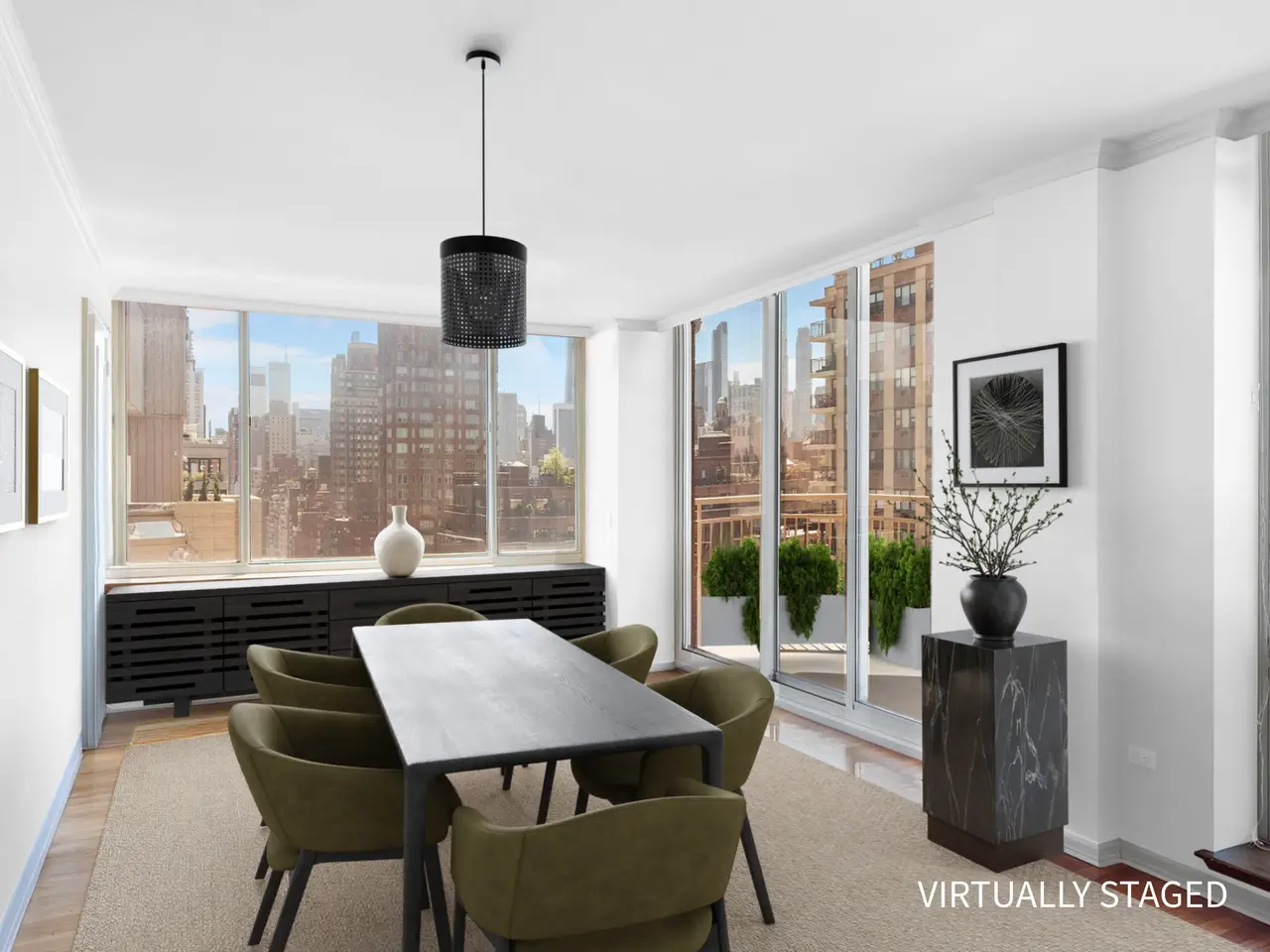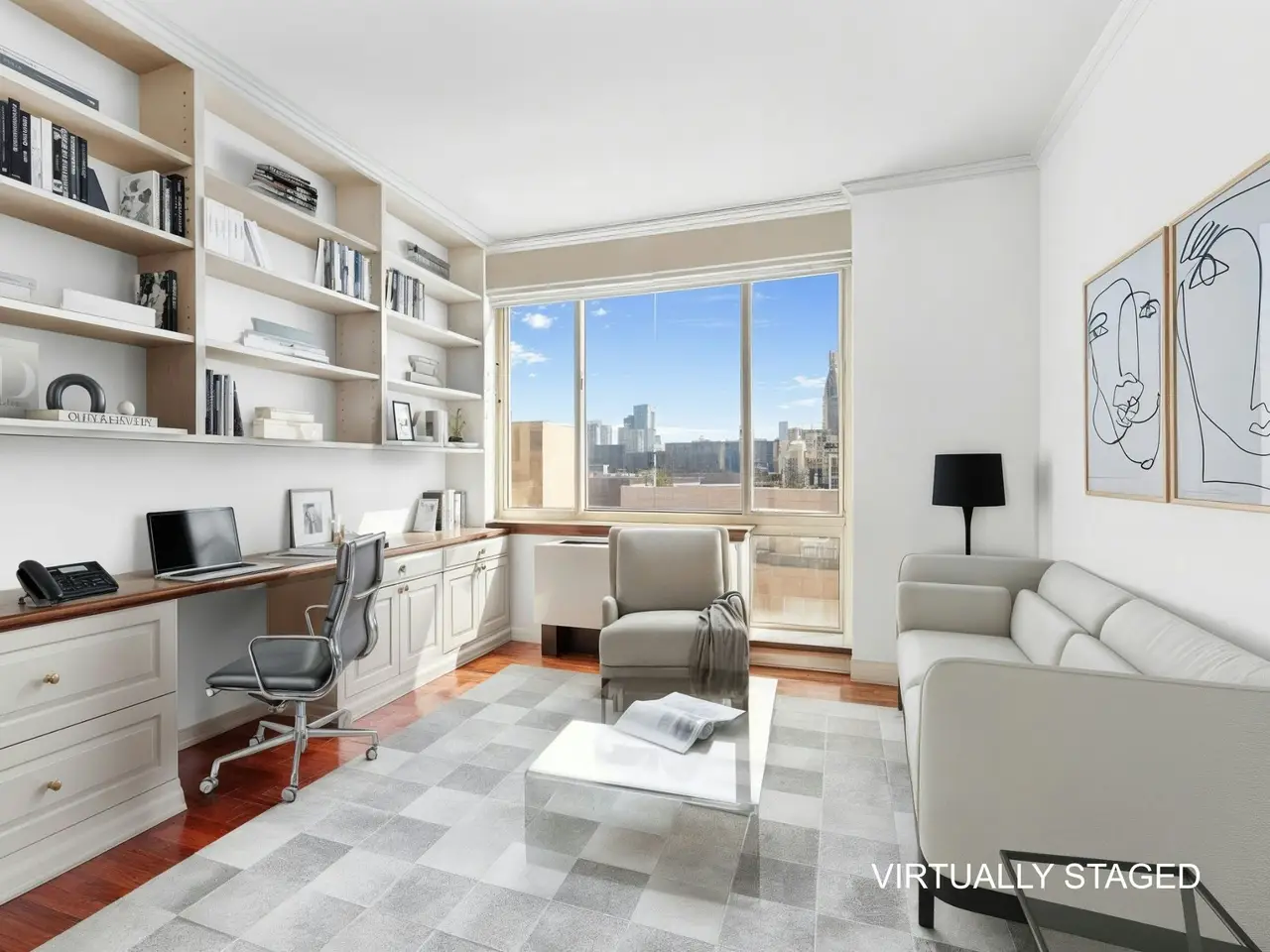 Floor-to-ceiling windows with panoramic skyline views