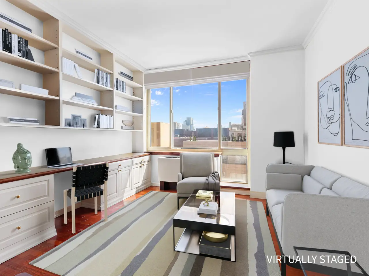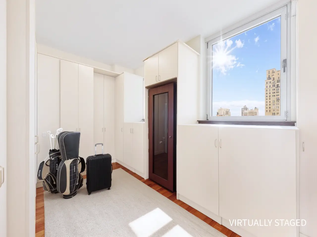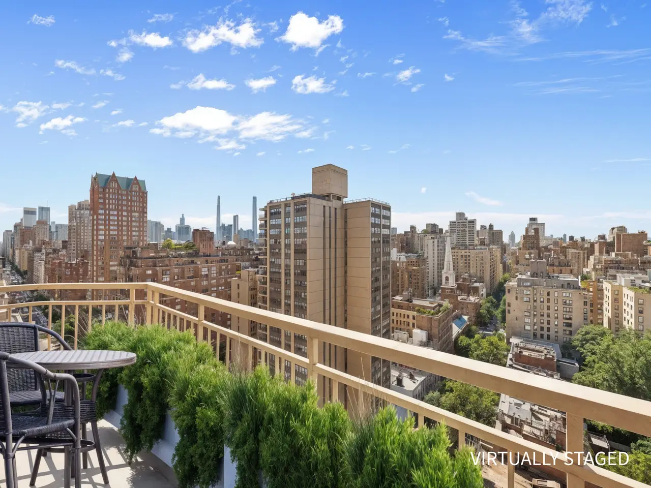 AN EXPANSIVE FULL-FLOOR HOME, FOUR-BEDROOMS, FIVE-BATHROOMS + DEN WITH VIEWS FOREVER... THE PROPERTY: Welcome to a full-floor Upper East Side dream home that offers panoramic skyline views from every room and the opportunity for custom design in every direction. The 19th floor at 201 East 80th Street is an expansive residence of approximately 3,500 square feet (interior), featuring five bedrooms, five bathrooms, remarkable storage, high ceilings, beautiful wood floors, and walls of windows throughout, as well as a stunning layout comparable to that of a private home. Exit the elevator onto a private landing. As you enter the apartment, you are welcomed home by an elegant, sunlit gallery with floor-to-ceiling windows that flows into a gracious foyer, with a closet for guests. The sprawling living room, framed by floor-to-ceiling windows with stunning views in every direction, seamlessly opens into a formal dining room with direct access to a private balcony—ideal for entertaining with a view. Adjacent to this space, double pocket doors lead to a handsome library that serves as an inviting retreat with flexible functionality. The library also opens onto a second private terrace, providing moments of quiet luxury, and can be efficiently converted into a fifth bedroom if desired. The windowed kitchen features custom cabinetry, a full suite of stainless steel appliances, a banquette, and a table that allows for morning coffee and informal dining. There is an option to open the kitchen into the formal dining room for those who prefer an open-plan layout. This wing of the apartment also features a remarkable storage room, which can serve as a play area, an au pair room, or be transformed into a fabulous laundry/mudroom. There is an expansive, light-filled primary suite with a sitting room. It features three exposures with sweeping city views, two separate, en-suite bathrooms, and five substantial closets. On the opposite wing, there are three additional bedrooms, a sun-soaked home office/bedroom with an adjacent guest bathroom, and two additional and beautifully proportioned bedrooms with en-suite bathrooms. Each room boasts remarkable city views, excellent light, ample closet space, and privacy from the primary suite and main rooms. Additionally, this wing features a Washer/Dryer and storage closet. THE BUILDING: The Richmond Condominium offers residents a full-service experience, featuring a 24-hour door attendant, concierge, bike room, and a beautifully landscaped roof terrace equipped with grills. Ideally situated in the heart of the Upper East Side, the residence is only moments away from Central Park, Carl Schurz Park, The Met, Neue Galerie, 92nd Street Y, and some of the city’s most sought-after dining destinations, providing endless inspiration and entertainment. Transportation is convenient, with easy access to the Q, and six trains are just a short walk away. THE BUILDING AMENITIES: Full-Time Doorman Concierge Service Common Outdoor Roof Deck Barbecue Area Bike Storage Common Storage Central Cooling Laundry Features: In-Unit BUILDING POLICIES: Pied-A-Terre Allowed 90% Financing Allowed Pets Allowed **SOME PHOTOGRAPHS ARE VIRTUALLY STAGED OR ACCESSORIZED.