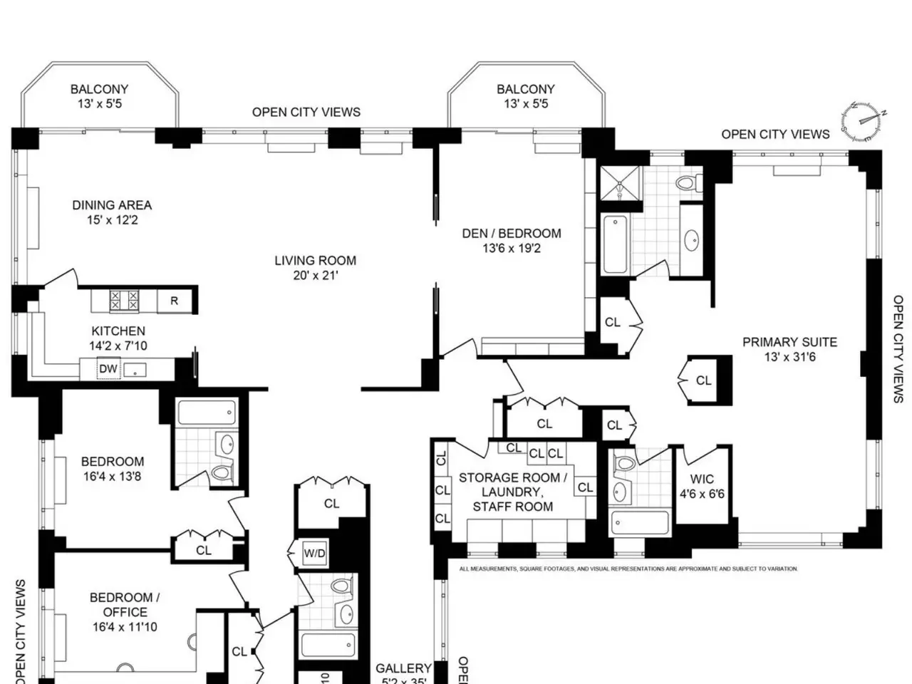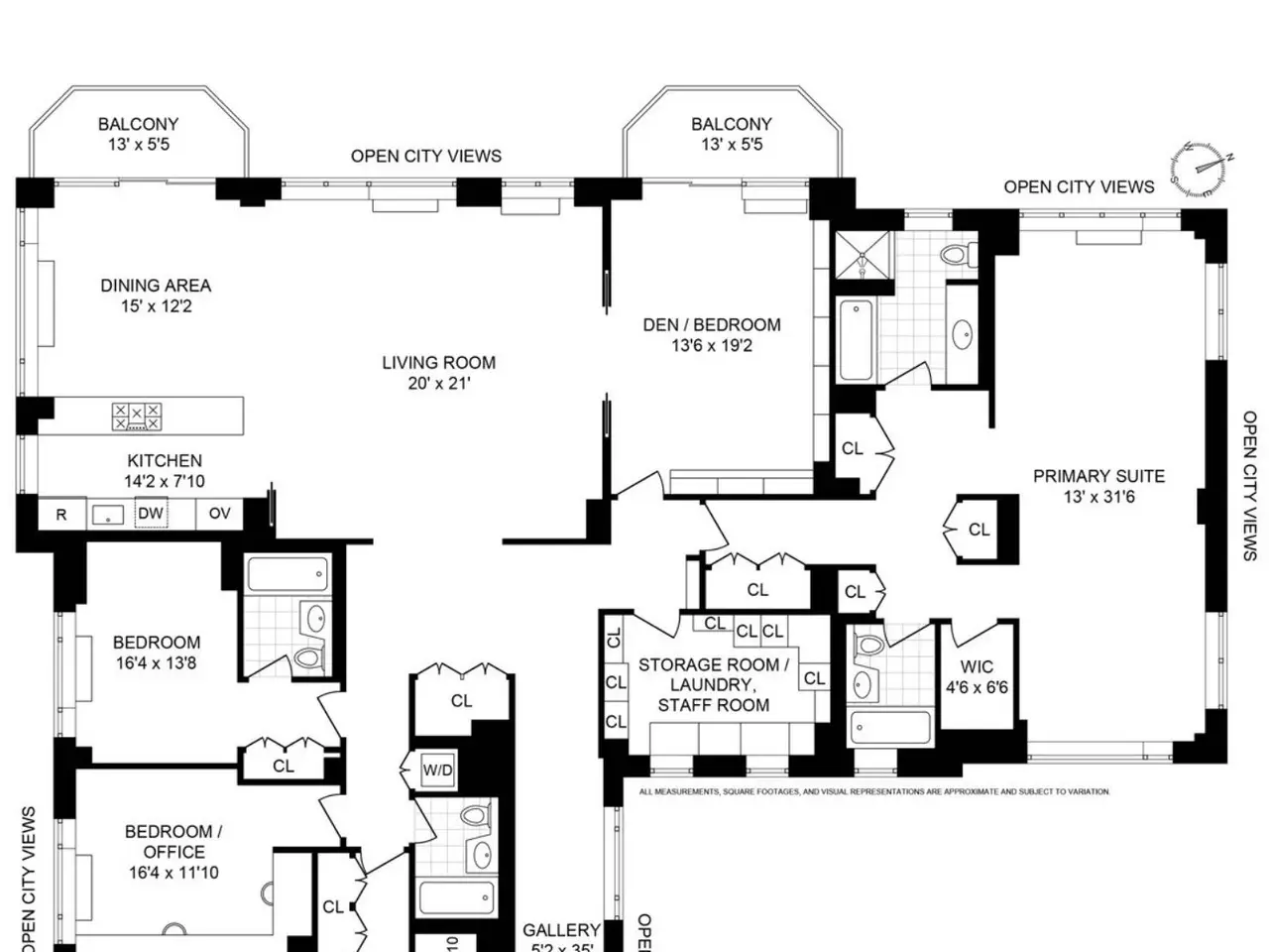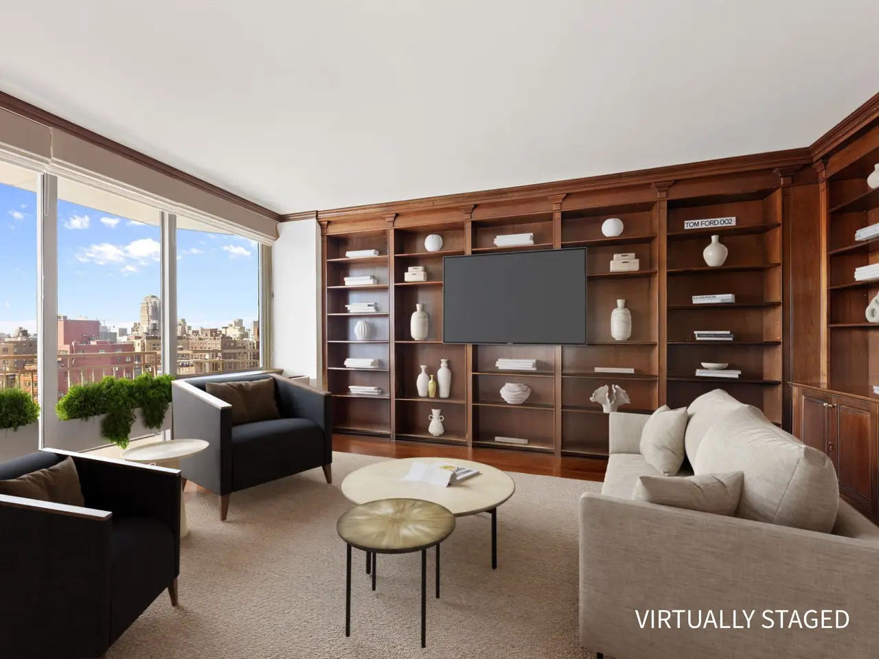 AN EXPANSIVE FULL-FLOOR HOME, FOUR-BEDROOMS, FIVE-BATHROOMS + DEN WITH VIEWS FOREVER... THE PROPERTY: Welcome to a full-floor Upper East Side dream home that offers panoramic skyline views from every room and the opportunity for custom design in every direction. The 19th floor at 201 East 80th Street is an expansive residence of approximately 3,500 square feet (interior), featuring five bedrooms, five bathrooms, remarkable storage, high ceilings, beautiful wood floors, and walls of windows throughout, as well as a stunning layout comparable to that of a private home. Exit the elevator onto a private landing. As you enter the apartment, you are welcomed home by an elegant, sunlit gallery with floor-to-ceiling windows that flows into a gracious foyer, with a closet for guests. The sprawling living room, framed by floor-to-ceiling windows with stunning views in every direction, seamlessly opens into a formal dining room with direct access to a private balcony—ideal for entertaining with a view. Adjacent to this space, double pocket doors lead to a handsome library that serves as an inviting retreat with flexible functionality. The library also opens onto a second private terrace, providing moments of quiet luxury, and can be efficiently converted into a fifth bedroom if desired. The windowed kitchen features custom cabinetry, a full suite of stainless steel appliances, a banquette, and a table that allows for morning coffee and informal dining. There is an option to open the kitchen into the formal dining room for those who prefer an open-plan layout. This wing of the apartment also features a remarkable storage room, which can serve as a play area, an au pair room, or be transformed into a fabulous laundry/mudroom. There is an expansive, light-filled primary suite with a sitting room. It features three exposures with sweeping city views, two separate, en-suite bathrooms, and five substantial closets. On the opposite wing, there are three additional bedrooms, a sun-soaked home office/bedroom with an adjacent guest bathroom, and two additional and beautifully proportioned bedrooms with en-suite bathrooms. Each room boasts remarkable city views, excellent light, ample closet space, and privacy from the primary suite and main rooms. Additionally, this wing features a Washer/Dryer and storage closet. THE BUILDING: The Richmond Condominium offers residents a full-service experience, featuring a 24-hour door attendant, concierge, bike room, and a beautifully landscaped roof terrace equipped with grills. Ideally situated in the heart of the Upper East Side, the residence is only moments away from Central Park, Carl Schurz Park, The Met, Neue Galerie, 92nd Street Y, and some of the city’s most sought-after dining destinations, providing endless inspiration and entertainment. Transportation is convenient, with easy access to the Q, and six trains are just a short walk away. THE BUILDING AMENITIES: Full-Time Doorman Concierge Service Common Outdoor Roof Deck Barbecue Area Bike Storage Common Storage Central Cooling Laundry Features: In-Unit BUILDING POLICIES: Pied-A-Terre Allowed 90% Financing Allowed Pets Allowed **SOME PHOTOGRAPHS ARE VIRTUALLY STAGED OR ACCESSORIZED.