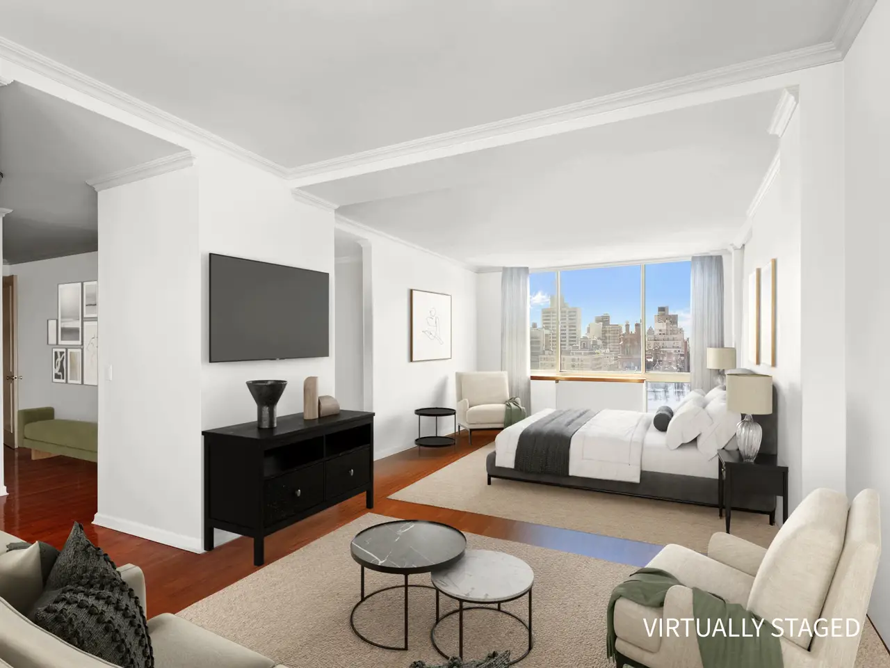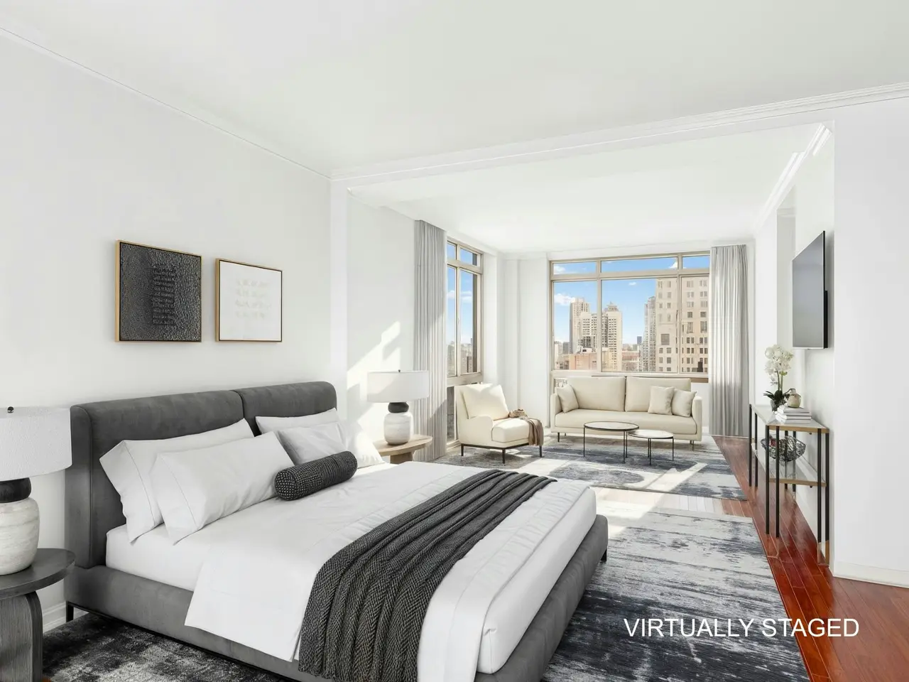 Expansive primary suite with city views