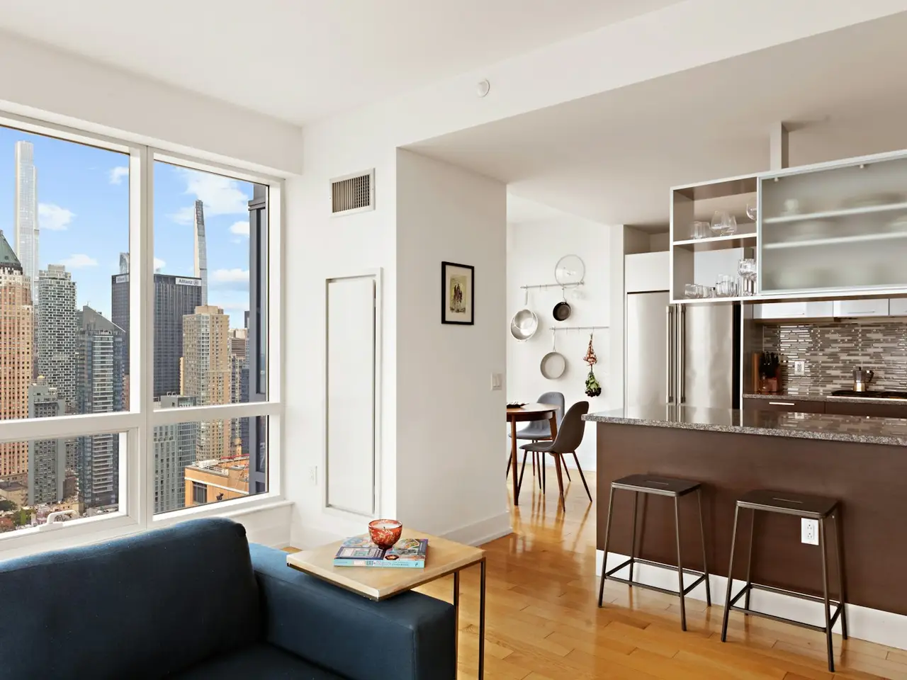 -Watch the seasons change. - High floor, expansive two bedroom/ 2 full bathroom , 1240sf, North and West views. -Stunning vistas of New York including: Central Park, the Hudson river, George Washington bridge, theatre district and beyond. -A unique layout with an entrance foyer adding an element of class and luxury to the already opulent unit. Designed to perfection. - Floor-to-ceiling windows thru-out the apartment, Split bedroom layout for added privacy, Hardwood floors, Washer/dryer, Stainless steel appliances, Granite finishes add to the charm of this spectacular apartment. - '2 proper bedrooms' with stunning views including Central park and ample closets thru out. - The open kitchen with its own dining alcove is perfect for that early morning coffee or catch the summer sunsets. -The Orion is a full-service luxury condominium that offers a concierge, maid service, dry cleaning and onsite parking. Residents also have access to the building's 3 floors of amenities situated on the 30th floor with spectacular views and include an 8200 square foot fitness room, pool, sun decks, sauna, sprawling lounge areas and entertaining rooms. - Conveniently located at the crossroads of Manhattan's commute. - The Orion is a pet and investment friendly condo.