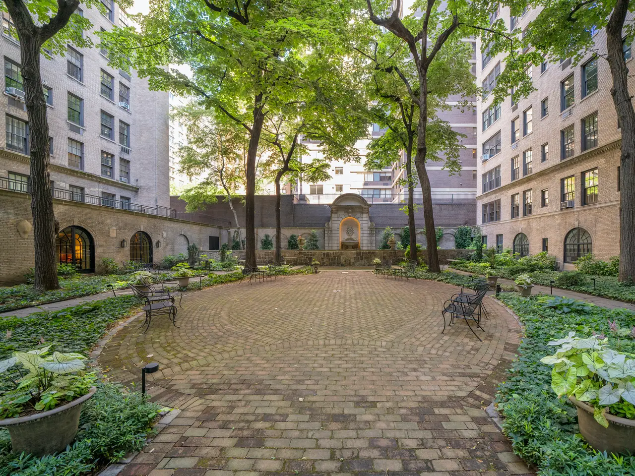 GAZE AT YOUR GARDEN Designed in 1927 by noted architect Mott Schmidt, 1088 Park Avenue is one of the most beautiful and desirable pre-war co-ops on New York's premier residential street. Its grand entrance and vaulted vestibules lead you to its unrivaled interior courtyard and garden. This highly-coveted south-facing 8 room apartment with magical garden views is available for purchase. The semi-private elevator landing invites you to a foyer which opens to a large, room-sized gallery which leads to a grand high-ceiling side-by-side living room and dining room. This classically proportioned entertaining space is almost 50 feet in length. The living room, with a wood burning fireplace and herringbone parquet floors, faces south directly onto the newly-restored fountain and gardens below. The recently renovated windowed eat-in kitchen with Viking 6-burner gas range, exquisite custom-designed brass hood, Miele dishwasher, Viking refrigerator/freezer, separate laundry/staff room (in-unit washer and dryer allowed) complement this 3 bedroom/3 bathroom home. Every room in this apartment has large windows that provide light and gorgeous garden or city views. It boasts north, south, and west exposures with well-designed closets and storage spaces. Noted for its exceptional and professional staff, 1088 Park Avenue has two newly-renovated gyms and the aforementioned magical park-like garden. The building allows 50% financing, has a 2% flip tax to be paid by the buyer, and is pet friendly. There is a temporary monthly special assessment in place of $8.22 per share through December 2023 for several building capital improvements and upgrades. Perfectly situated in the heart of one of New York City's most desirable neighborhoods, everything is readily available in moments - Central Park, restaurants, shops, schools, and museums.