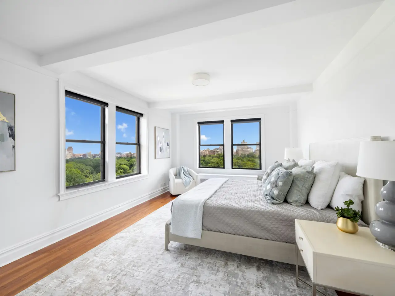 Corner master bedroom with park views