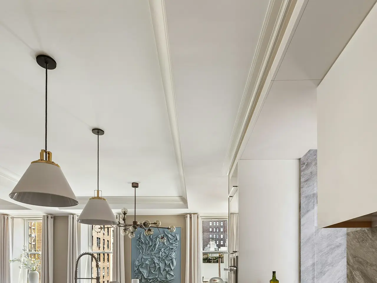 No board approval required for this purchase. This a grand pre-war co-op (with condo like rules when selling or subletting- just a waiver of right of first refusal!) sprawling 2,931 sq. feet (per Offering Plan) offering 4 Bedrooms, 4.5 Bathrooms, sunlight streaming in all day, with windows facing East, West, North and South (all directions)! Brilliantly sunny and facing East from the living room, the primary view is both colorful and serene. Oversized windows look out over green trees and assorted building backyards of varying shapes and sizes, nestled between West 71st-West 72nd, with a peek of high-rise buildings and blue skies in the distance. Servicing the square 25-Foot Wide "Great Room", with regal beamed ceilings and paneling, is the open eat-in-kitchen that would inspire the most discerning chef. Barstools line up along the expansive overhang of the quartzite island, while custom-built, lacquered kitchen cabinets provide an abundance of storage. The Verona induction range vents externally, and an added Miele Convection/Microwave wall oven provides additional high-speed cooking/heating options. The Miele Dishwasher is disguised with beautiful cabinet paneling, and a side-by-side Gaggenau Refrigerator/Freezer offers very spacious storage, and there is also a separate wine fridge. This luxurious kitchen is part of an open, loft-like space (nearly 600 sq. feet) that includes the formal dining area and living room. Additional bells and whistles of the residence include: Solid 5" white oak hardwood floors laid in a handsome herringbone pattern, central air conditioning, and a separate windowed laundry/"Mud" room with a Bosch washer and dryer (a welcome and rare bonus!) Bedroom exposures primarily face West and are flooded with afternoon sun. Peering over a private landscaped courtyard that belongs to the neighboring "Heritage" Condo building, is a peaceful green space, ensuring a quiet setting outside of your primary bedroom windows. While each bedroom is complete with an en suite bathroom, huge closets, oversized windows and ample privacy, the Primary Bedroom Suite enjoys an exquisite fireplace mantle, huge walk-in-closet and an additional windowed "bonus room". The bonus room can serve as a home office, nursery, dressing room, or even a second walk-in closet! The spa-like bathroom has generous proportions with an oversized soaking tub, double sinks and vanities, a huge windowed shower stall, separate toilet booth, and Italianate mosaic marble tile surfaces. Finished in a soothing color palate of light blues, greys, and white, the primary bathroom offers a serene oasis. Offering over 17,000 sq. feet of pristine, newly built amenities, this luxurious co-op welcomes you home with a full staff with concierge, elegant lobby, double library, private screening room, full fitness center, game room, party room/lounge with kitchen, and a spacious children's playroom. Pets are welcome at the Chatsworth, which is located just across from the Upper West Side's most popular Dog Run. Take a stroll through the lush Riverside Park and you'll find this location has easy access to all transportation (including the express subway station at West 72nd, just two blocks away). Enjoy the best of the Upper West Side, from any vantage point, in every direction!