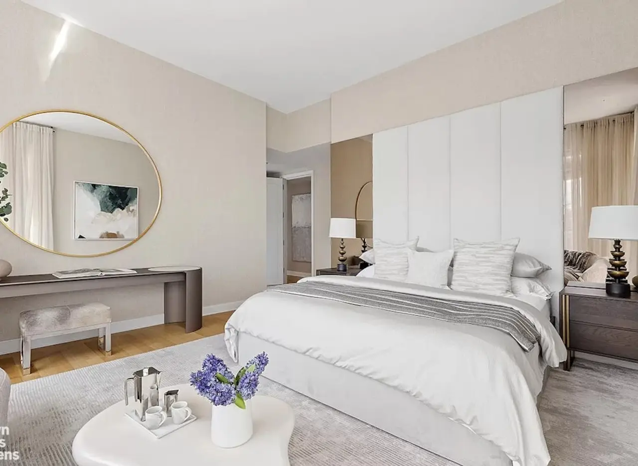 Last four bedroom at Zeckendorf Marketing's UES tower! Apartment 18B at 1289 Lexington is an impressive four-bedroom home grand in scale. Southern light pours into the great room, kitchen, and primary bedroom, creating a bright, airy atmosphere that reaches almost 10' to the ceilings. Three more bedrooms, four-and-a-half bathrooms and a private laundry room complete the picture of this grand residence. With interiors designed by AD100 firm SheltonMindel, the kitchen features custom-made walnut cabinets, a full suite of Gaggenau appliances (including a vented stove hood), custom pendant lights, and elegant slab marble and Glassos counters. The bathrooms are worthy of one of the world's great spas, with slab and mosaic stonework in white and a light, natural palate. Amenities include a business center with four private study/Zoom rooms and a large meeting room; a Media Creation and Gaming room with Karaoke and musical instruments; an elegant lounge with a catering kitchen and landscaped terrace; a rooftop terrace with fireside seating and outdoor kitchen with grill; a windowed fitness center designed by The Wright Fit; a fun-filled playroom created by Silver Hill Atelier. 1289 Lexington is positioned where the Upper East Side meets Carnegie Hill. This newly completed condominium is close to the Metropolitan, Guggenheim and Neue Galerie museums. Shopping at Whole Foods, Eli's and Grace's is just outside the door. Moreover, one can enjoy Uva, Café Sabarsky, Sistina and myriad other great restaurants on a regular basis. All dimensions and square footages are approximate and subject to, among other things, normal construction variances and tolerances. Square footage exceeds the usable floor area. Sponsor reserves the right to make changes in accordance with the terms of the Offering Plan, as amended ("Plan"). In the event of any inconsistency between this floor plan and the floor plans contained in the Plan, the floor plans contained in the Plan shall prevail and control. Plans and dimensions may contain minor variations from floor to floor. Any depictions of personal or condominium property, including, without limitation, any interior and exterior decorations, furniture, furnishings, fixtures, appliances, and landscaping (including the maturity of growth of landscaping), are for illustrative and conceptual purposes only. No representation or warranty is made that a unit owner will be able to implement the furniture layout shown above. Sponsor makes no representations or warranties except as may be set forth in the Plan. THE COMPLETE OFFERING TERMS ARE IN AN OFFERING PLAN AVAILABLE FROM SPONSOR. FILE NO. CD17-0315. SPONSOR: 86LEX OWNER, LLC, 445 PARK AVENUE, SUITE 1902, NEW YORK, NY 10022. EQUAL HOUSING OPPORTUNITY.