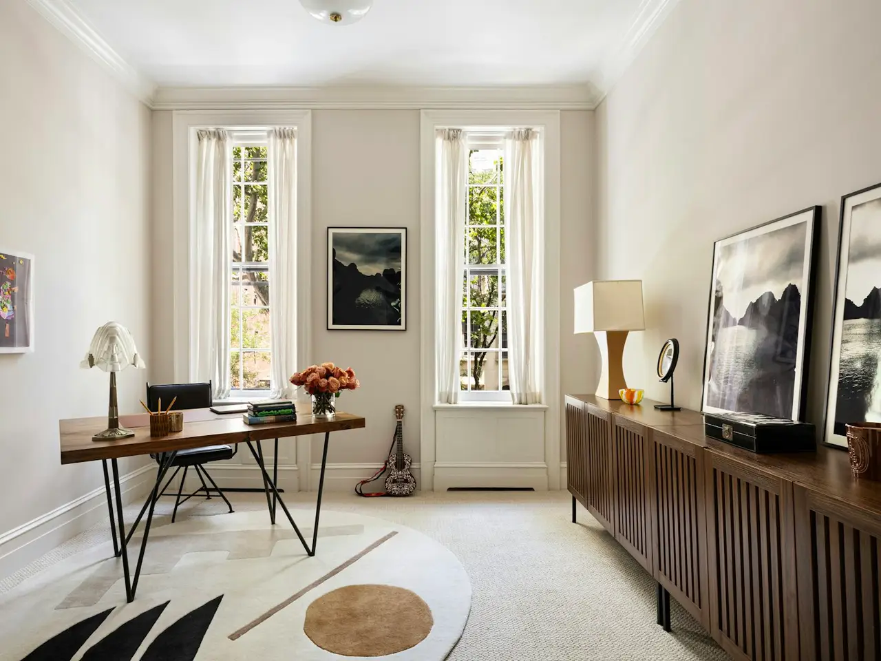 Exceptional Historic Townhouse in Treadwell Farm Impeccably maintained and move-in ready, this four-story single-family townhouse in pristine condition, features nearly 5,000 square feet of elegant living space (including cellar) and a stunning south-facing garden. This remarkable 1870 residence sits on the coveted south side of East 62nd Street, a tranquil tree-lined block within the distinguished Treadwell Farm Historic District. This home showcases the perfect marriage of historic charm and modern luxury, having been thoughtfully updated while preserving its architectural integrity. Garden Level The garden level welcomes you through both formal and service entrances. The formal dining room features floor-to-ceiling windows and elegant French doors that open directly to the professionally landscaped garden, originally designed by renowned landscape artist Edwina Von Gal. The spacious chef's kitchen boasts premium appliances including Sub-Zero refrigeration, Miele dishwasher, and a sophisticated reverse-osmosis water filtration system. Custom cabinetry extends into the butler's pantry, where a private elevator provides access to all floors for maximum convenience. Parlor Floor The parlor floor showcases gracious entertaining spaces with over 11-foot ceilings. The light-filled living room overlooks the serene garden, while an intimate mahogany-paneled library provides a quiet retreat facing the tree-lined street. Enhanced with five zone-zone climate control, every detail has been considered for effortless and modern living. Third Floor - Primary Suite The primary bedroom is a sanctuary of natural light, featuring three large south-facing windows and a striking 19th-century working fireplace. The luxurious en-suite includes a spacious dressing room with custom built-ins, leading to a marble-appointed bathroom with double vanities, soaking tub, and oversized dual-head shower. A versatile north-facing room, currently utilized as an office, completes this private floor. Fourth Floor Two additional bedrooms occupy the top floor, including a sun-drenched room with charming Juliet balcony overlooking the garden. The front bedroom features a marble fireplace, walk-in closet, and private en-suite bathroom. Cellar & Mechanicals The approximately 930-square-foot cellar provides abundant storage, powder room, and laundry facilities. Naturally lit through front window, the space is dry and meticulously maintained. All mechanical systems are in excellent condition. Notable Features - Four exquisite wood-burning fireplaces with variable fan inducers - Five-zone air conditioning - Comprehensive humidification system for art preservation - Private elevator servicing all floors - Air rights available for fifth-floor expansion This is a rare opportunity to own a timeless townhouse in one of Manhattan's most cherished historic districts. A truly exceptional home of character, comfort, and pedigree.