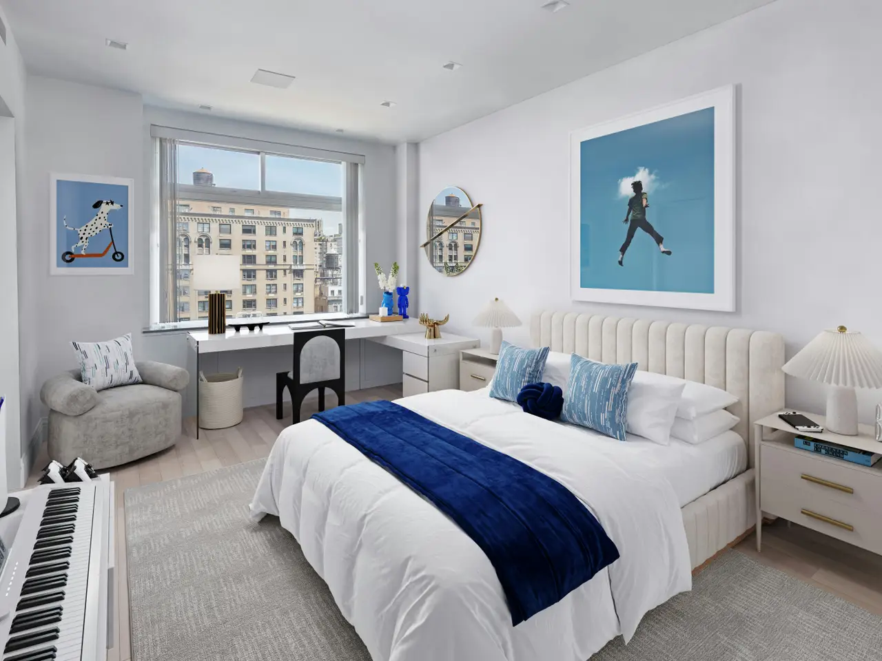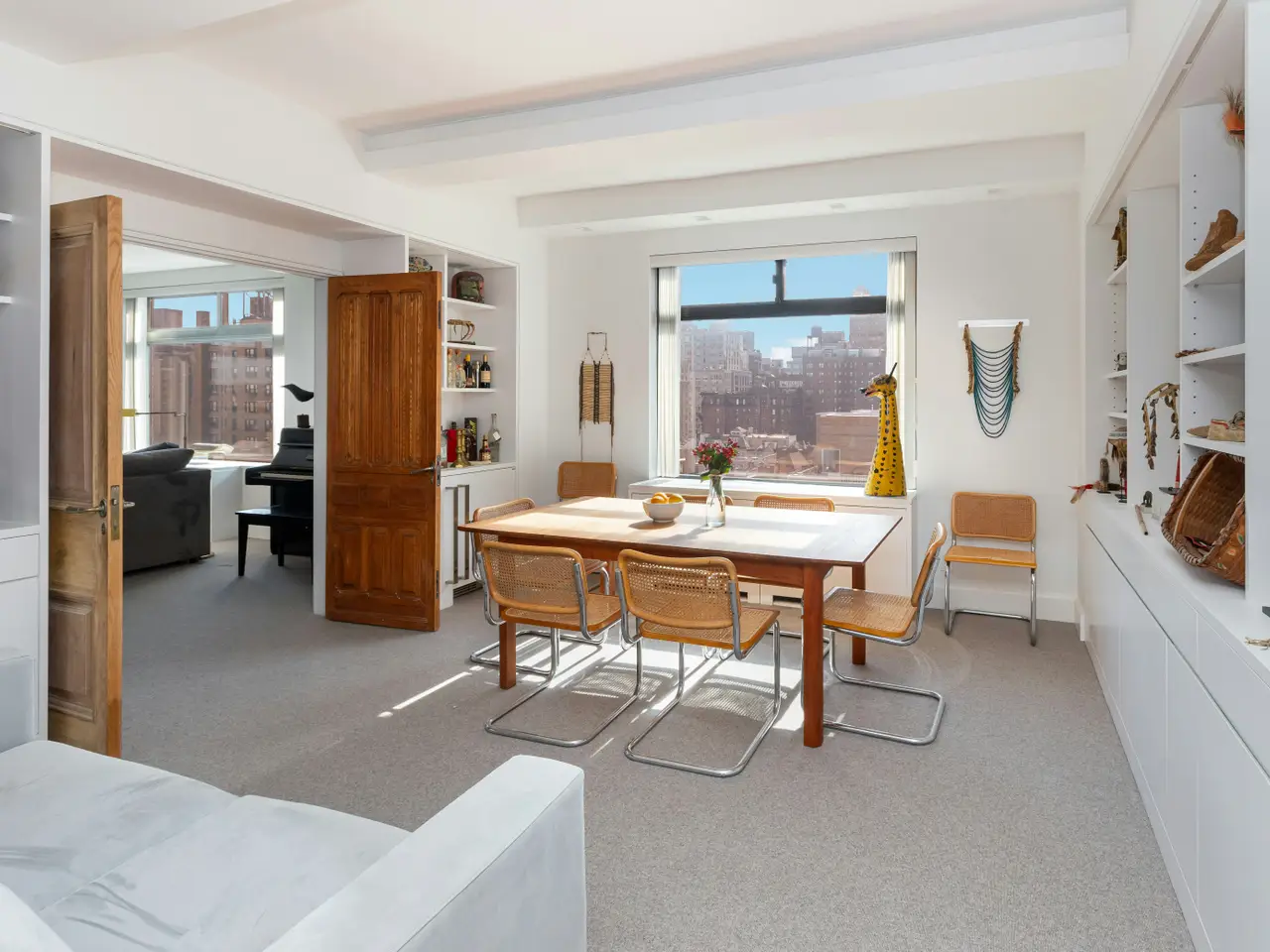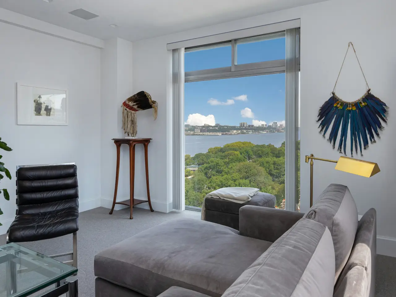 Glorious Light and Views Perfectly positioned on the 12th floor of 37 Riverside Drive at 76th Street-with stunning river and open city views from every window-this newly renovated classic prewar home offers elegant space in pristine condition, in an ideal location. A grand slate-paved gallery welcomes you off the semi-private landing. Directly to the west is the breathtaking corner living room with a nearly floor-to-ceiling window showcasing cinematic views of the splendid Hudson River and a direct sightline to the GW Bridge. To the east is an open city panorama of West Side landmarks, with the entire home filled with natural sunlight all day long. Through antique French oak paneled doors is the formal dining room/library, also with lovely east views. The true gourmand's professional kitchen incorporates the former staff room and bath to create an eat-in sun-filled space with storage for every implement: appliance garage, vented Blue Star stove, Sub-Zero fridge, heated stone floors, water filtration, limitless counter space, and custom white Italian cabinetry. The wet bar serves as a butler's pantry off the dining room and is the ideal setting for entertaining and hosting home-cooked meals. The bedroom wing is comprised of two sizable bedrooms-the primary with a sitting area and private home office, both with glorious river views. Each features a windowed en-suite renovated modern bathroom with heated floors and premier fixtures and materials. A powder room for guests is discreetly located off the gallery, which is lined floor-to-ceiling with paneled storage, cleverly hiding all household items from sight, including the in-unit washer/dryer. Two zones of central AC ensure year-round comfort, and the entire home was rewired for maximum power and AV/Smart Home capabilities. 37 Riverside Drive offers a boutique full-service experience with only 32 units, and provides a full-time doorman, resident building manager, new fitness room, and deeded storage and bike space. An easy stroll to Broadway for delightful shopping, top schools both public and private are moments away, as is express and local train service. 75% financing is permitted, and pets are welcome.