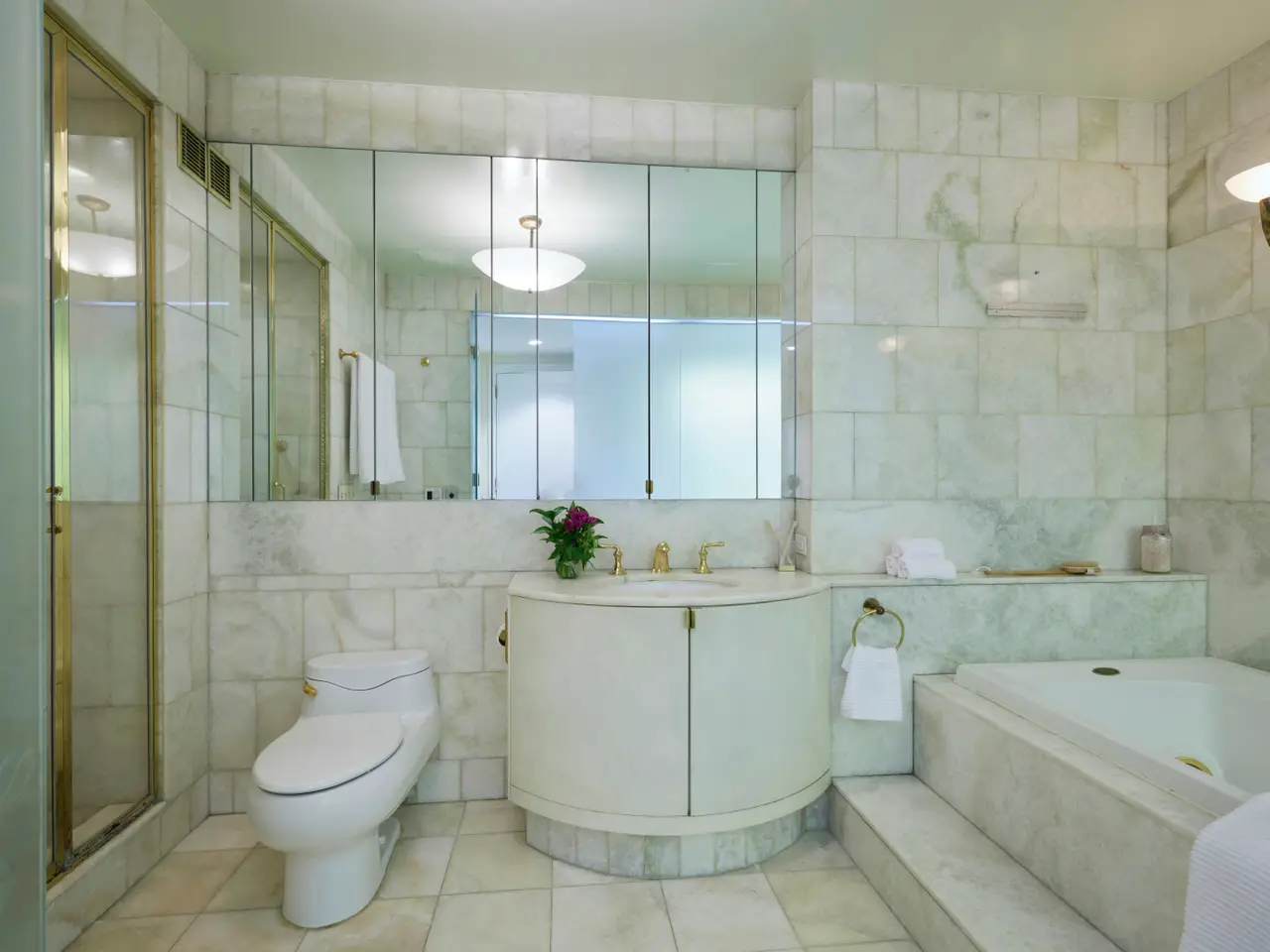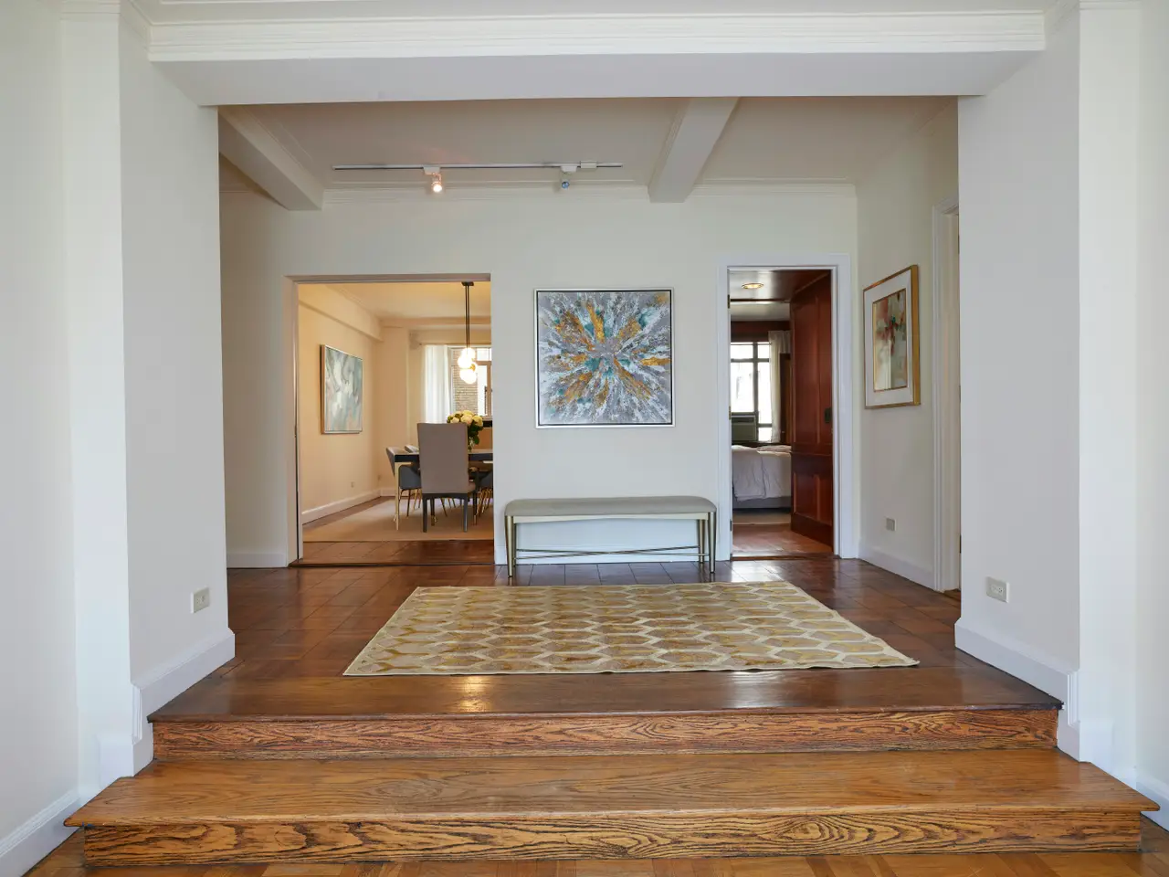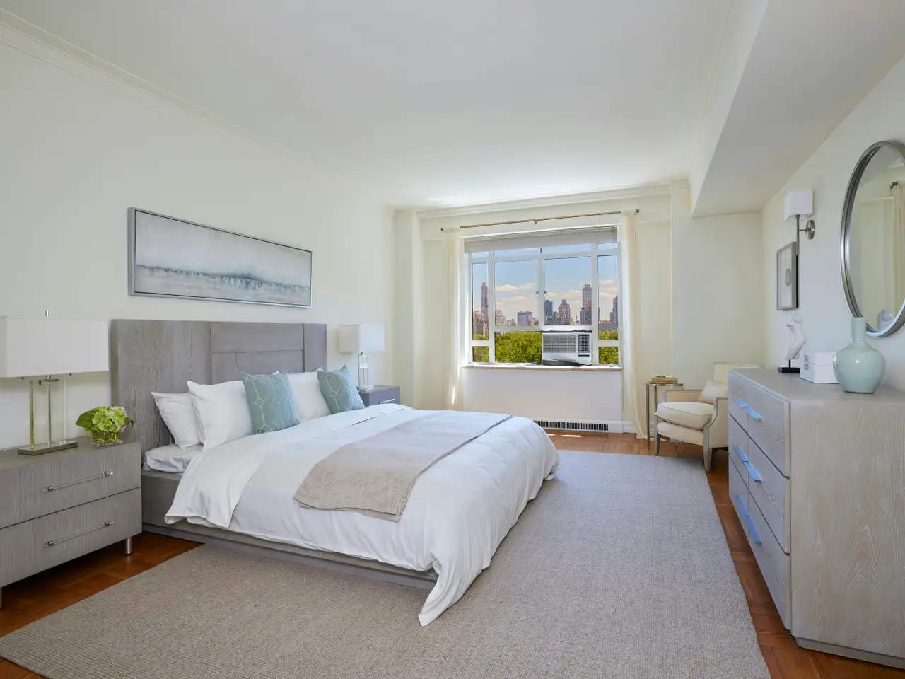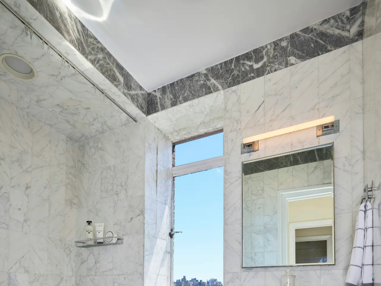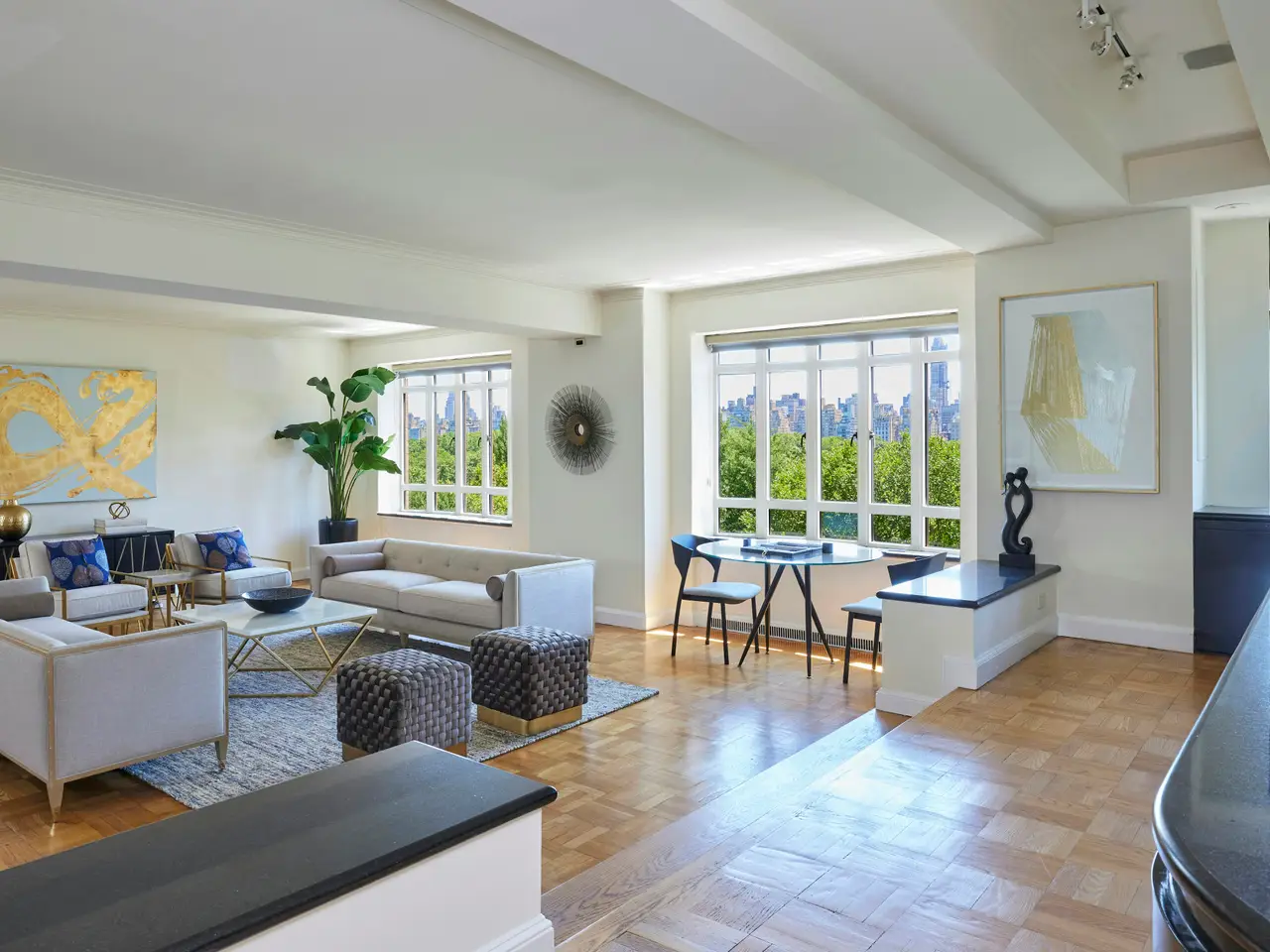 One of the largest layouts at The Century, almost 3,000 square feet with 65 linear feet directly facing the park, it was formerly nine rooms now configured into six. The seamless combination of a classic six and a park view one bedroom duplex provides magnificent space, views and light. From the semi-private hallway on the ninth floor, one enters an impressive double width step-down living room that also encompasses the lower level of the duplex. Two large bay windows deliver outstanding views of the park as well as the 5th Avenue and Central Park South skylines. A third window is directly above the well-concealed wet bar. The spacious, serene primary bedroom suite also overlooks the park. An expanded chef's kitchen with a center island and separate laundry area, a formal dining room, and a wood paneled library or third bedroom suite with marble bath all have western exposures over the century's landscaped courtyard. A powder room and a fully built out cedar storage closet complete the layout on nine. Atop the staircase to the tenth floor one arrives at another marble bathroom before entering the 2nd bedroom where custom bookcases and a built in desk at the window are further complemented by a huge walk in closet. A separate entrance to the apartment on the 10th floor makes this bedroom equally well suited for guests or a live/work lifestyle. Hardwood floors throughout. Most windows were upgraded to thermopane. Gas and electricity are included in common charges. Smoking is not permitted. Pets are welcomed. Work on a new amenity zone with gym, residents lounge and pet spa has commenced and is slated to be completed by year end. Note: Assessment 1 is ongoing for capital improvements - Assessment 2 is for 10 years for new amenity zone. The Century was built in the 1930s and has been designated a NYC art deco landmark. Spanning the entire block from West 62 to West 63rd Streets and equally convenient to Columbus Circle and Lincoln Ctr., it is the city's premier full service prewar condominium. Truly a rare find.