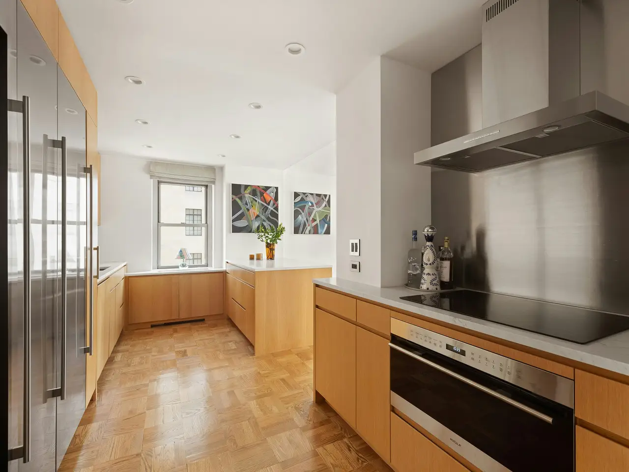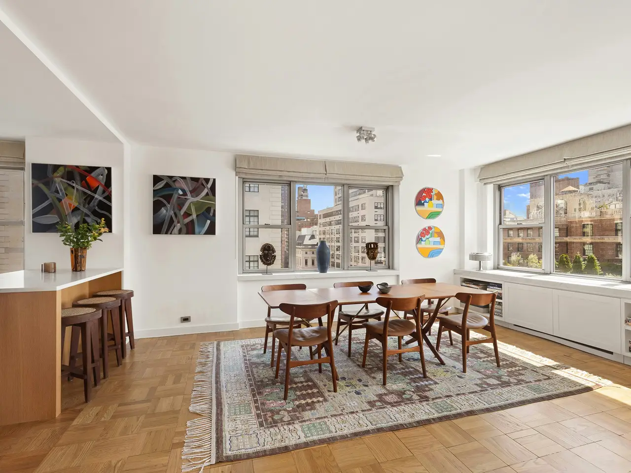 Exquisitely re-imagined with a curators eye for quiet luxury and maximum efficiency. Masterfully reimagined, this expansive 2 bed, 2.5 bath corner apartment beams with natural light, double exposures and beautiful views of the city sky over Park Avenue.  The generous large-scaled entry gallery artfully incorporates an unexpected home-office area and two custom outfitted closets. The gracious living room is flooded with sunlight through both East and North facing windows and flows graciously into the dining room. The sprawling, windowed, kitchen is an absolute highlight and features a Sub-zero refrigerator and dual-temperature wine fridge, Cove dishwasher, Wolf induction stovetop and 30" all-in-one oven plus a Miele range hood. Hidden out of sight is a stacked Miele washer/dryer. Both bedrooms are grand with walk-in-closets that have been custom outfitted as well as en suite bathrooms and open Northern views over landmarked townhouses. Additional features include art specific and recessed lighting operated through a Lutron system, custom blackout roman shades, Ecobee integrated heating/cooling system, pocket doors, custom millwork throughout and Carrara marble windowsills. Ideally located on the Southwest corner of 67th Street and Park Avenue, 650 Park Avenue is within a stones throw from Central Park and the best restaurants, museums and shopping that New York City has to offer. The epitome of a full-service lifestyle building, the best-in-class amenities include a fabulous gardened roof deck with magnificent views, full-time doorman and concierge, live-in resident manager, parking garage (discounted shareholder rates), newly renovated gym, laundry room and the use of a storage bin. Buyer is responsible for the 2% flip tax and the building allows up to 50% financing. Pets and pied-a-terres permitted with board approval. Please note there is an ongoing assessment $716.10 per month