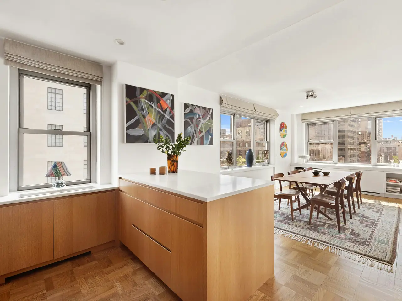 Exquisitely re-imagined with a curators eye for quiet luxury and maximum efficiency. Masterfully reimagined, this expansive 2 bed, 2.5 bath corner apartment beams with natural light, double exposures and beautiful views of the city sky over Park Avenue. The generous large-scaled entry gallery artfully incorporates an unexpected home-office area and two custom outfitted closets. The gracious living room is flooded with sunlight through both East and North facing windows and flows graciously into the dining room. The sprawling, windowed, kitchen is an absolute highlight and features a Sub-zero refrigerator and dual-temperature wine fridge, Cove dishwasher, Wolf induction stovetop and 30" all-in-one oven plus a Miele range hood. Hidden out of sight is a stacked Miele washer/dryer. Both bedrooms are grand with walk-in-closets that have been custom outfitted as well as en suite bathrooms and open Northern views over landmarked townhouses. Additional features include art specific and recessed lighting operated through a Lutron system, custom blackout roman shades, Ecobee integrated heating/cooling system, pocket doors, custom millwork throughout and Carrara marble windowsills. Ideally located on the Southwest corner of 67th Street and Park Avenue, 650 Park Avenue is within a stones throw from Central Park and the best restaurants, museums and shopping that New York City has to offer. The epitome of a full-service lifestyle building, the best-in-class amenities include a fabulous gardened roof deck with magnificent views, full-time doorman and concierge, live-in resident manager, parking garage (discounted shareholder rates), newly renovated gym, laundry room and the use of a storage bin. Buyer is responsible for the 2% flip tax and the building allows up to 50% financing. Pets and pied-a-terres permitted with board approval. Please note there is an ongoing assessment $716.10 per month