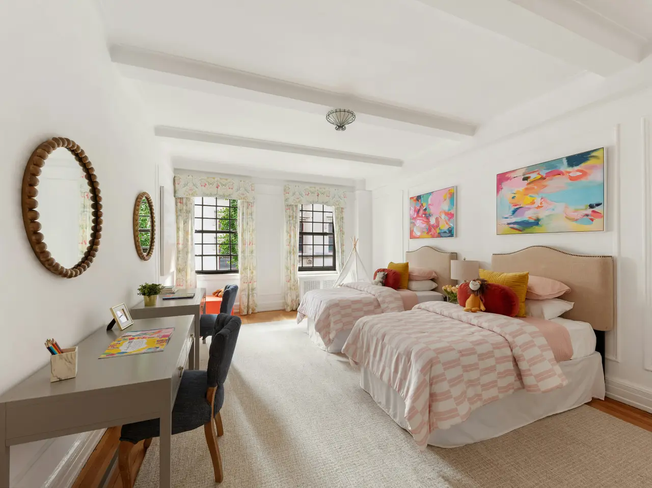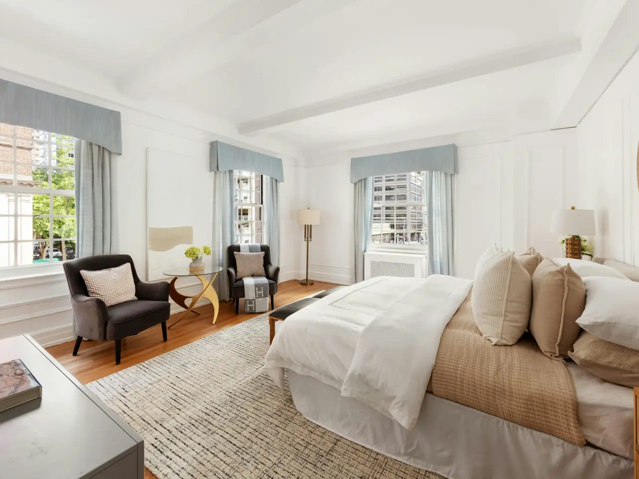Four-Bedroom Pre-War Duplex in Lenox Hill Apartment 2/3A at 129 East 69th Street is one of only three original duplexes in this historic, full-service cooperative. Its scale and layout make it feel more like a house than an apartment. The home begins with a dramatic entry gallery with a sweeping staircase and 15-foot ceiling. Beyond is a spacious living room with a wood-burning fireplace and 12-over-12 sash windows. Oak floors and 9'7" ceilings carry throughout this level. The dining room, with rare cathedral windows and open exposures, connects seamlessly to the living space. Every window offers a view, bringing light into each room. A flexible room off the dining area serves easily as a fourth bedroom, den, or office, with an adjacent powder room that can be expanded to a full bath. The kitchen stretches nearly 18 feet and is complemented by an 11-foot butler's pantry with a second sink and vented washer/dryer. A separate service entrance off a long hall provides options for storage, laundry, or a mudroom. Upstairs, the landing opens to three large bedrooms. The corner primary suite features three oversized windows, an en-suite bath, and generous closets. Two additional bedrooms are located on this level, along with a walk-in closet that provides further flexible use. Residents of 129 East 69th Street enjoy private storage, a gym, central laundry, a live-in resident manager, and attentive staff. Monthly maintenance of $5,408 is notably low for a home of this size. Financing up to 50% is permitted, and pets are welcome. The location, just off Park Avenue, places you near Central Park, The Frick Collection, Asia Society, and the Park Avenue Armory, as well as cafés, restaurants, and top schools. This duplex combines scale, light, and architectural detail in one of Manhattan's most desirable neighborhoods, making this a rare offering in today's market.