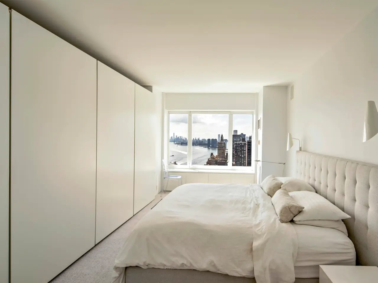 This rarely available high floor south facing one bedroom in The Sovereign has been meticulously renovated.  Entering through a gracious foyer you are drawn to the oversized south and west Tilt and Turn windows framing the magnificent south river views.  The high 9 foot ceilings, wide plank hardwood floors and skim coated walls enhance the welcoming living room and windowed dining area. A beautifully renovated windowed kitchen features a Subzero refrigerator and Bosch dishwasher.  The wine cooler, washer/dryer, custom cabinetry are additional luxury features making this a perfect city home.  There is a marble powder room and exceptional storage in the bedroom. When The Sovereign was built in 1974, Paul Goldberger of The New York Times noted, "The Sovereign is in the super luxury category."  The Emory Roth designed building has a lobby that "extends under the entire building, and there are four semiprivate halls per floor - a welcome (and expensive) alternative to the long, double loaded corridor.  Such an arrangement has probably not been used in any New York building since the nineteen-thirties." Then as now, with only two apartments per floor, the residents are treated to impeccable world class service is provided by the staff that includes sentry, doorman, concierge, on-site management, valet parking, and more. The Sovereign is one of the most renowned post war cooperatives. The elegant and impressive International Style lobby has soaring ceilings accented by the sparkle of hand blown 1950's Venini chandeliers, designed by the Italian Architect Carlo Scarpa. Enhancing the mid-century lobby are its original Rosewood panels, travertine marble floors and collection of curated paintings. Enjoy the lobby level gym, 24 hr. valet garage with Tesla charges and wonderful luxury service including on-site management. There is a bike room and private storage. The Board permits pets (up to two dogs).  Pied-a-terre and purchase in a Trust and LLC's are permitted with Board Approval.