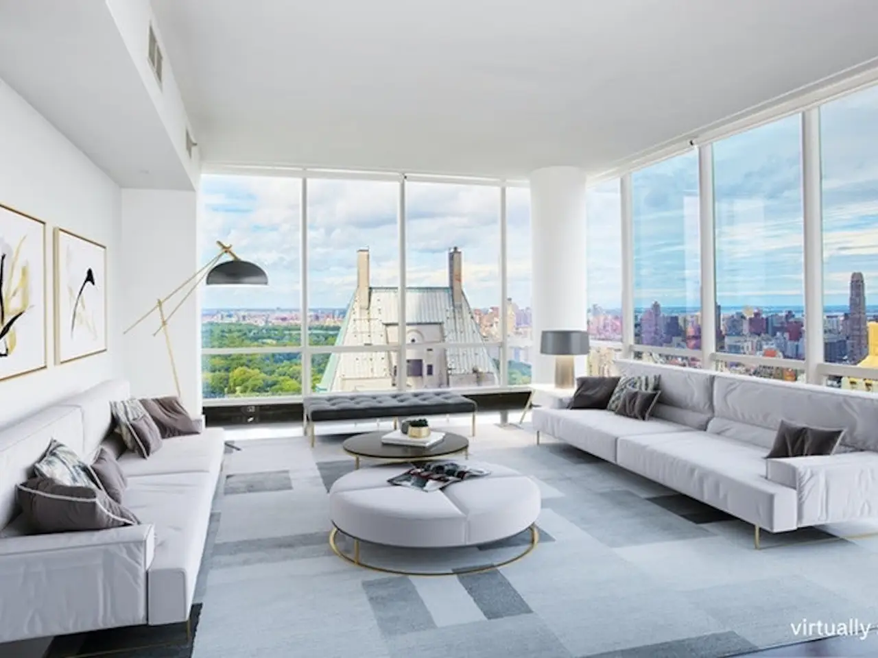 Your magnificent palace in the sky. Situated in the iconic One 57, this stunning home offers 4 bedrooms and 4.5 baths. Designed by Pritzer Prize winning architect Christian de Portzamparc with interiors by Danish designer Thomas Juul-Hansen, this stunning glass tower is the place to live. The apartment has three exposures including unobstructed Northern views of Central Park, Southern sunlight and Eastern views to the River. Enter into the spacious foyer leading into the long gallery and continue on into the dramatic living/ dining great room with floor to ceiling windows boasting unparalleled views of the park and city skyline. It is an ideal space for entertaining. The generously proportioned bedrooms, each with stunning views, have luxurious marble en-suite baths. The large eat-in kitchen has been custom designed by Smallbone and is equipped with top of the line appliances by Sub Zero and Miele, and the apartment also has a washer and dryer. Amenities include: 24 hour doorman and concierge, indoor pool, fitness center, screening room, library with billiards table, catered kitchen, private dining, on- site parking and hotel amenities and services from the Park Hyatt hotel. Electronic shades included.