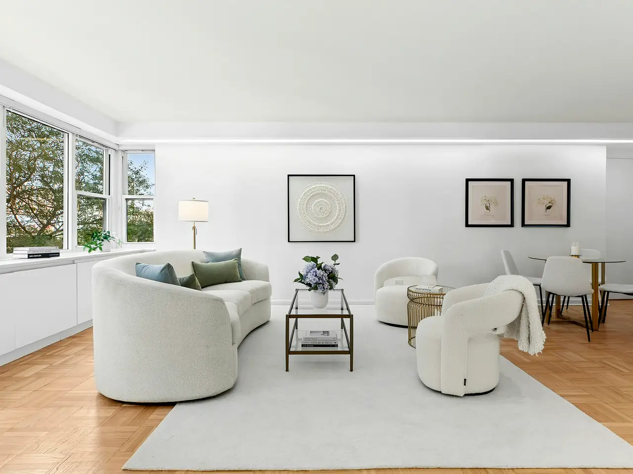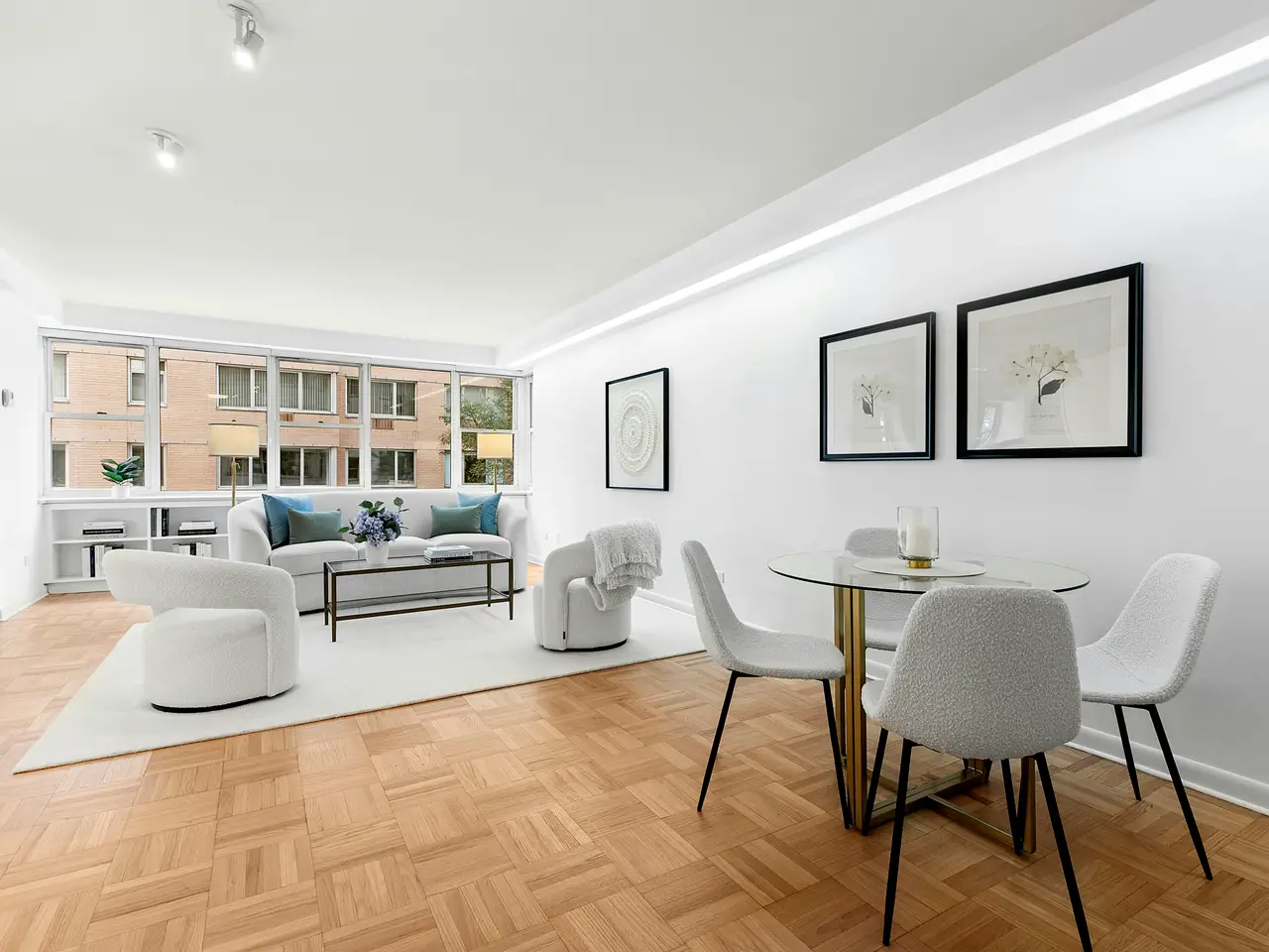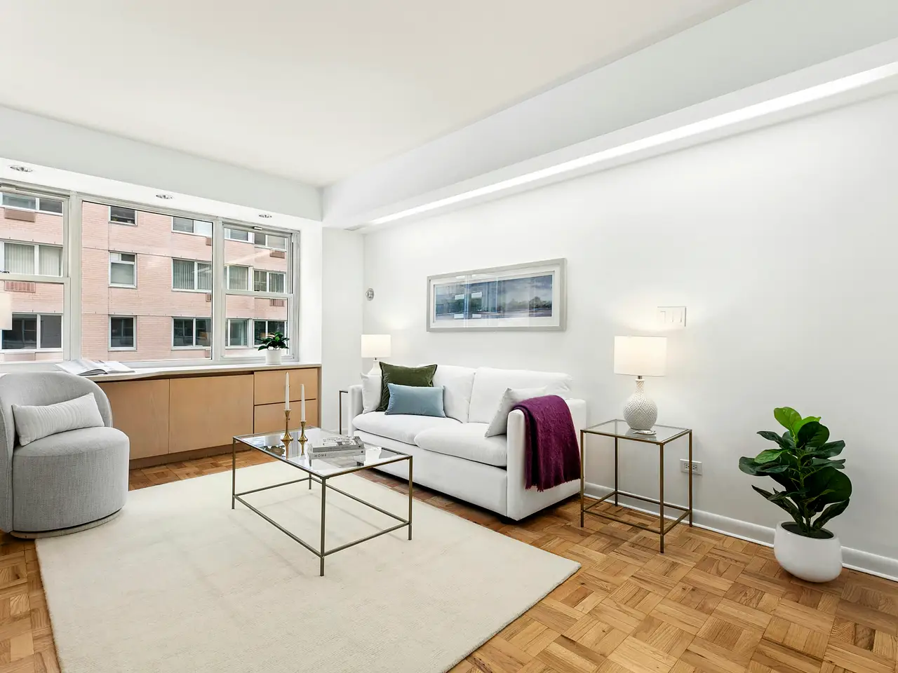 Peaceful Living in the Heart of NYC This perfectly designed two-bedroom, two-bathroom cooperative offers exceptional value in Sutton Place, with a low monthly maintenance which includes gas and electric. Enjoy partial river, treetop, and Sutton Place Park views from home, relax along the East River Greenway, and take advantage of Midtown's dining, shopping, and energy just moments away. Upon entering, you are greeted by a nearly 28 foot living room with an expanse of windows offering triple exposures. The windowed eat-in kitchen has been thoughtfully expanded and provides abundant stone countertop workspace, extensive cabinetry, and a comfortable dining area. The split two-bedroom layout ensures the utmost in privacy. An oversized primary suite features a large walk-in closet, a separate vanity area, and an en-suite bath. The second bedroom offers equally generous closet space and can easily accommodate a king-size bed. A second full bathroom has been recently renovated with marble floors, a walk-in shower, and a marble bench. Modern comforts include new remote-controlled PTAC air conditioning units, and with board approval, a washer and dryer may also be installed. Sutton Place is a serene enclave along the East River offering a sense of retreat while remaining in close proximity to Midtown's shopping, Whole Foods, Trader Joe's, and an array of excellent dining options. Just outside the building, the newly completed East Side Greenway entrance leads directly to the East River Esplanade, with landscaped and scenic river paths. 45 Sutton Place South, also known as Cannon Point South, is a premier full-service cooperative featuring a newly renovated lobby, rooftop pergola garden with iconic river and city vistas, fitness center, package room, laundry facilities, and an attached garage (waitlist). The building is staffed with a 24-hour doorman, concierge, and a full-time resident manager, ensuring both comfort and convenience. This cooperative permits up to 50% financing. There is a 2% flip tax payable by the buyer. Pied-à-terre are subject to board approval. Please note that dogs are not permitted. This building maintains a non-smoking policy.