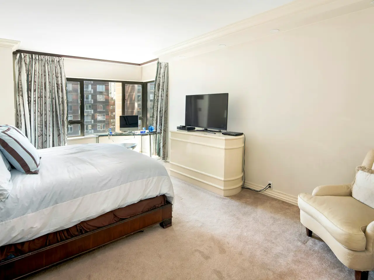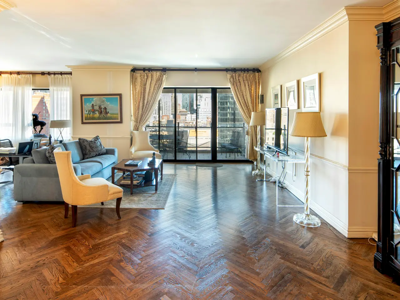 Entering this elegant Classic 6 home from the semi private landing, you arrive at an impressive inlaid marble gallery. The gorgeous mahogany pocket doors lead to a double size north facing living room with herringbone floors and a large balcony. The south pocket doors open to the dining room - also with herringbone floors. Beyond is a large windowed kitchen with a washer/dryer and pantry. This home currently configured with one primary bedroom containing two marble baths and two walk in closets, can easily be restored to the original floorplan with two primary bedrooms each with ensuite marble baths and two walk in closets. There is an additional bedroom/staff room plus a full bath and beautiful "jewel box" powder room. This is a great opportunity to purchase a spacious, sunny home in a luxury cooperative at an attractive price. When The Sovereign was built in 1974, Paul Goldberger of The New York Times noted, "The Sovereign is in the super luxury category." The Emory Roth designed building has a lobby that "extends under the entire building, and there are four semiprivate halls per floor - a welcome (and expensive) alternative to the long, double loaded corridor. Such an arrangement has probably not been used in any New York building since the nineteen-thirties." Then as now, with only two apartments per floor, the residents are treated to impeccable world class service is provided by the staff that includes sentry, doorman, concierge, on-site management, valet parking, and more. The Sovereign is one of the most renowned post war cooperatives. The elegant and impressive International Style lobby has soaring ceilings accented by the sparkle of hand blown 1950's Venini chandeliers, designed by the Italian Architect Carlo Scarpa. Enhancing the mid-century lobby are its original Rosewood panels, travertine marble floors and collection of curated paintings. Enjoy the lobby level gym, 24 hr. valet garage with Tesla charges and wonderful luxury service including on-site management. There is a bike room and private storage. The Board permits pets (up to two dogs). Pied-a-terre and purchase in a Trust and LLC's are permitted with Board Approval.