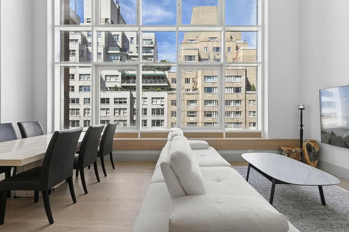 Welcome to an incredibly rare offering at The Leyton. This one-bedroom duplex residence is defined by soaring 19'6" ceilings, dramatic scale, and luminous floor-to-ceiling windows. This architecturally striking home combines loft-like proportions with sophisticated design details by renowned interior designer Elena Frampton. The open-concept layout features a custom Poggenpohl kitchen outfitted with polished marble countertops and a full suite of integrated Gaggenau appliances, ideal for both everyday living and elevated entertaining. The lofted primary bedroom offers space for a king-sized bed and includes a spacious walk-in closet and a 5-piece ensuite bathroom finished with radiant heated floors and refined fixtures. A secondary full bathroom on the first floor is clad in Aged Dark Nature stone, accented by Fantini hardware. Framed by panoramic exposures, this one-of-a-kind residence captures beautiful city views. The light moves effortlessly through the home from sunrise to sunset. Every detail has been considered for modern comfort, with high-performance windows, bespoke air systems, and hydronic radiant floor heating throughout. Residents of The Leyton enjoy access to a suite of refined amenities curated by Alexandra Champalimaud, whose work draws inspiration from the grand boutique hotels of the Upper East Side. On the 24th floor, the Brandy Room offers a series of indoor and outdoor spaces for entertaining, including a cocktail terrace, a private dining room with a fully equipped butler's pantry, a solarium, views of Central Park and an expansive Sun Terrace amp; Grille overlooking the East River. The building also features a private fitness studio with top-tier equipment, a 24-hour attended lobby, concierge services provided by BHB, and conveniences such as private storage, bicycle storage, mail/package rooms, and a dedicated Paw Spa for four-legged residents. Positioned just off East 63rd Street, The Leyton stands as a distinctive new landmark on the Upper East Side. Designed by architect Manuel Glas, the building evokes a timeless elegance with Art Deco influences, offering just 38 finely crafted residences in one of Manhattan's most exclusive enclaves.