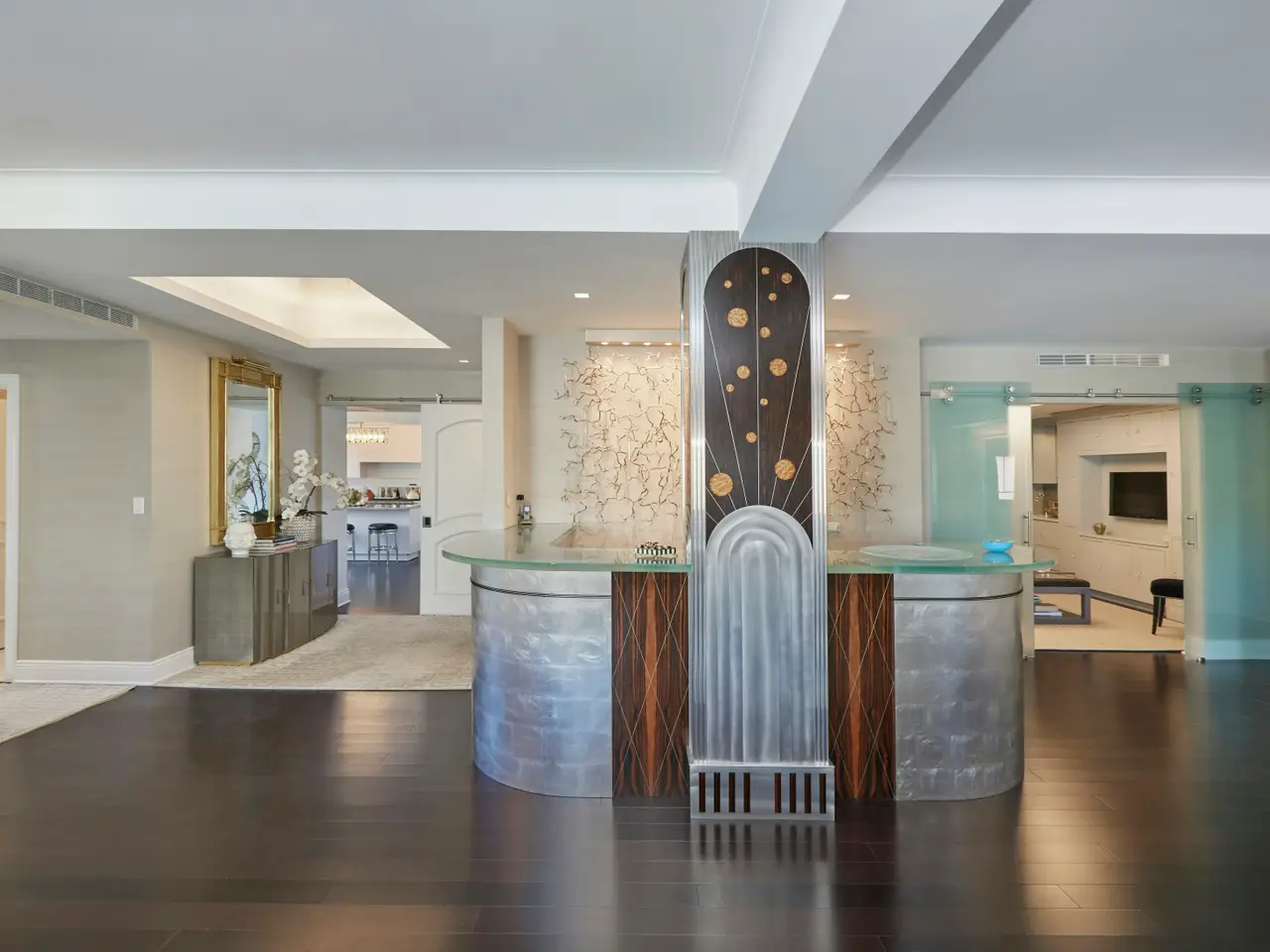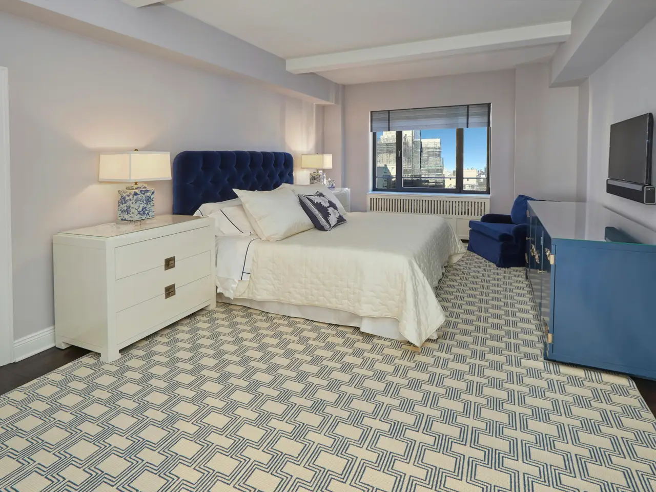 Spectacular High-Floor Fifth Avenue Home This spectacular high-floor residence on Fifth Avenue has been reimagined through the most thoughtful and extensive renovation imaginable. Every inch of this home has been meticulously designed to create a magnificent living space that balances modern comfort with timeless elegance. The expansive double living room, combined with the formal dining room, enjoys three exposures including a view of Central Park and is filled with natural light throughout the day.  A  custom built-in bar, as beautiful as it is functional, adds the perfect touch for entertaining. The huge eat-in kitchen is truly extraordinary - the kind you might expect to find in a grand private home. It's simply magnificent, serving as a natural gathering place for casual meals or more elaborate entertaining. Renovated with top of the line appliances and finishes.  Two separate bedroom wings offer exceptional privacy and space, each with fully renovated bathrooms and custom built-out closets. In addition, a den/TV room just off the living room provides a comfortable and inviting space that makes you want to stay home. The home features central air conditioning, a private in-unit laundry room, and impeccable finishes throughout. No detail was overlooked in this renovation - from the custom millwork and top-of-the-line appliances to the beautifully designed baths and thoughtfully conceived layout that maximizes both functionality and flow.  875 Fifth Avenue is a white-glove cooperative known for its outstanding service, full-time doormen, resident manager, and exceptional staff. The building offers numerous amenities, including a bicycle room, storage,  garden, fitness room, and wine cellar. Residents enjoy the convenience of Fifth Avenue living with Central Park, world-class museums, fine dining, and premier shopping just moments away. Pied a terre purchases are allowed. 4% flip tax  This is truly a turnkey home of exceptional quality in one of Fifth Avenue's most distinguished addresses