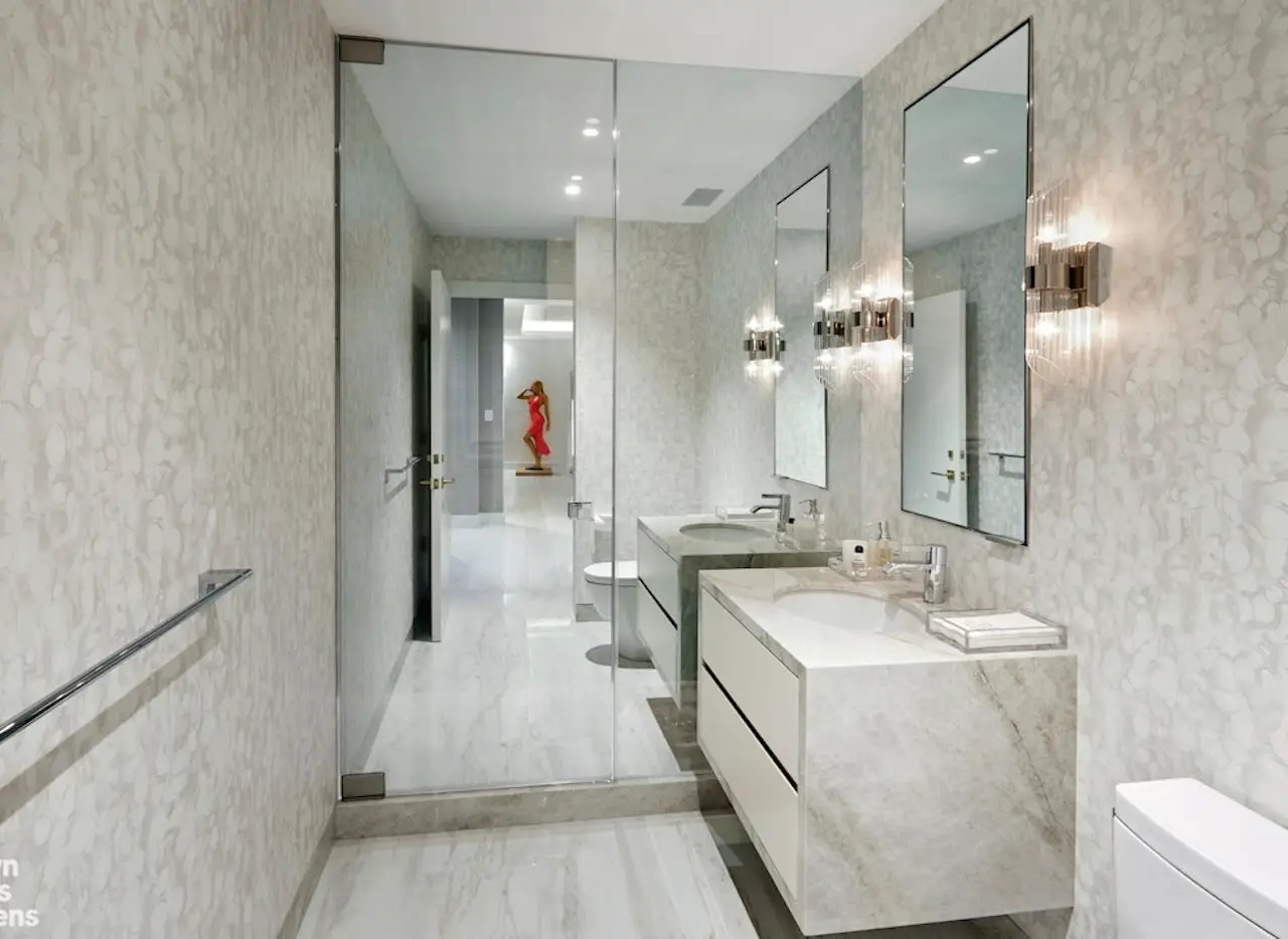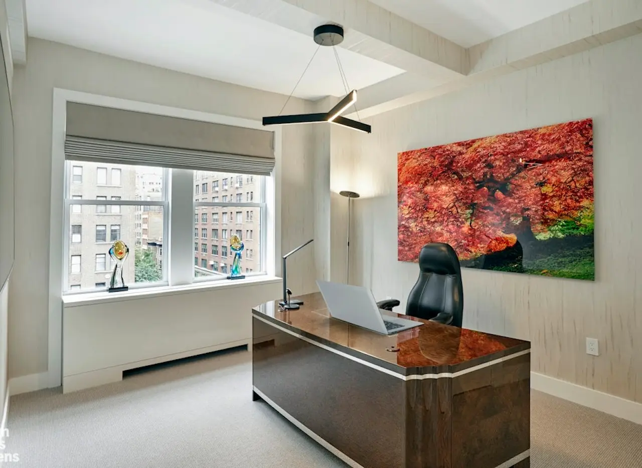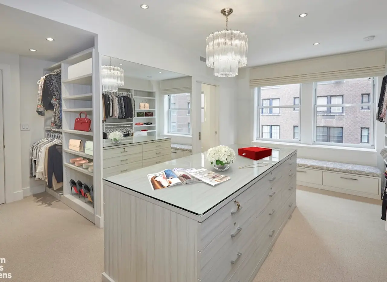 3/4BR Mint Prewar on Park This spectacular Park Avenue triple mint four-bedroom residence was reimagined in 2022 by AD100 design team Drake-Anderson. From the seventh floor, this Carnegie Hill Coop offers exquisite prewar details, meticulous new luxury finishes and an abundance of light. Three major rooms face Park Avenue and there are ten foot ceilings throughout. A semi-private elevator landing leads to a glamorous square "museum-like" entrance gallery, with two large closets, that are wrapped in custom finished plaster by famed craftsman Atelier Premier. The gallery opens to the entertaining spaces in one wing and four bedrooms in the other. The twenty six foot living and dining room is highlighted by a custom Calcutta Gold honed marble wood burning fireplace with floor to ceiling hearth and faces North onto treetops. A generously sized Den/Media Room has a state of the art home theater system framed by custom cabinetry. The chefs eat-in kitchen has two large windows and showcases a center island with white glass countertops and floor to ceiling white lacquered custom cabinetry. The floors are off-white porcelain tile, which complement the cabinetry. Top of the line appliances include a Sub-Zero refrigerator/freezer and a wine refrigerator, a Wolf six burner cooktop with oven and a vented hood with lighting, two Wolf microwaves and a Miele dishwasher. There is a large walk-in pantry with pullout drawers, as well as an outfitted laundry room with a sink, a drip-dry hanging area and a full-size vented LG washer/dryer. The two bedroom/two bath corner primary suite faces West over Park Avenue and is flooded with sunlight and wonderful open city Northern views. It is currently configured as the Primary Bedroom with a sensational dressing room. The two windowed baths have heated marble mosaic floors by Artistic Tile, Kalista fixtures and custom lighted medicine cabinets. The dressing room (originally 4th bedroom) is outfitted to perfection with beautiful custom cabinetry as well as a large island with ample storage and well-appointed display space. Additionally, there is a large shelved shoe closet in the Primary Suite just outside the dressing room. There are two additional sun-filled bedrooms facing West onto Park Avenue with impeccably outfitted closets, plus a private home office as well as a windowed powder room with custom mirrored doors which open to reveal a full shower, making this a complete bath. This impressive home is wrapped throughout - in luxury custom lighting and exclusive wallcoverings. The apartment features wide plank white ash Carlisle hardwood Oak floors, four zone central air conditioning, original stripped zinc metal doors, plentiful closets and storage, electric shades and CAT-6 wiring throughout. A large storage bin transfers with the sale of this apartment. 1111 Park Avenue, built in 1925, is a white glove full service cooperative located in the heart of Carnegie Hill and has a doorman, concierge, fitness center and private storage. This quiet and beautiful Upper East Side neighborhood is marked by an abundance of trees, the Central Park reservoir, charming shops and restaurants including Eli Zabars, and the Corner Bookstore and cultural icons including the Guggenheim Museum, The Cooper Hewitt- Smithsonian Design Museum and the 92nd Street Y.