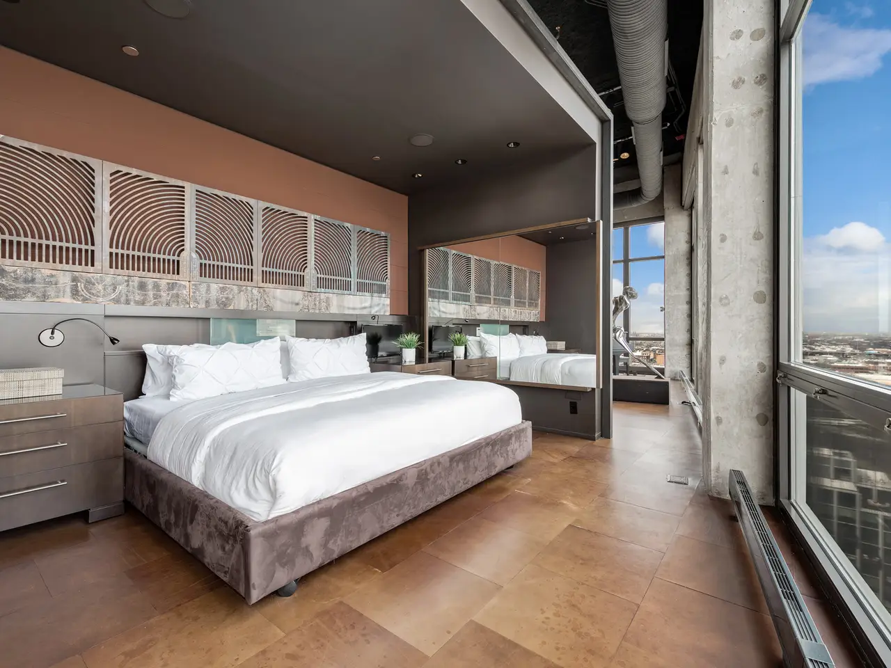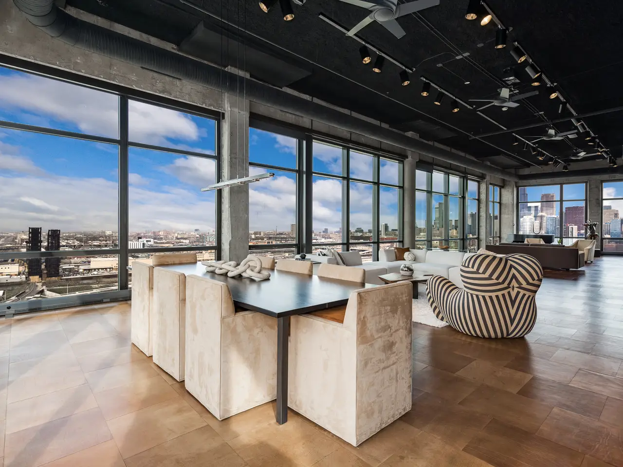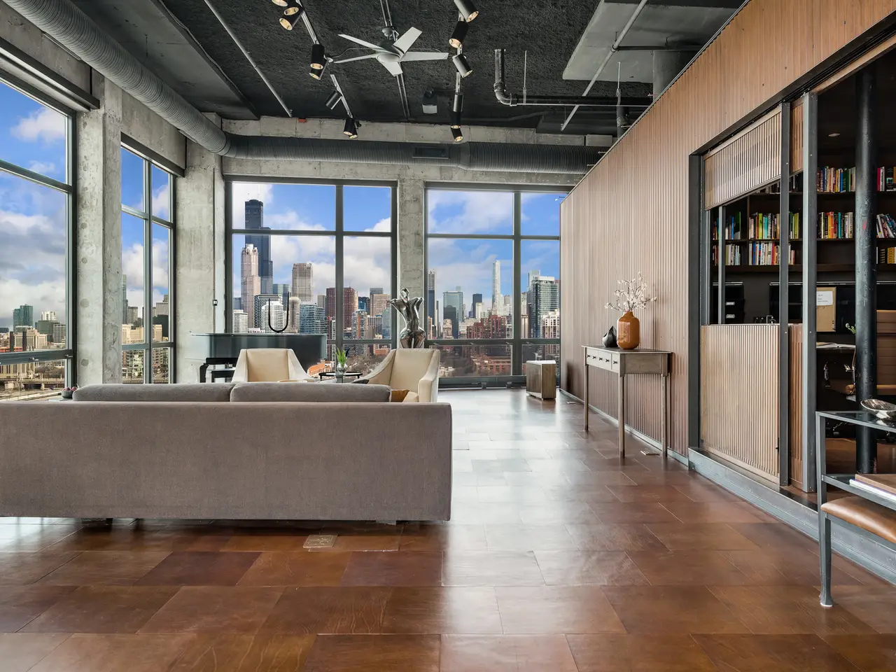 Step into a realm of unparalleled sophistication with this 6,000+ square foot penthouse at 1530 S State Street, where grandeur meets contemporary design. This unique duplex penthouse, designed by STL Architects, boasts 15-foot ceilings and expansive floor-to-ceiling windows that frame the awe-inspiring Chicago skyline. With three different exposures, each view is more breathtaking than the last, offering an unrivaled panorama that changes with the seasons and never gets old. The extraordinary residence is a testament to luxury and attention to detail, featuring one-of-a-kind architectural elements and the highest quality finishes. Custom-cut leather floors in the great room with COR-TEN steel walls running the entire length of the eighty foot long room (spelled that out to make sure don't think it's a typo) create a tactile experience unlike any other, while radiant heating along the windows ensures comfort and clear windows no matter the weather outside. The home includes four generously-sized bedrooms and five exquisite full bathrooms, each crafted with precision and richness. The property has two outdoor spaces; a sizable balcony in the primary suite and an oversized private roof deck (the only one in the building!) It offers a secluded escape with stunning views. Privately positioned at the end of the top floor, this home guarantees ultimate privacy and exclusivity. Two heated garage spots are included in the price. three more heated parking spots are available. Located in the vibrant South Loop, the building offers full-service amenities including 24/7 door staff, on-site management, a top-tier fitness center, on-site dry cleaning services and more. This penthouse is not just a residence, but a piece of art waiting to be cherished! Discover luxury living redefined in this South Loop masterpiece- a true must-see for discerning buyers seeking a home that stands a cut above the rest!