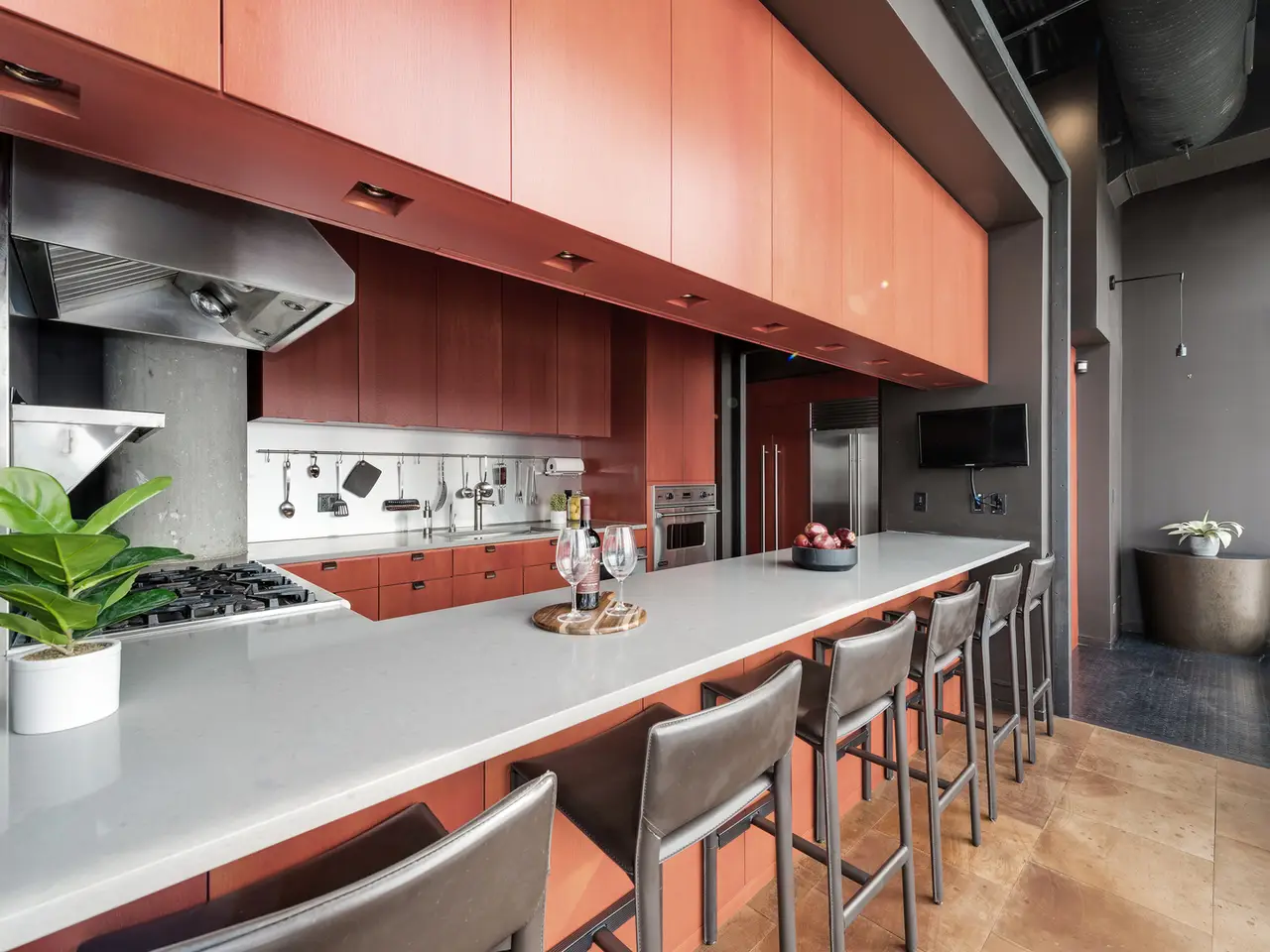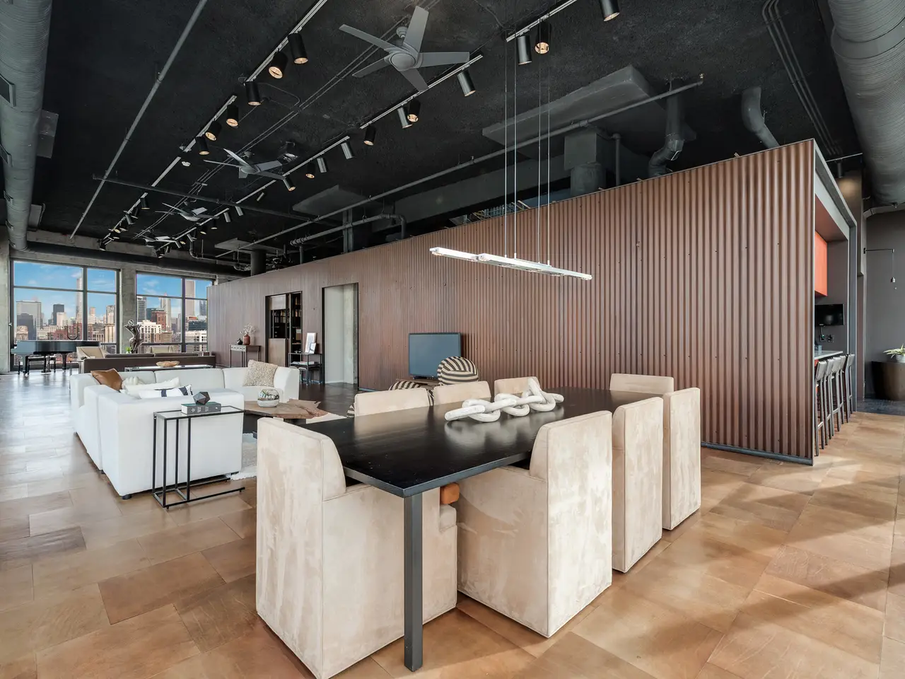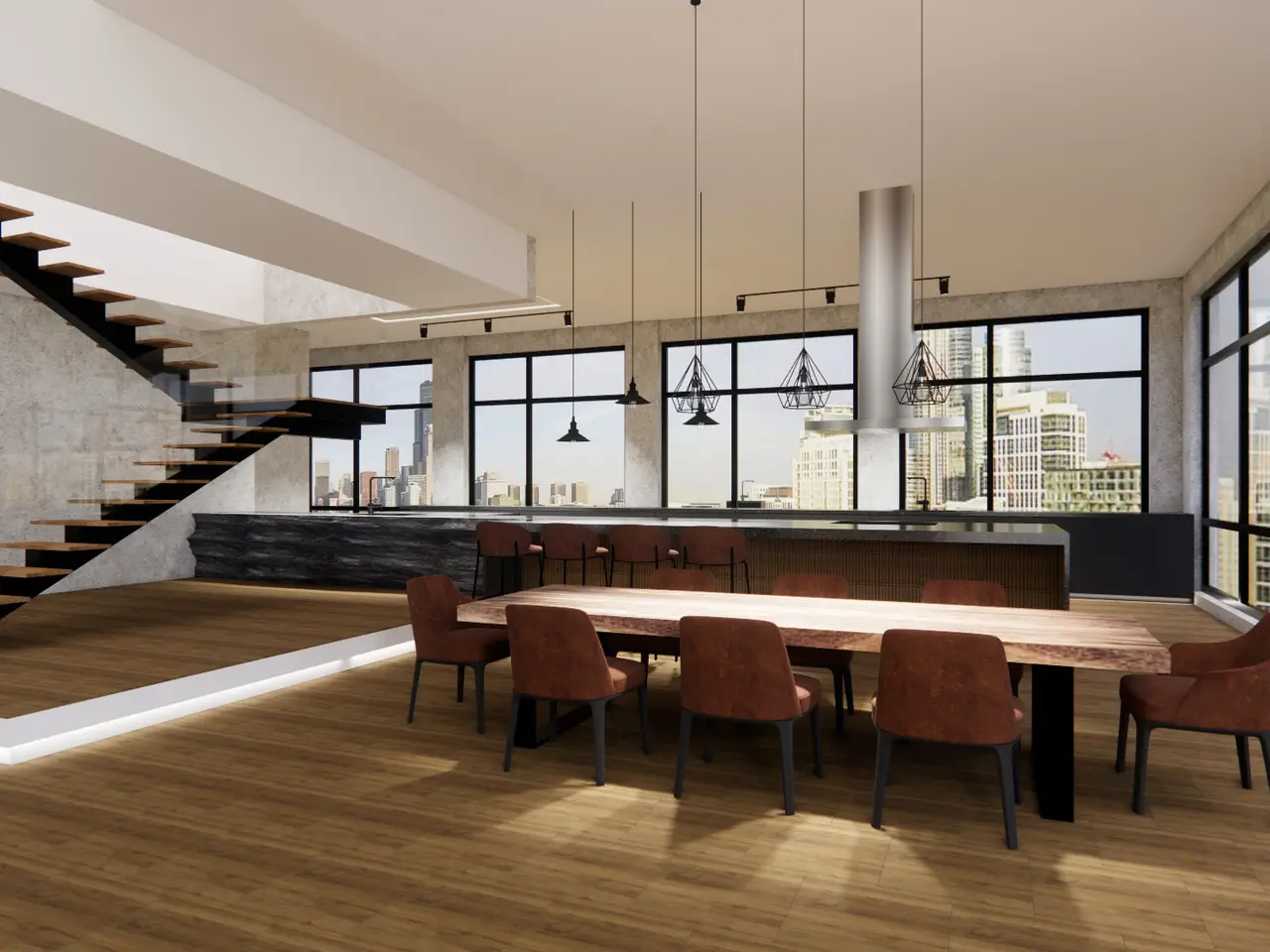 Step into a realm of unparalleled sophistication with this 6,000+ square foot penthouse at 1530 S State Street, where grandeur meets contemporary design. This unique duplex penthouse, designed by STL Architects, boasts 15-foot ceilings and expansive floor-to-ceiling windows that frame the awe-inspiring Chicago skyline. With three different exposures, each view is more breathtaking than the last, offering an unrivaled panorama that changes with the seasons and never gets old. The extraordinary residence is a testament to luxury and attention to detail, featuring one-of-a-kind architectural elements and the highest quality finishes. Custom-cut leather floors in the great room with COR-TEN steel walls running the entire length of the eighty foot long room (spelled that out to make sure don't think it's a typo) create a tactile experience unlike any other, while radiant heating along the windows ensures comfort and clear windows no matter the weather outside. The home includes four generously-sized bedrooms and five exquisite full bathrooms, each crafted with precision and richness. The property has two outdoor spaces; a sizable balcony in the primary suite and an oversized private roof deck (the only one in the building!) It offers a secluded escape with stunning views. Privately positioned at the end of the top floor, this home guarantees ultimate privacy and exclusivity. Two heated garage spots are included in the price. three more heated parking spots are available. Located in the vibrant South Loop, the building offers full-service amenities including 24/7 door staff, on-site management, a top-tier fitness center, on-site dry cleaning services and more. This penthouse is not just a residence, but a piece of art waiting to be cherished! Discover luxury living redefined in this South Loop masterpiece- a true must-see for discerning buyers seeking a home that stands a cut above the rest!