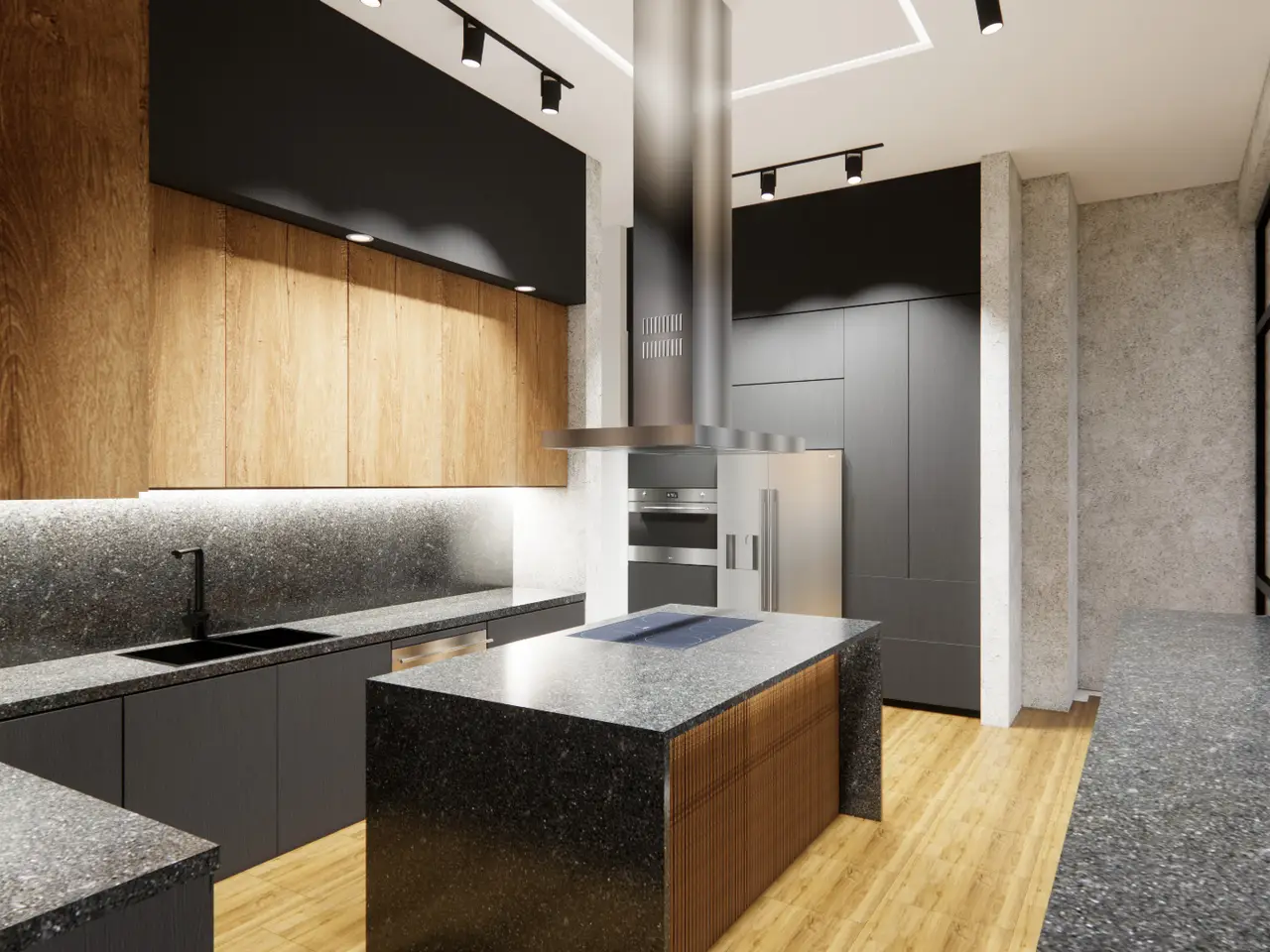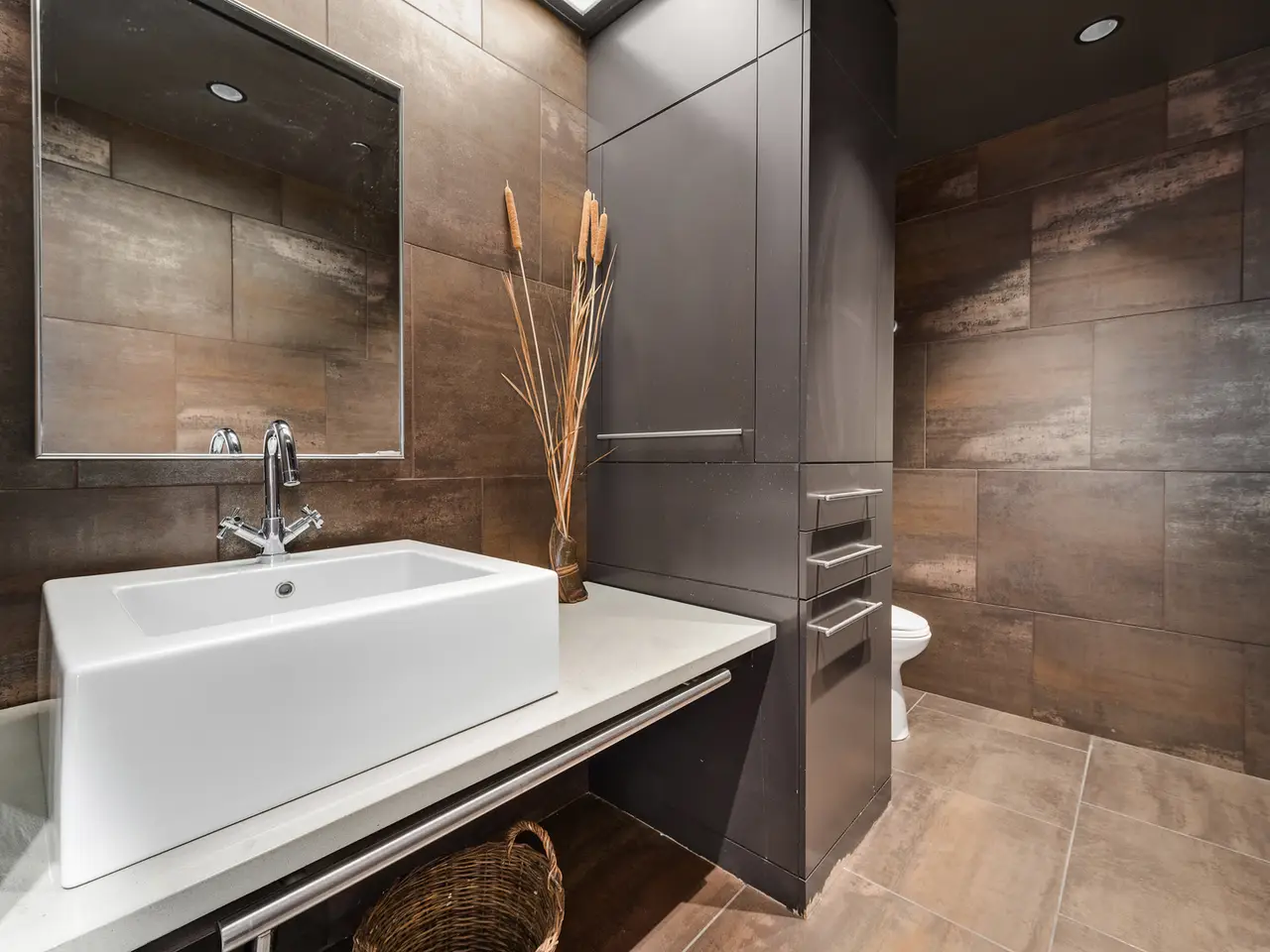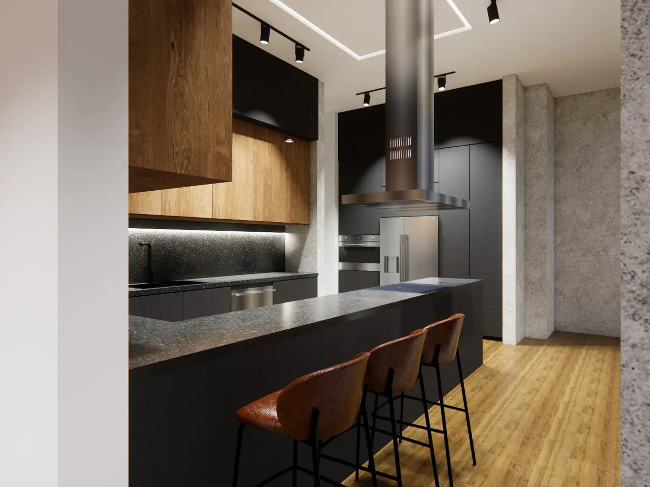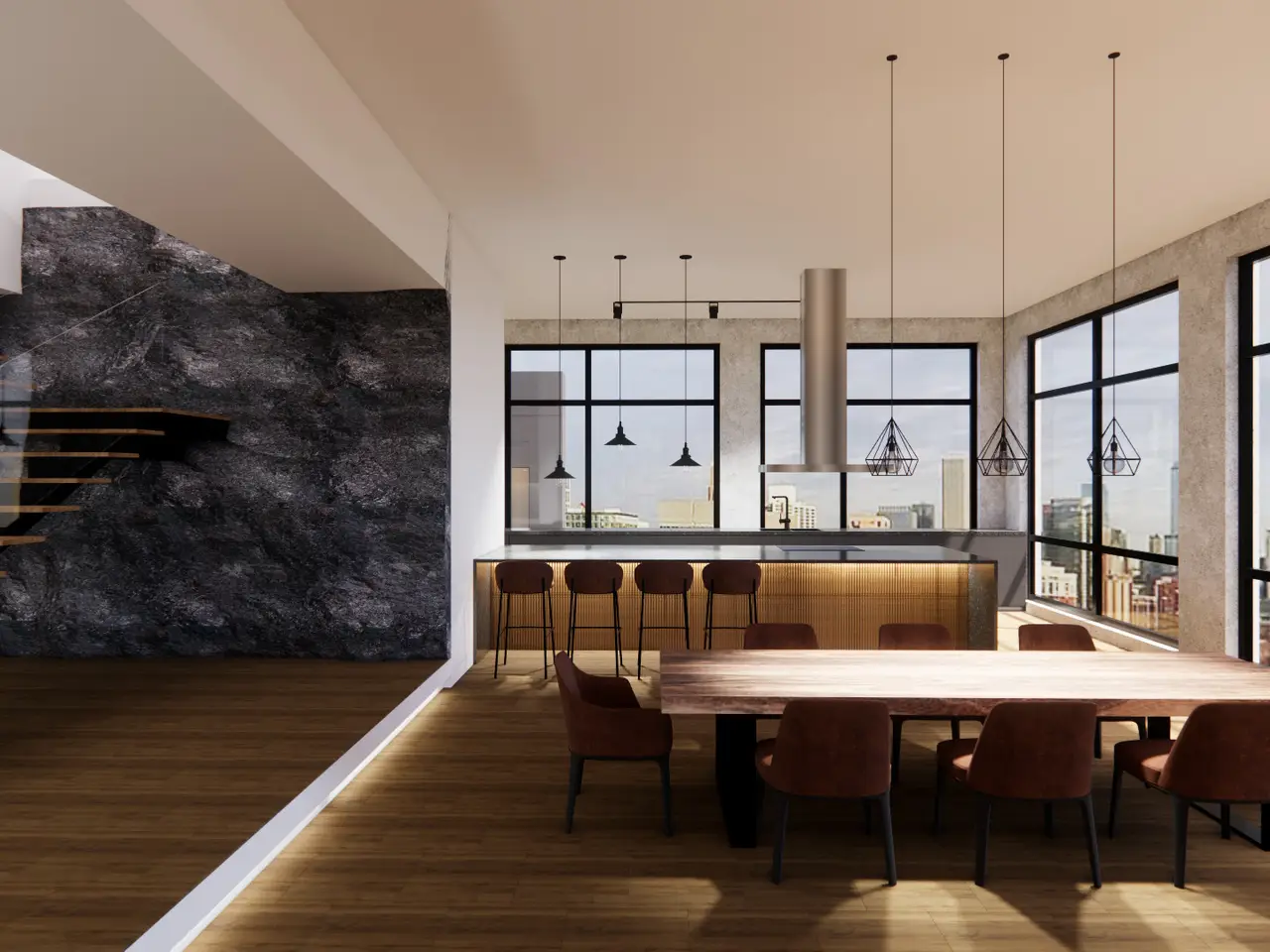 Custom-cut leather floors with COR-TEN steel walls
